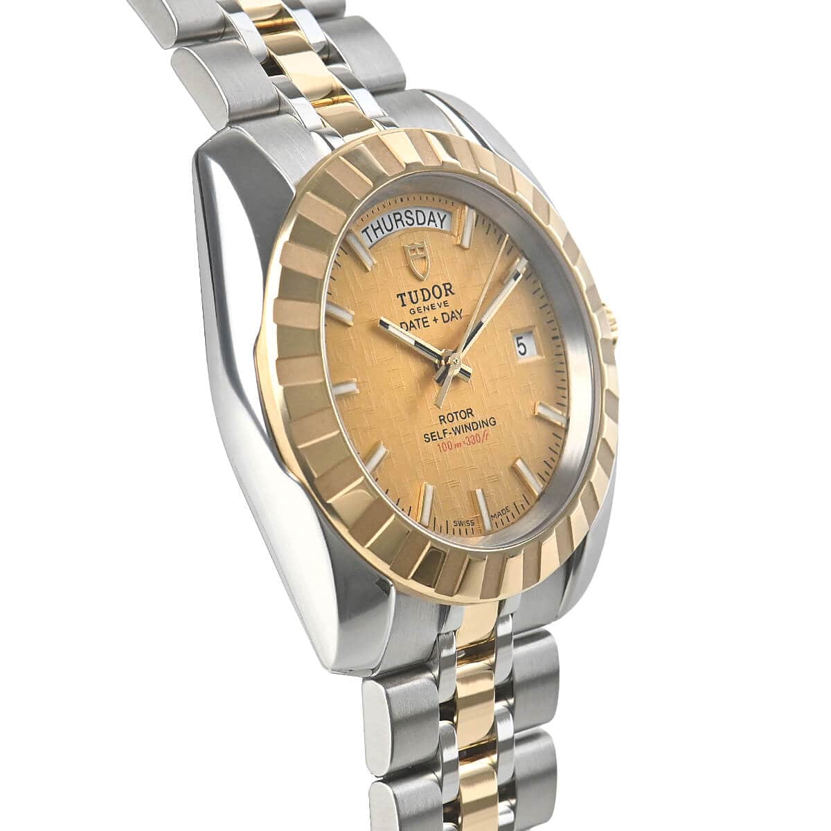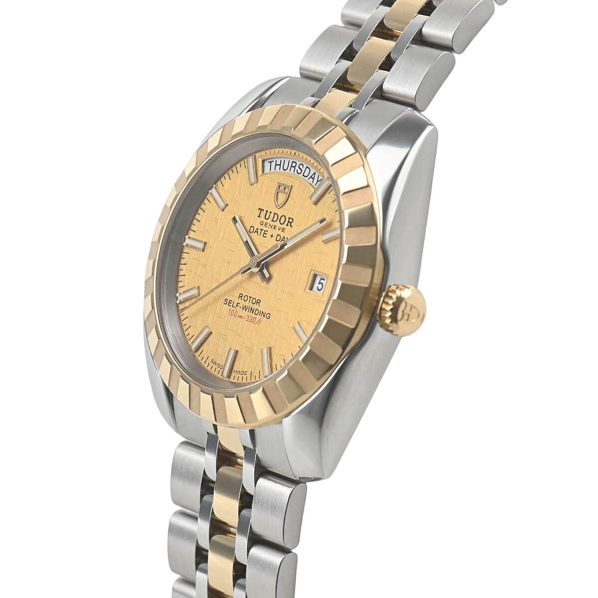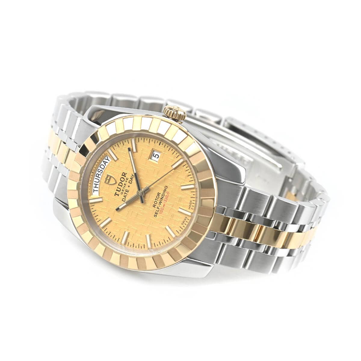 【23013】クラシックデイトデイが入荷しました。兄貴分のデイデイトと同様に文字盤の12時位置に曜日表示があります。幅が少し大きいエンジンターンドベゼルが、モデル名の通りクラシックな雰囲気を醸し出しています。
