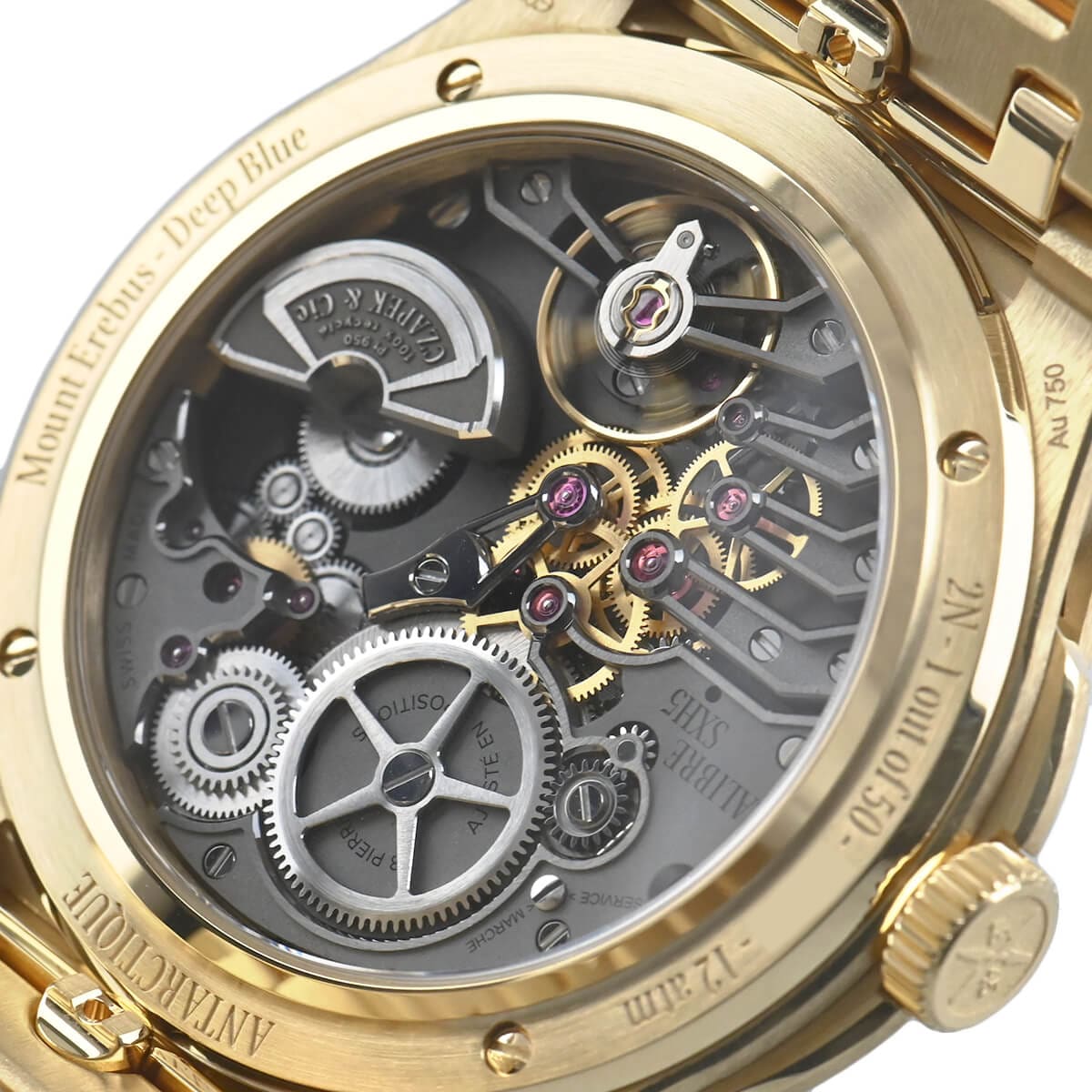 ディープブルーダイヤルは、南極の深淵なる世界を表現しています。