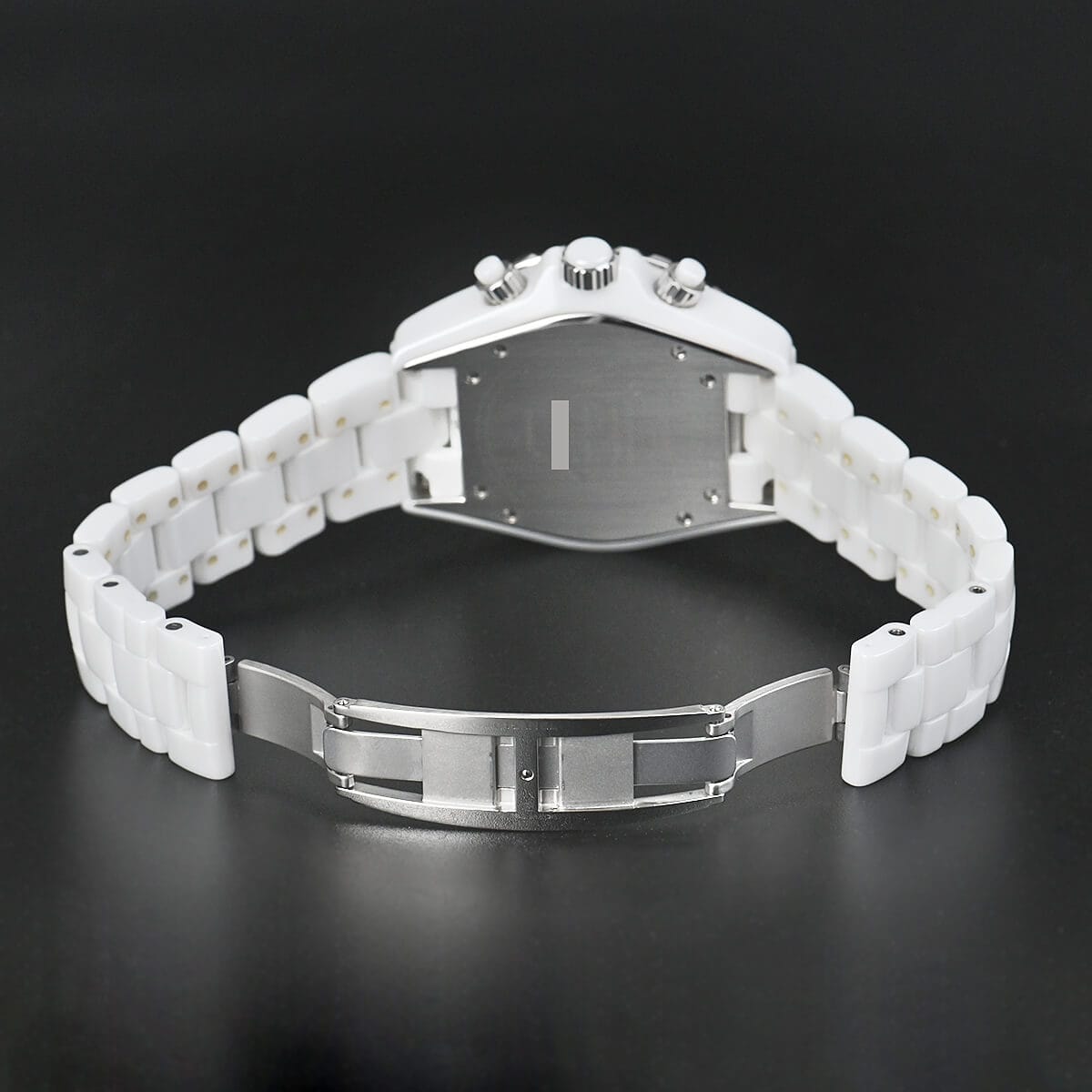 今回はホワイトセラミックの豪華なクロノグラフモデルが入荷しました。