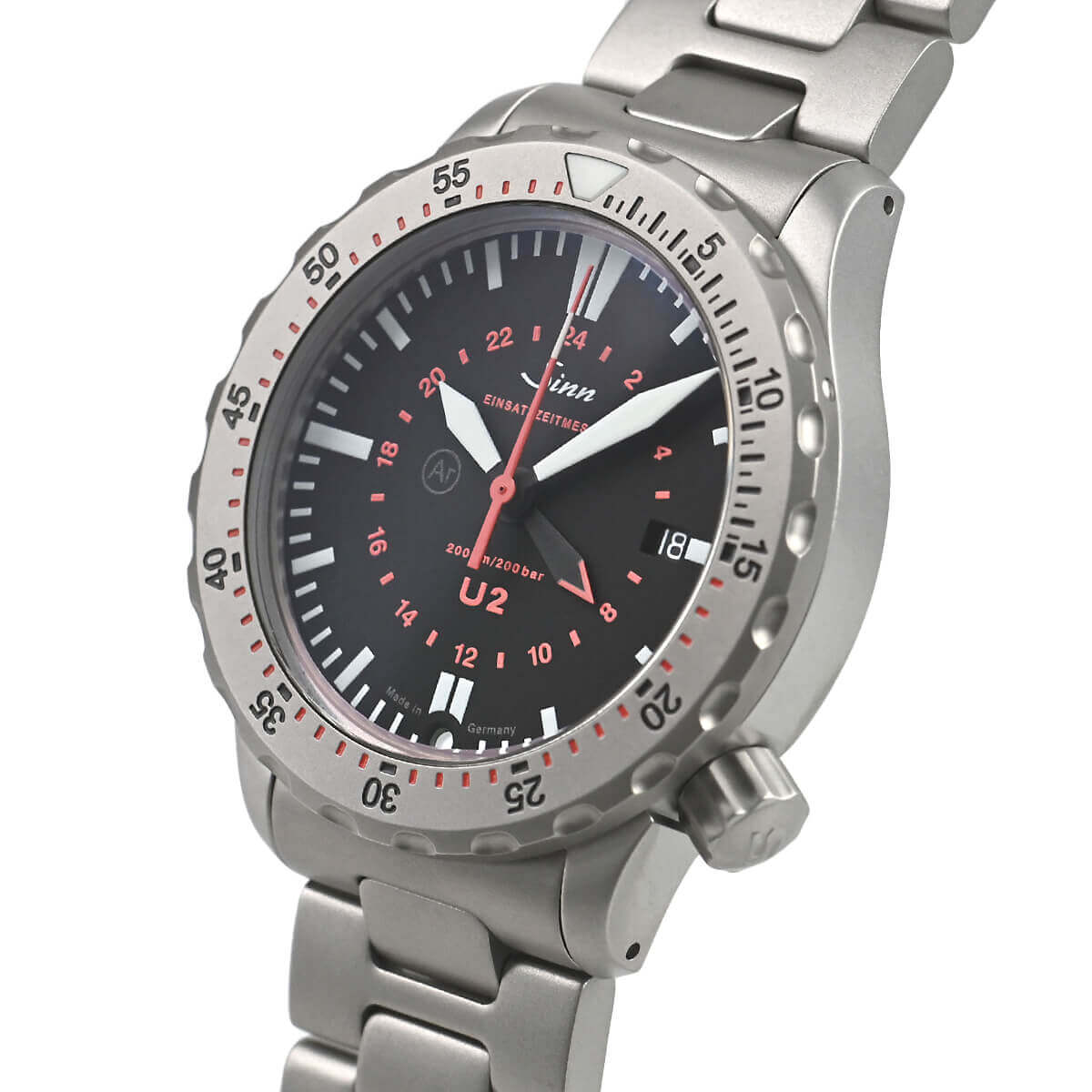 Uボートメタル(潜水艦素材)使用のプロ用潜水時計「U2」が入荷しました。200バール(2000m)もの耐圧性を実現しているのは、この素材がテギメント加工しやすい利点を持っていて、1500ヴィッカースまで硬度をあげることが可能なためです。この硬度は通常の時計に使われるステンレスの7倍の硬さにあたります。