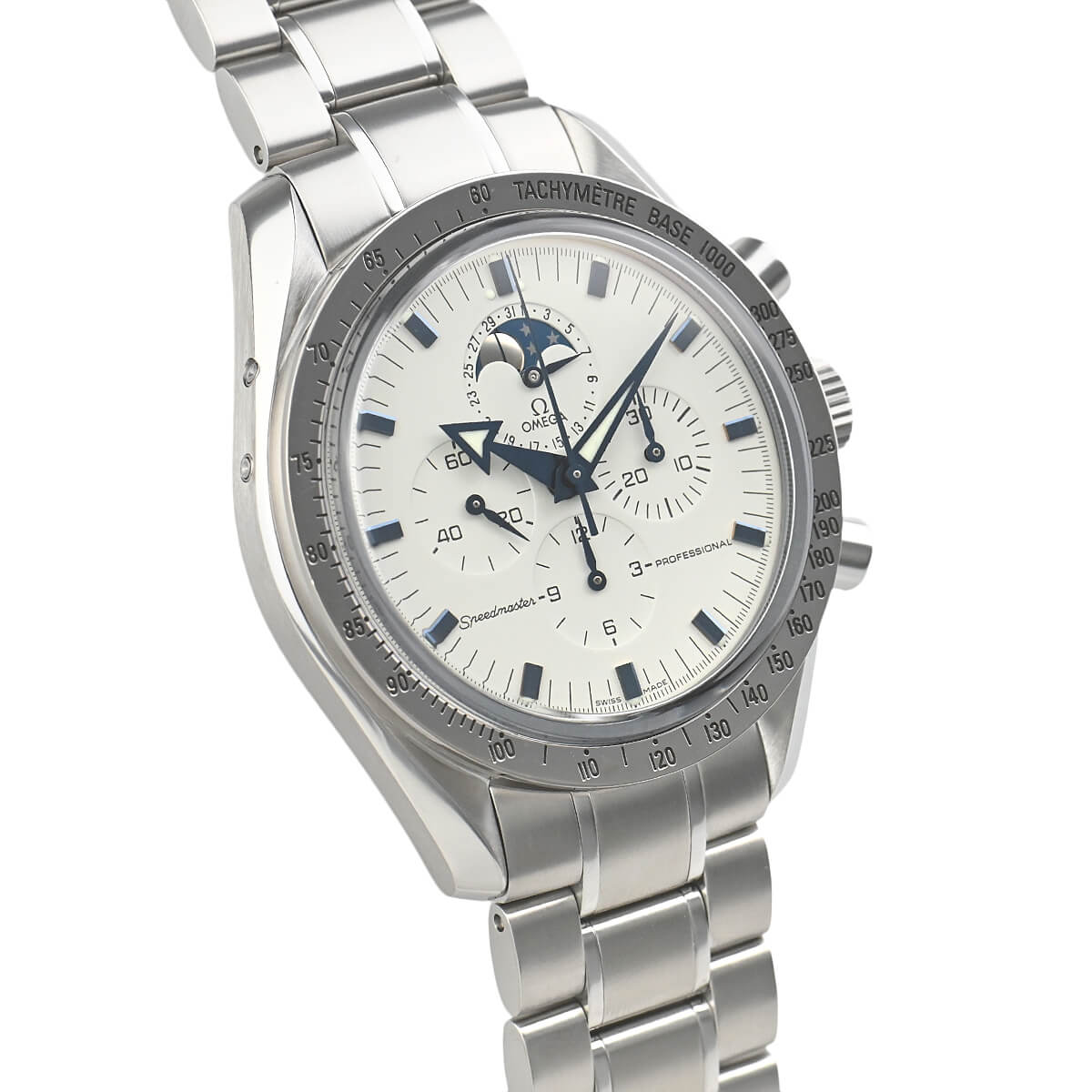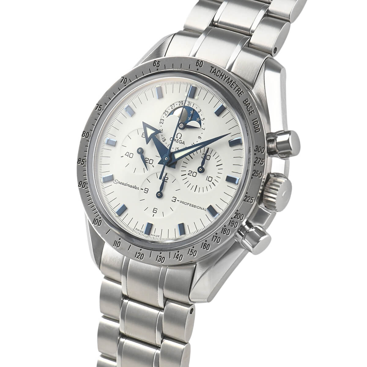 最初に月に行った時計として「ムーンウォッチ」とも呼ばれるスピードマスターに、ムーンフェイズを追加したモデルです。80年代にもムーンフェイズモデルが販売されており、その復刻版といえなくはないですが、文字盤色が白になり、ベゼルがホワイトゴールドであったりとリメイクされている点も多く見受けられます。