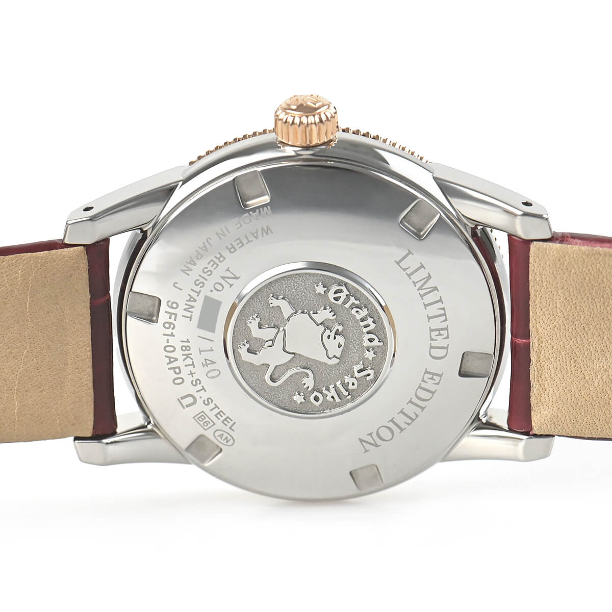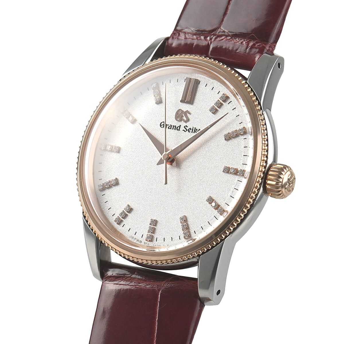 セイコー創業140周年記念限定モデルとして2021年に販売された「SBGX346」。コインエッジをあしらった18Kゴールドベゼルとダイヤインデックスを組み合わせた華やかなモデルです。
