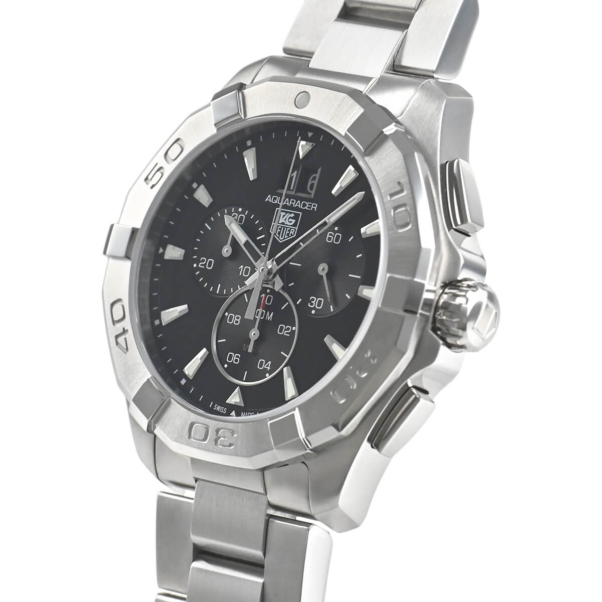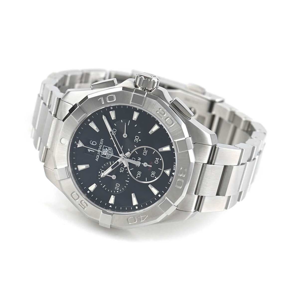 抜群のコストパフォーマンスの「アクアレーサークロノグラフ」。クォーツクロノグラフムーブメントを採用し、6時位置には1/10秒計、12時位置には読みやすいビッグデイトを搭載。