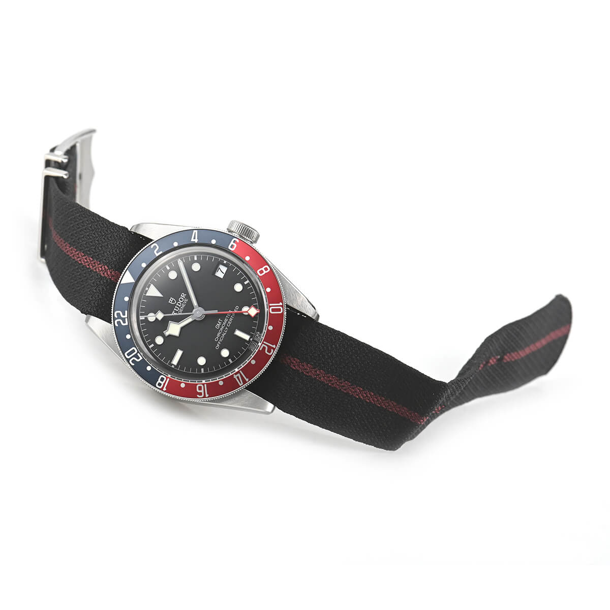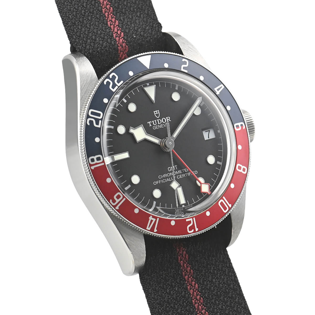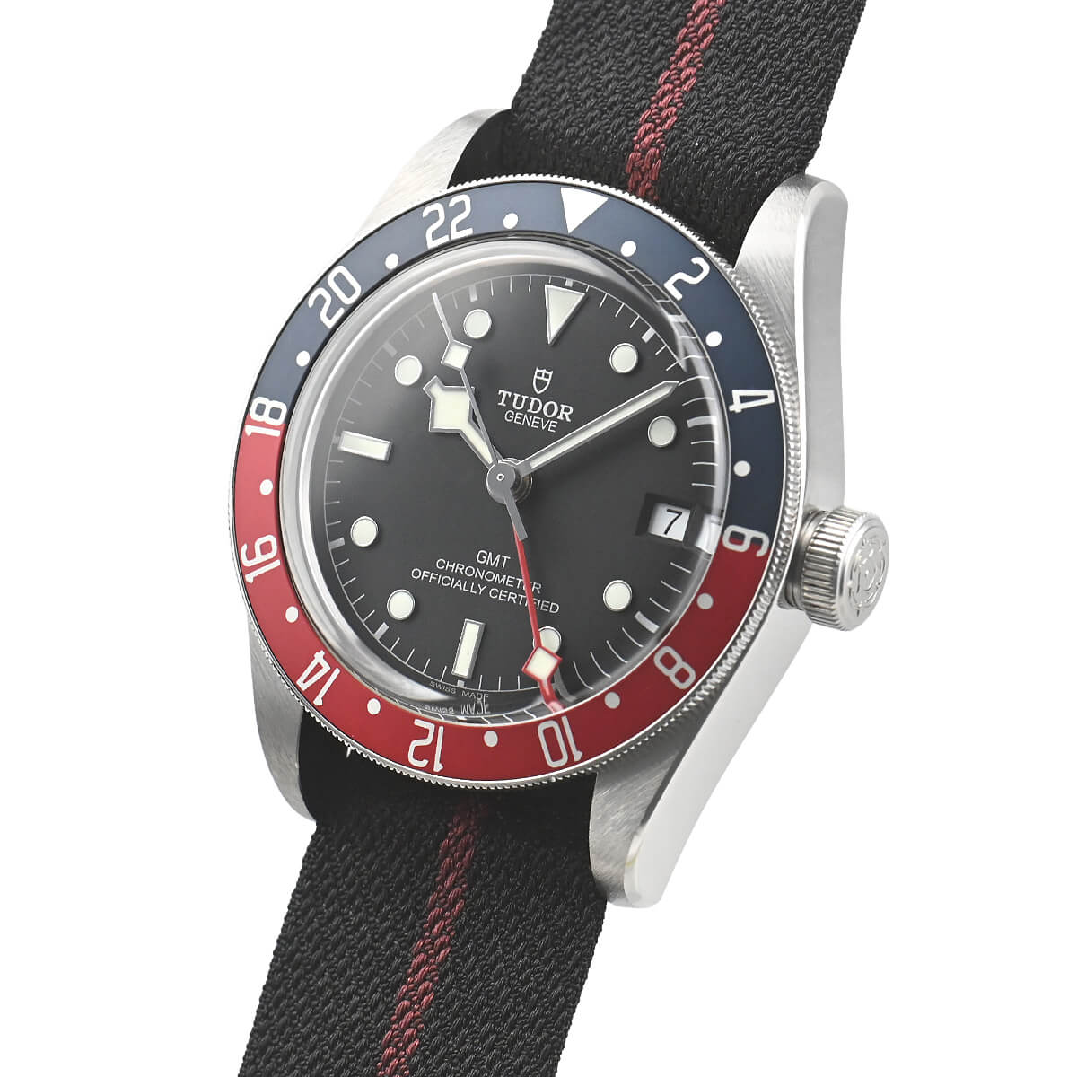 【M79830RB-0003】ブラックベイGMTが入荷しました。ロレックスのGMTマスターを彷彿させ、GMT針と秒針がイカ針となった遊び心のあるデザインが特徴です。