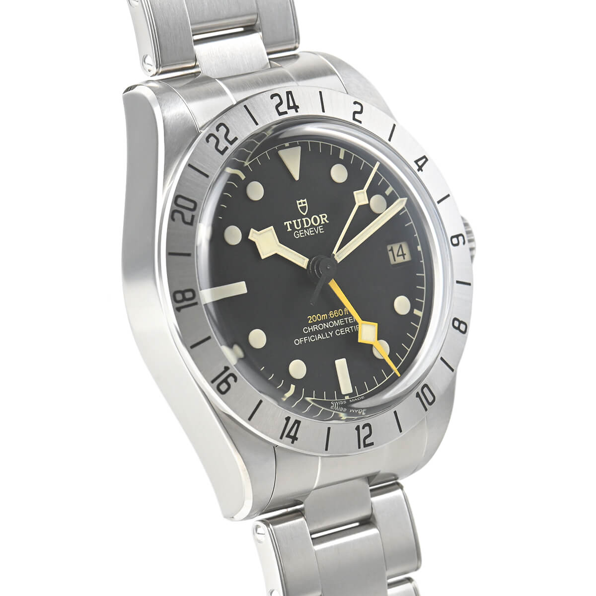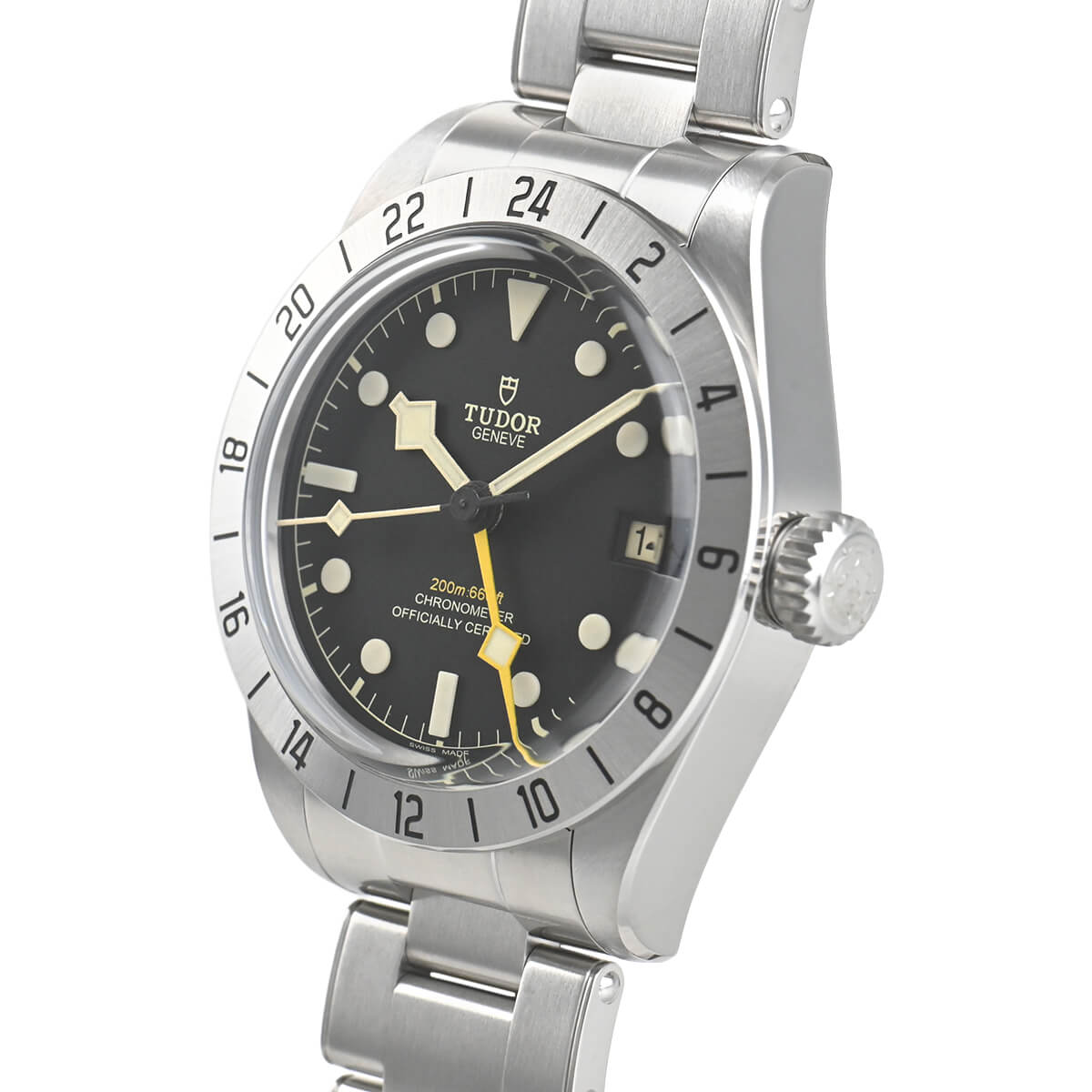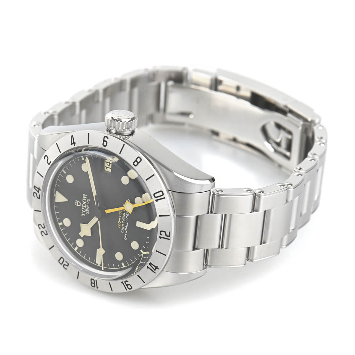 【M79470-0001】ブラックベイ プロが入荷しました。黄色いGMT針とステンレスベゼルに記載された24時間表記を用いたことでロレックスのヴィンテージ「エクスプローラーII」を彷彿させます。