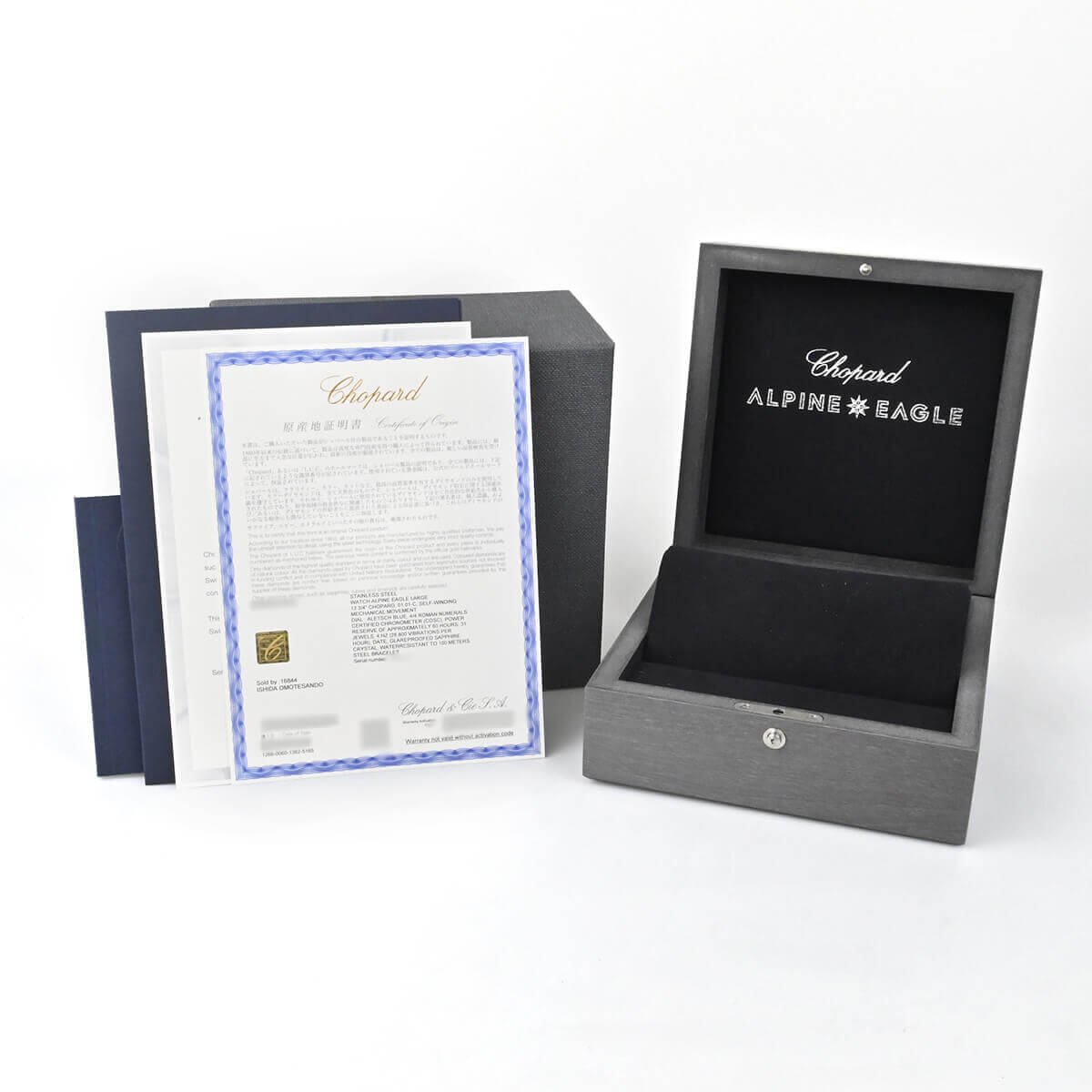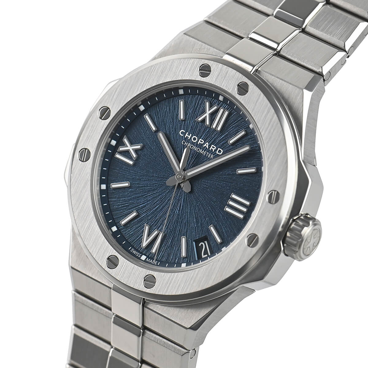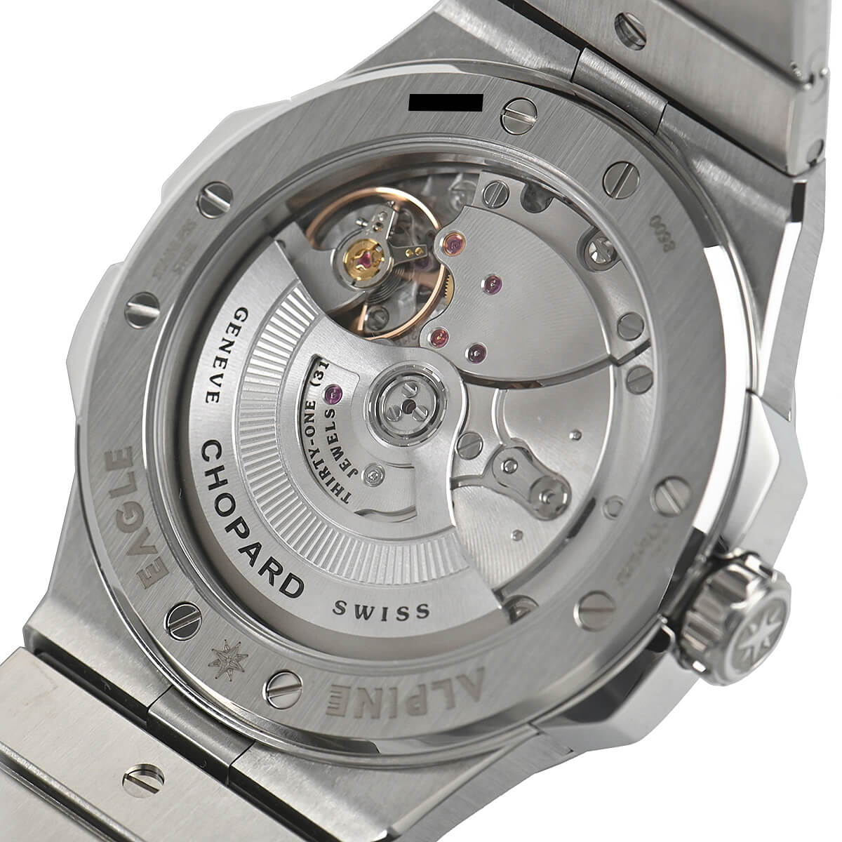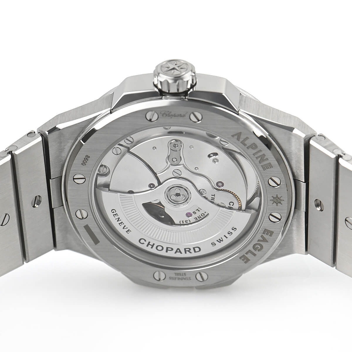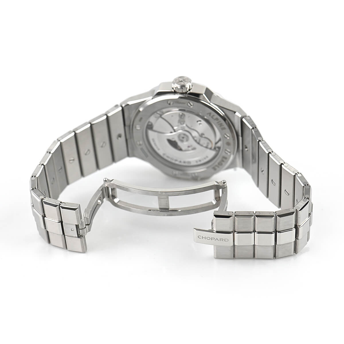 1980年にショパールの共同社長を務めるカール-フリードリッヒ・ショイフレ氏がデザインした「サンモリッツ」にインスピレーションを受けデザインされた「アルパインイーグル」。一体感があるケースとブレスのデザインが特徴です。