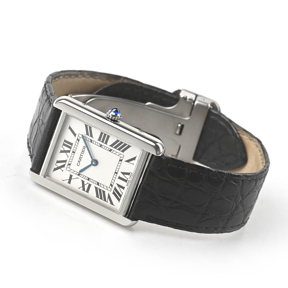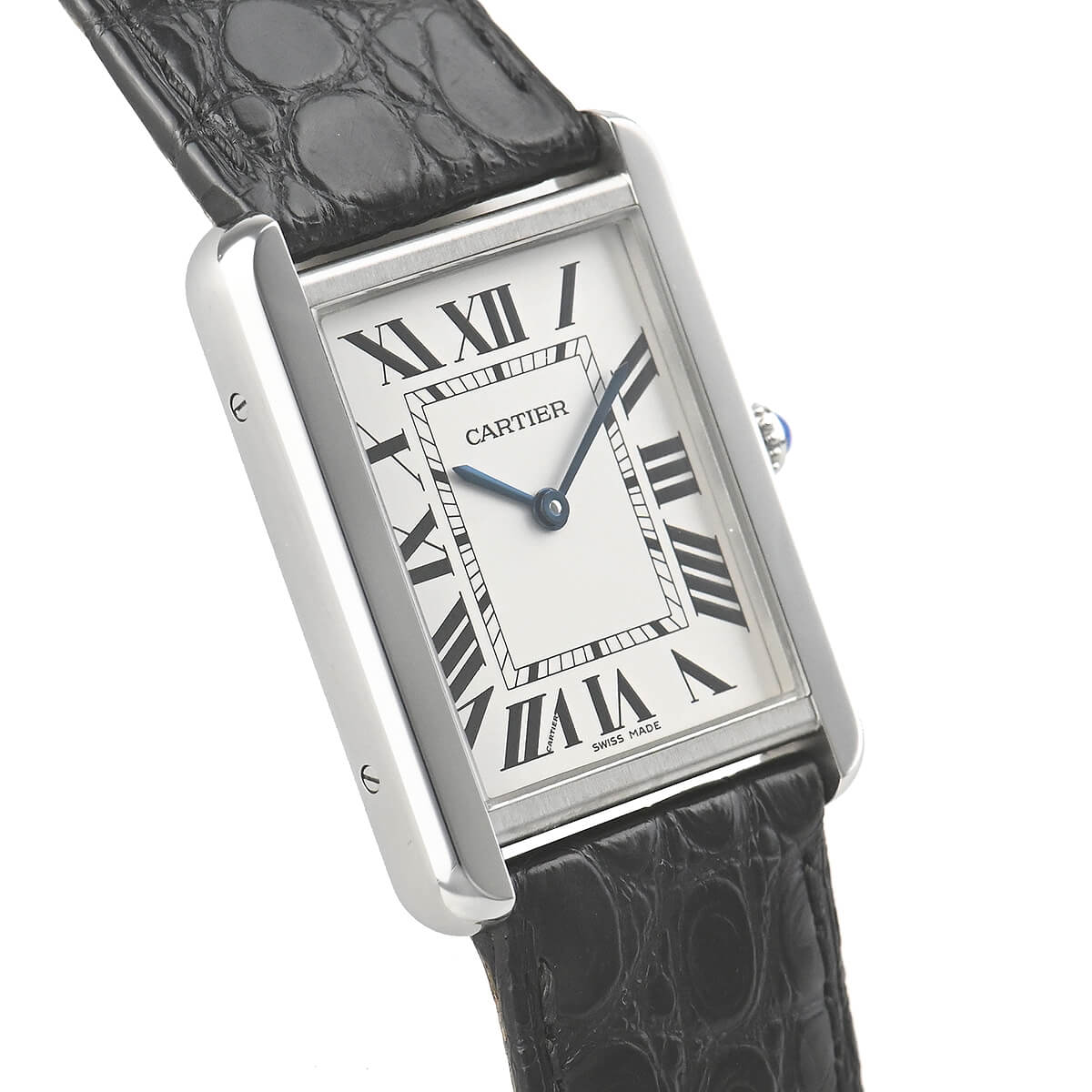 ベーシックなデザインで人気がある「タンク ソロ」。第一次大戦の戦車をモチーフにしたオリジナルタンクのデザインを色濃く受け継ぐモデルです。