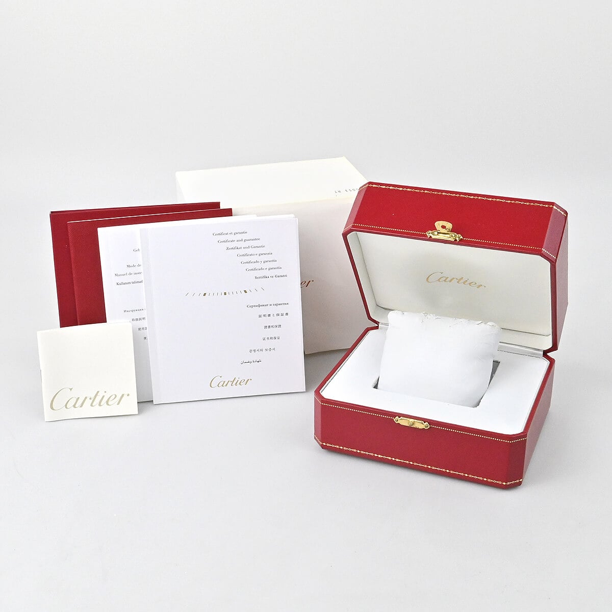シンプルな美しさの中にブルースチールの針やローマンインデックスなど、カルティエらしさに溢れています。
