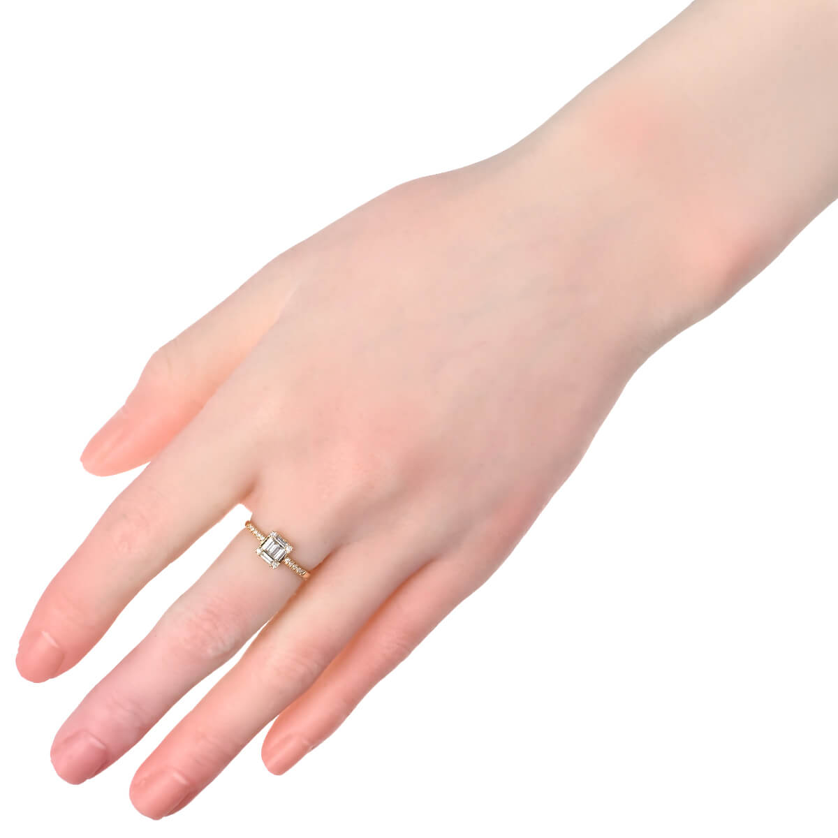 ひとりのフランス人ジュエリーマイスターが、タイで世界中から集まる最高級の宝石たちと出合ったことからはじまったジュエリーブランド『BELLESIORA(ベルシオラ)』。タイの伝統とフランスの芸術性を融合させ、そこから生み出されたベルシオラのジュエリーは、贅沢なまでのエレガンスに、洗練されたひとさじのオリエンタリズムを感じさせます。ベルシオラを象徴するバゲットカットダイヤモンドと、ラウンドダイヤモンドをスクエアデザインにセットした、「スクエア」コレクションのイエローゴールド製リング。そぎ落とされたミニマムなスクエアフォルムが美しく、直線フォルムがシャープな印象を添える、ブランドを代表するデザインのリングです。無理なく余裕を感じさせる自分らしいスタイルを楽しむ、大人の女性にこそ似合うファインジュエリー。バゲットカットダイヤモンドのさりげなく静謐な輝きは、なにげない日常にも、洗練された印象を添えてくれますね。