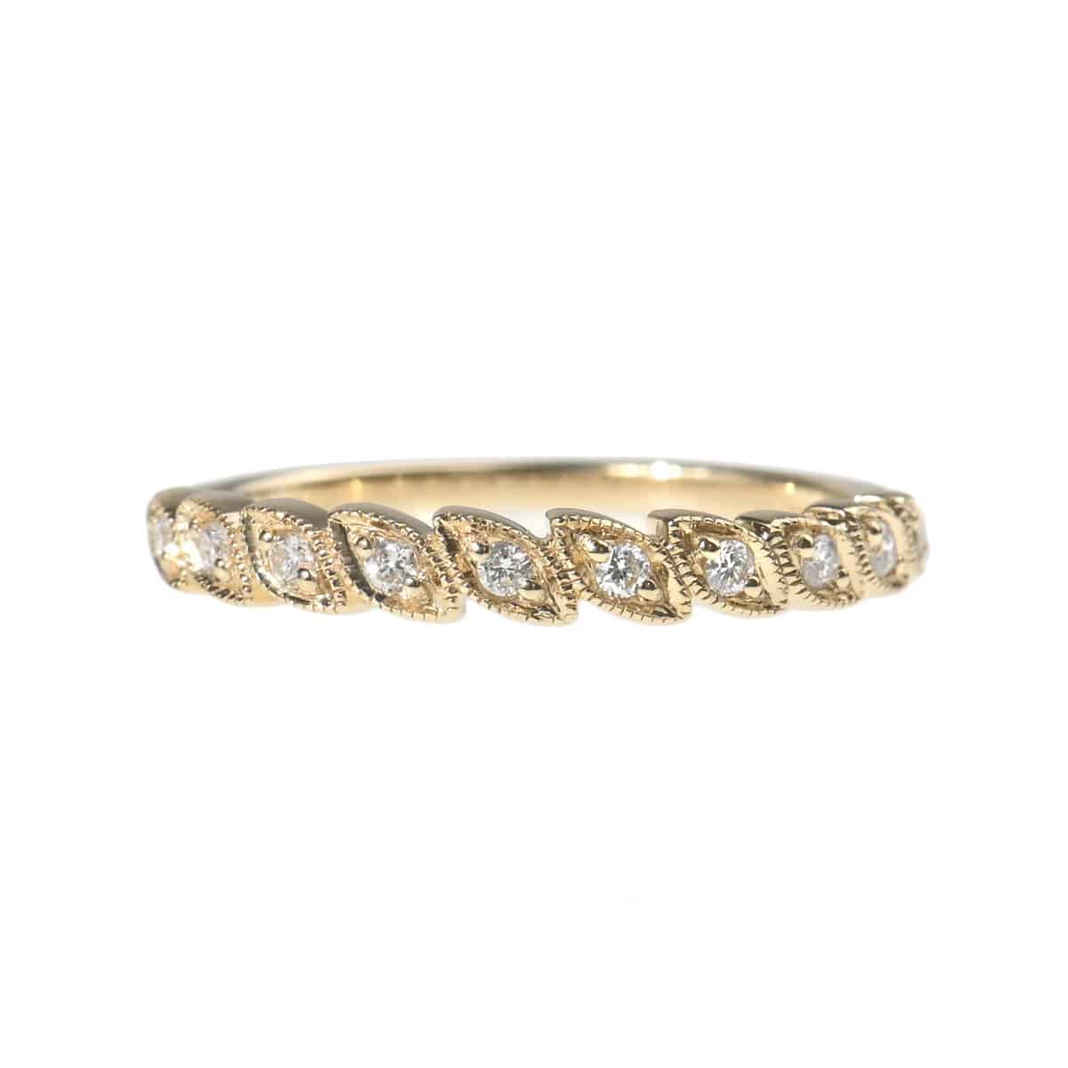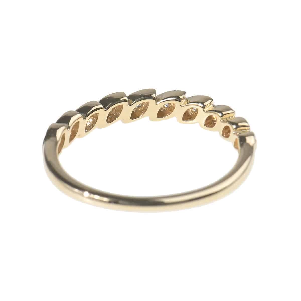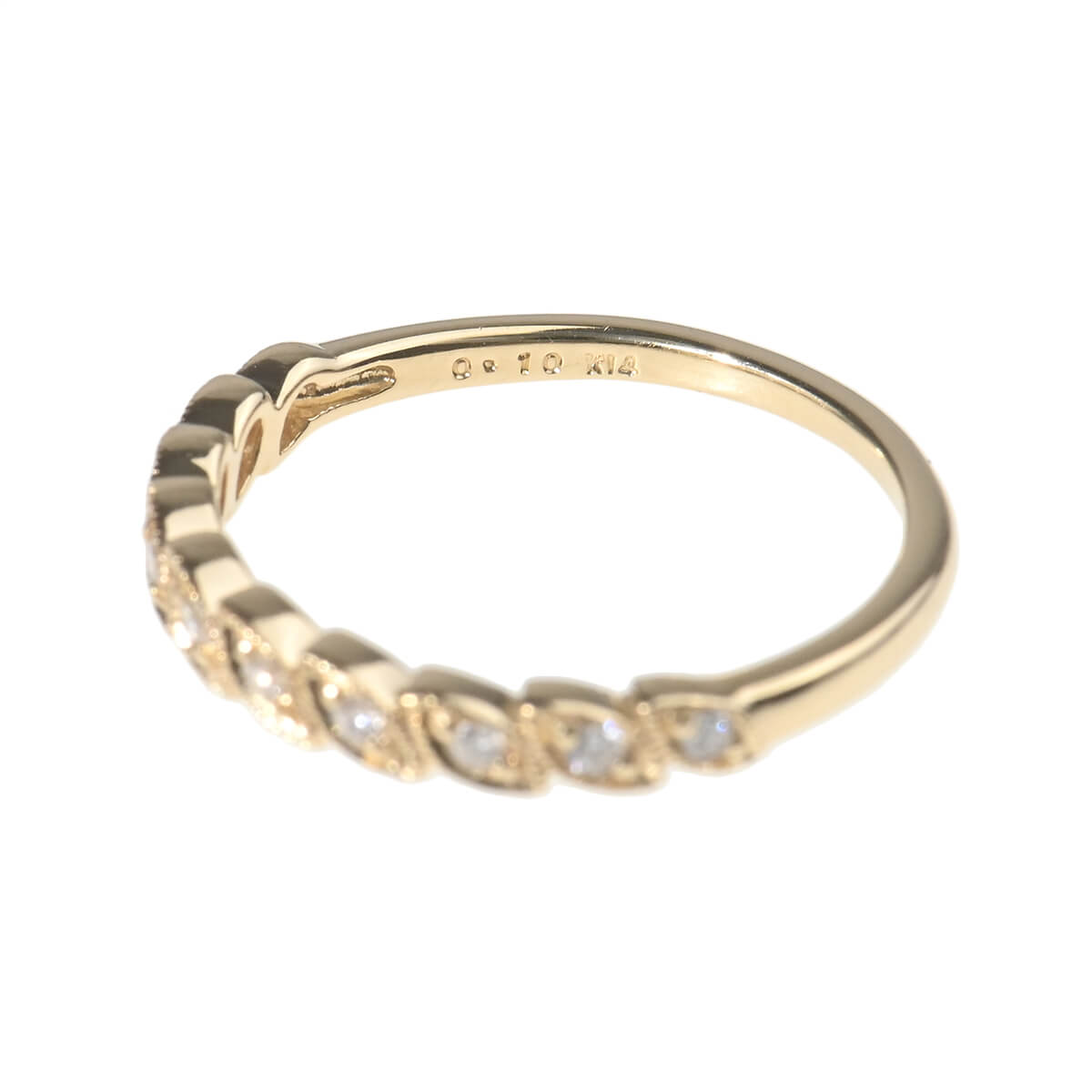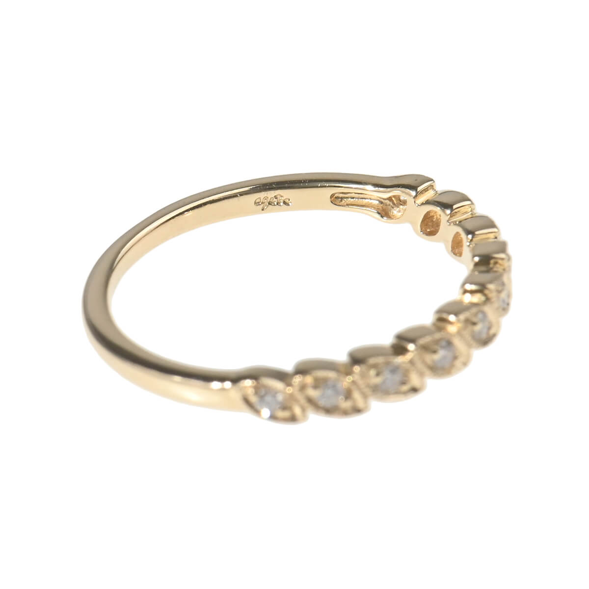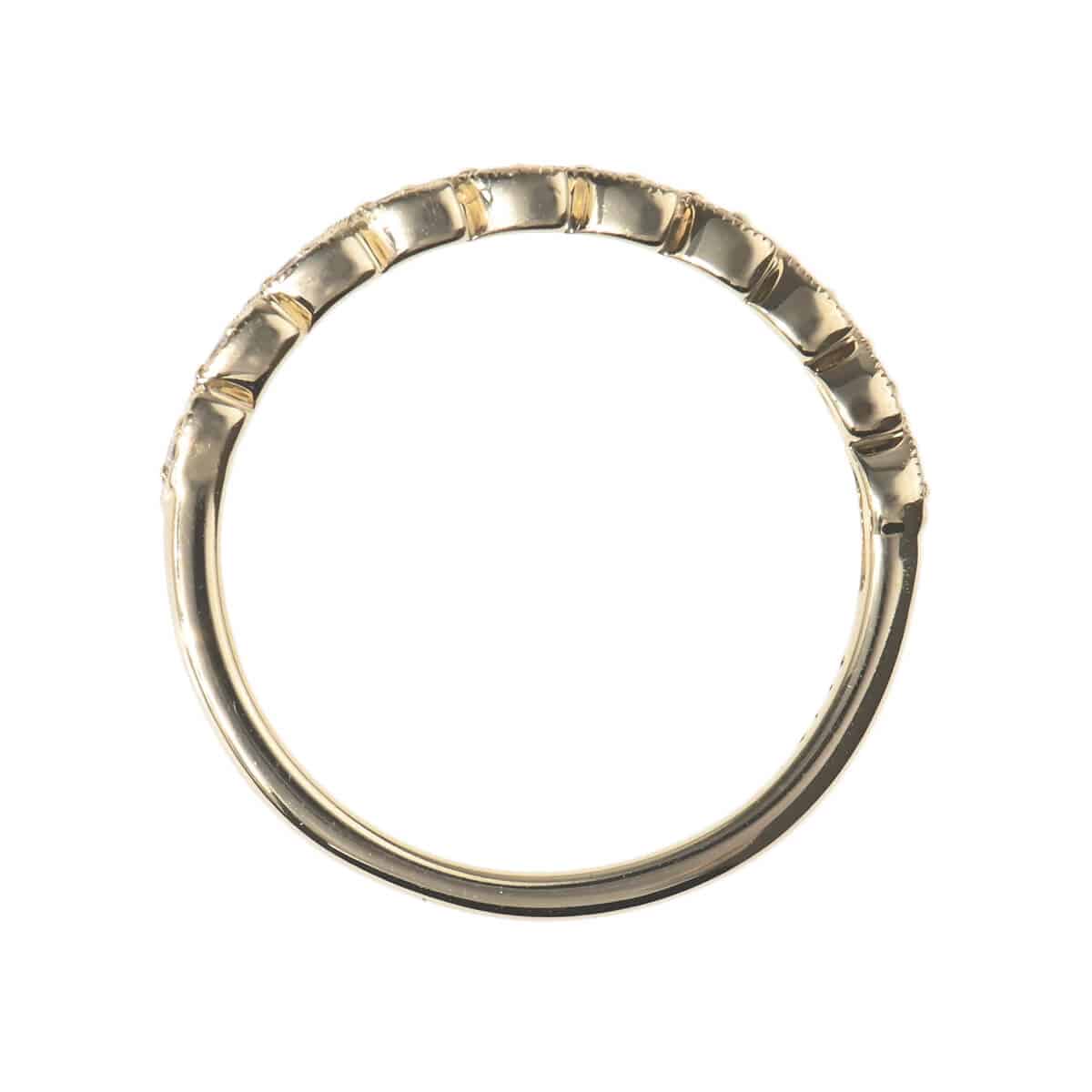 “レトロでありながらモダン。クラシックでありながらファッション”というデザインフィロソフィーを大切に、鋭いスタイルセンスでファッショントレンドをリードし、クリエイティブなジュエリーを創り出しているドメスティックブランド『agete(アガット)』。コンテンポラリーから古き良き時代のジュエリーまで、素材や国にとらわれないミックス感あふれる多彩なデザインや、シンプルで洗練されたなかにも時代感覚のあるファッションジュエリーを提案し続けています。リーフのようなフォルムの枠にセットされたダイヤモンドが連なる、14カラットイエローゴールド製リング。アンティークレースのようなやさしいデザインのリングが、軽やかに、繊細にきらめいて指先を飾ります。デイリーからワーキングスタイルまで、いつでも身に着けていられそうな、さりげない仕草にまで本物の輝きを添えてくれる、コストパフォーマンスの高さも魅力のダイヤモンドジュエリーです。