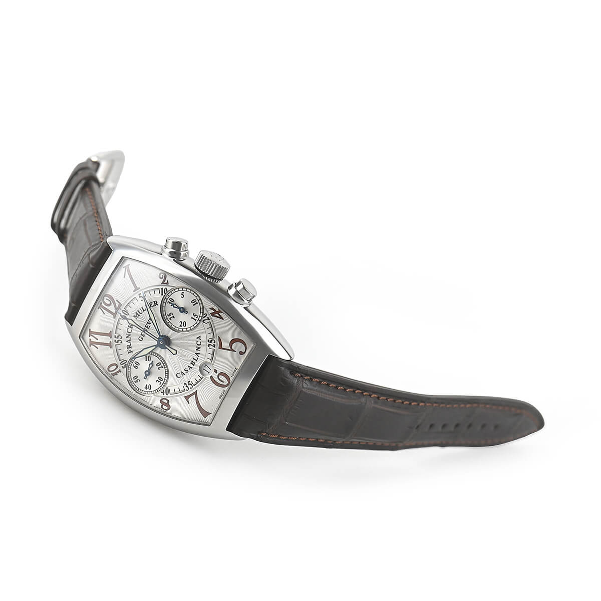 ボリュームのある7880ケースにより、圧倒的な存在感を放つ「トノウカーベックスカサブランカクロノ」。全てが優美な曲線で形成されるトノーケースはこのモデルでも健在です。