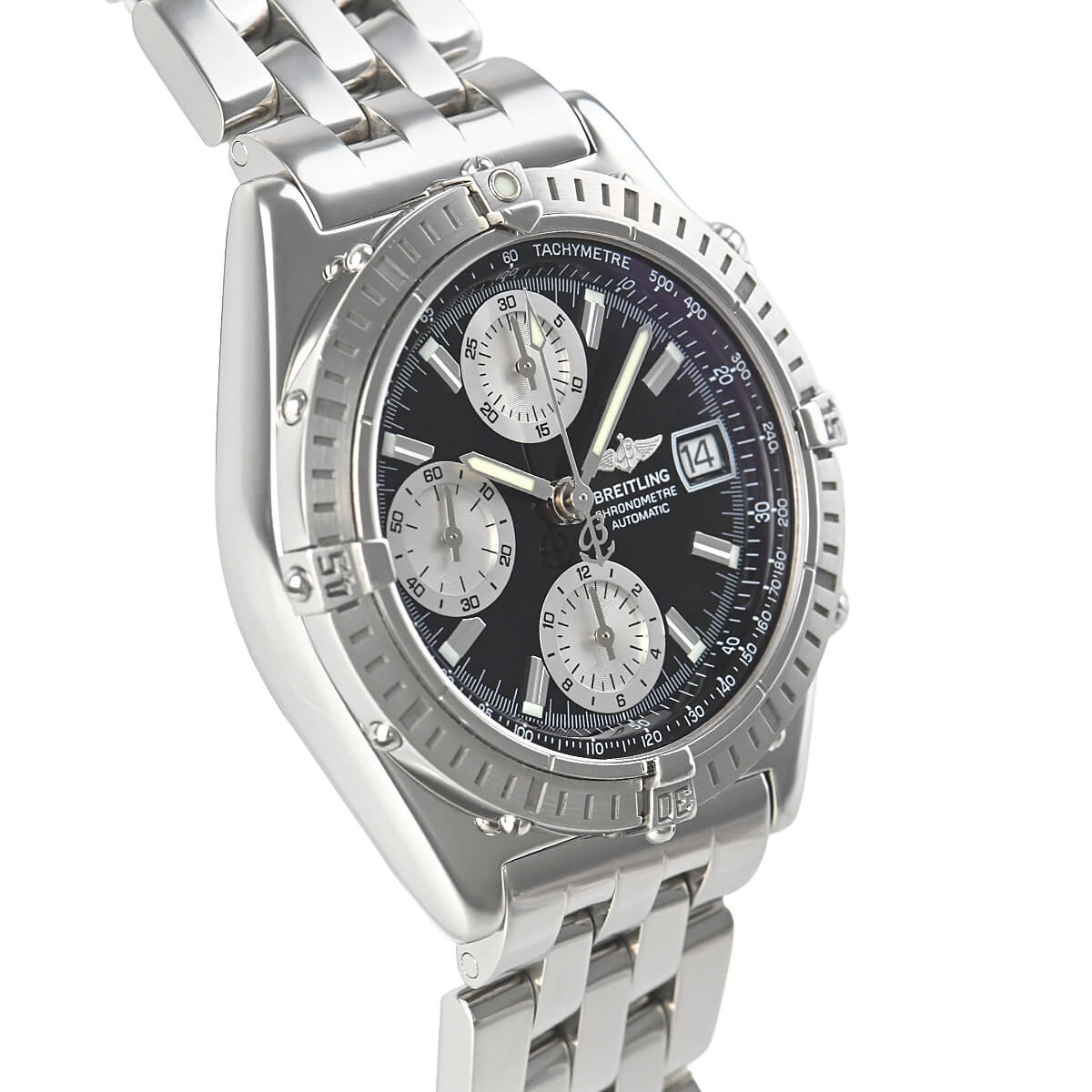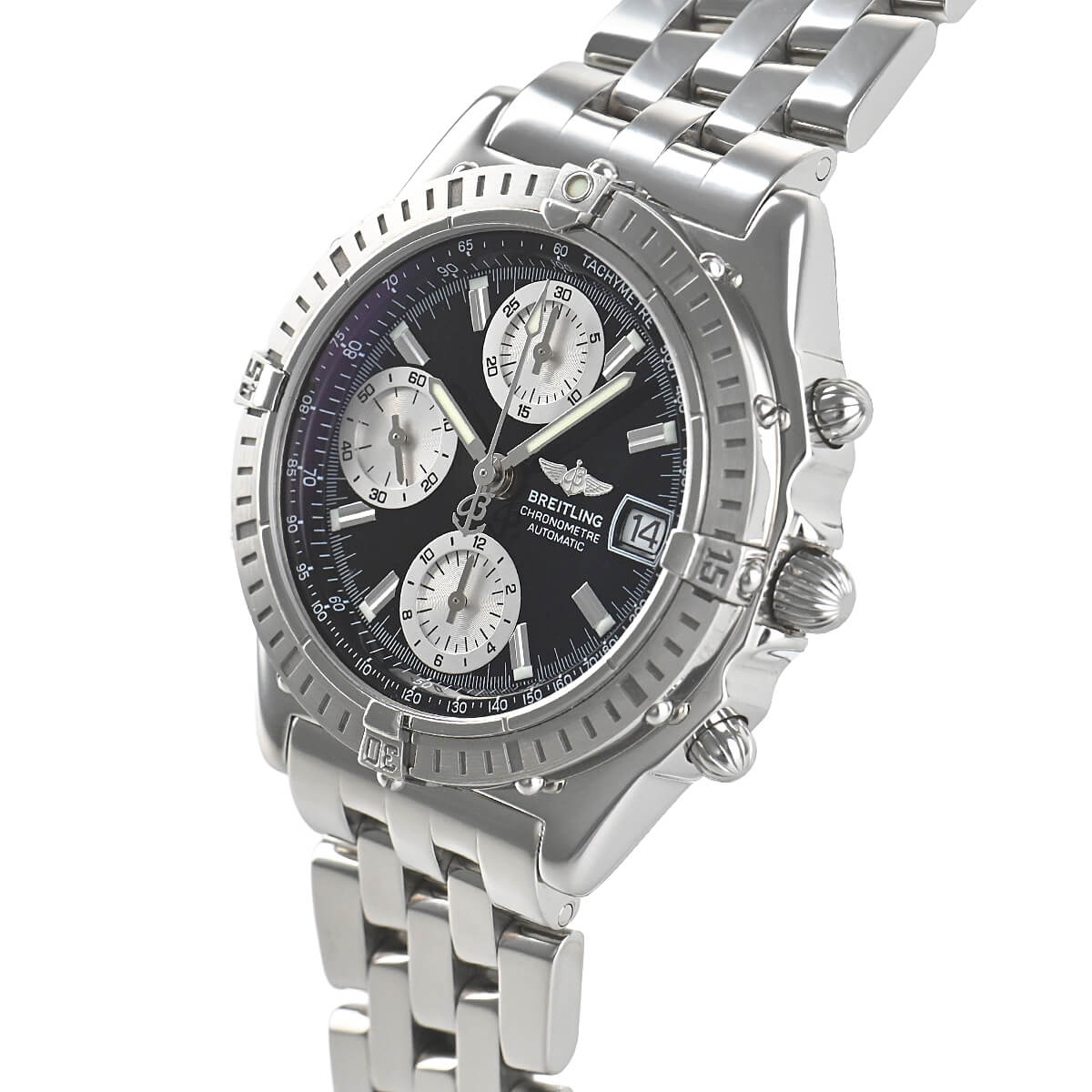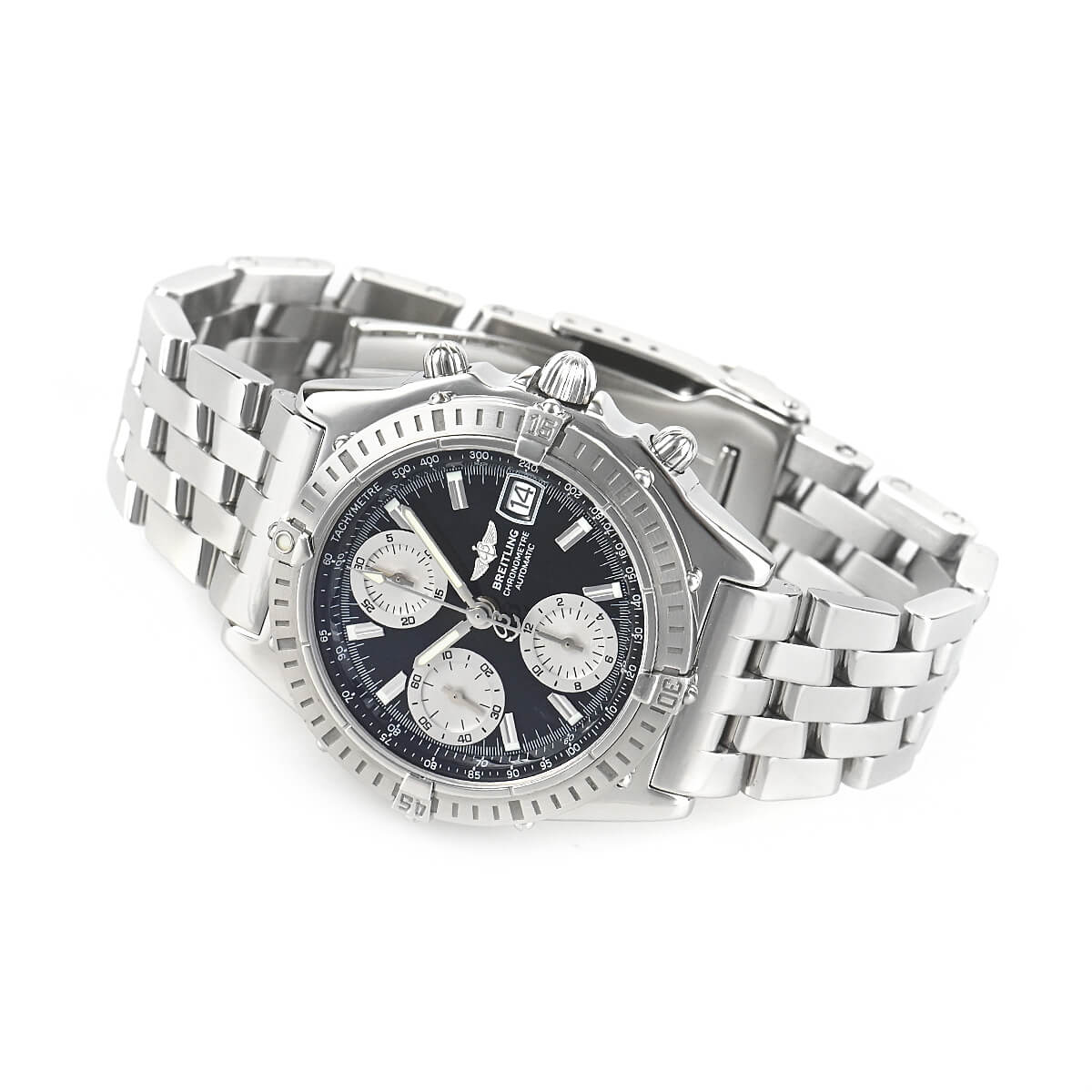 ブライトリングを代表する人気モデルであるクロノマット2000が入荷しました。現行型に比べると少し小振りな旧型モデルで、日本人の細身の腕にも程よく馴染むサイズ感です。