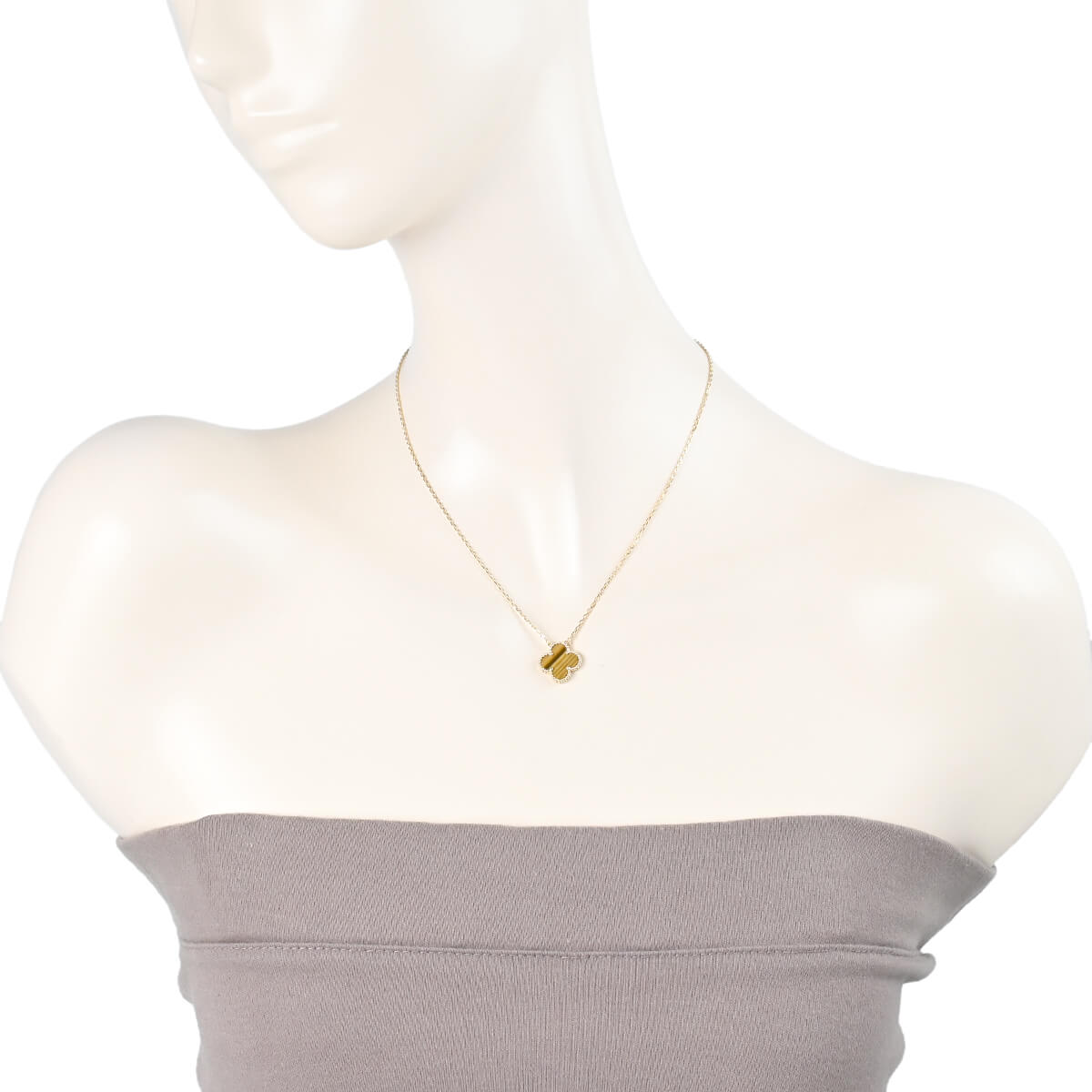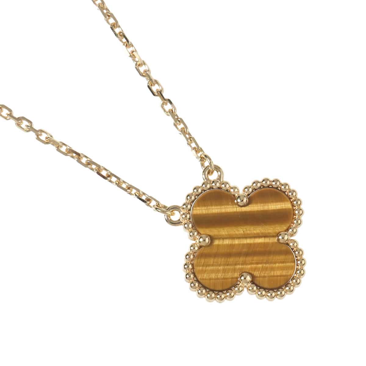 1968年に初めて誕生した幸運のシンボル「アルハンブラ」の特徴を受け継ぎ、『VanCleef&Arpels(ヴァンクリーフ&アーペル)』ならではの独創性と時を超えるエレガンスを湛える「ヴィンテージアルハンブラ」コレクションは、エレガントで清楚、控えめでありながら洗練された、メゾンを代表するアイコン。ゴールドビーズに縁取られたタイガーズアイでデザインされた幸運のシンボルが、光の加減で様々な表情を見せてくれる、イエローゴールド製ペンダントです。タイガーズアイは虎の目を思わせるイエローとブラウンの滑らかな光沢のある縞模様が特徴で、願望の達成をサポートしてくれる宝石ともいわれています。縞がしっかり出ているものほどパワーが強く魔よけとしても使われる石なんだとか。洗練された個性とエレガントな華やかさをあわせもつ、タイガーズアイのペンダント。定番アルハンブラとは少し違うこのペンダントは、アルハンブラコレクターの方や、他の人と同じじゃつまらない、自分だけの個性を楽しめる大人の女性にぴったりですね。