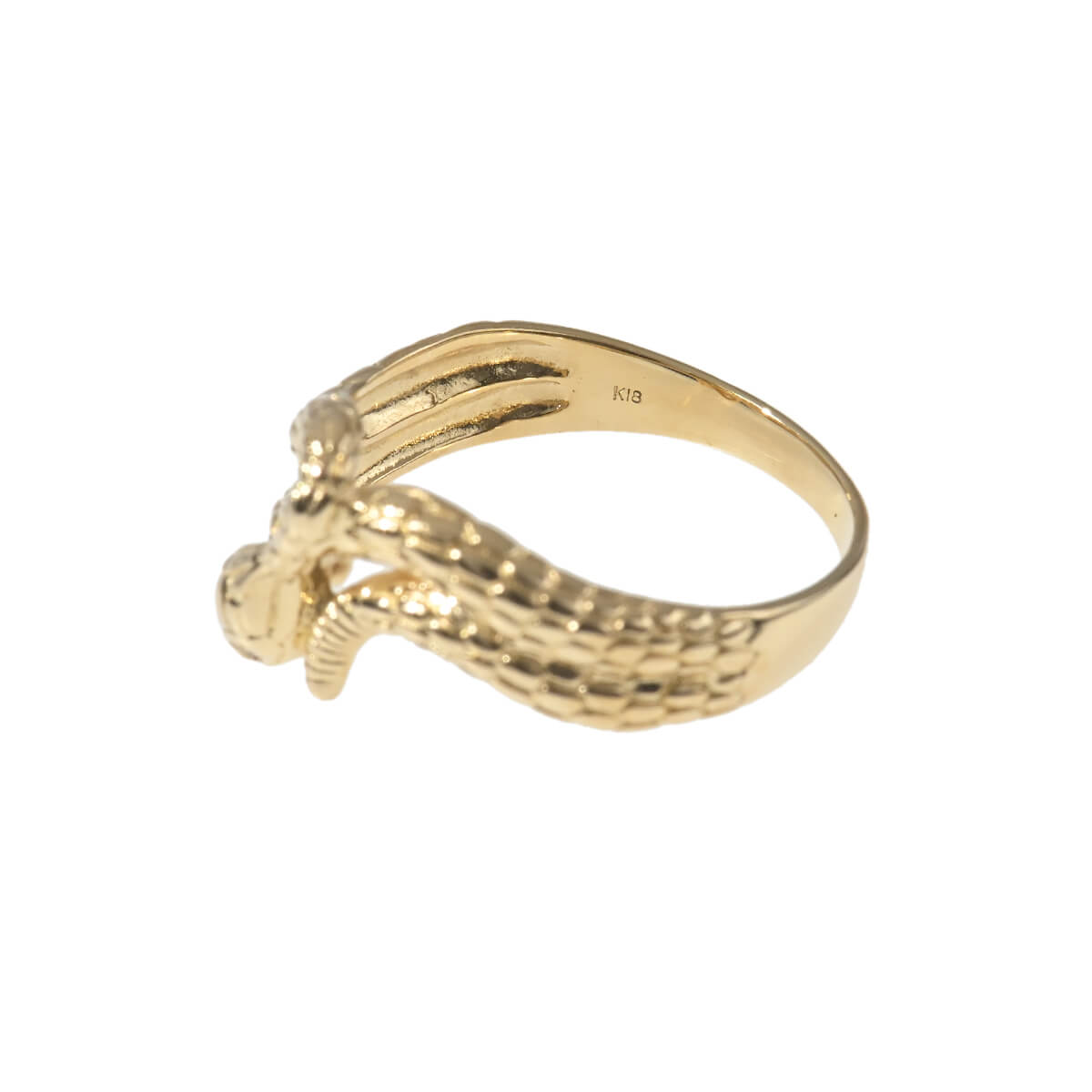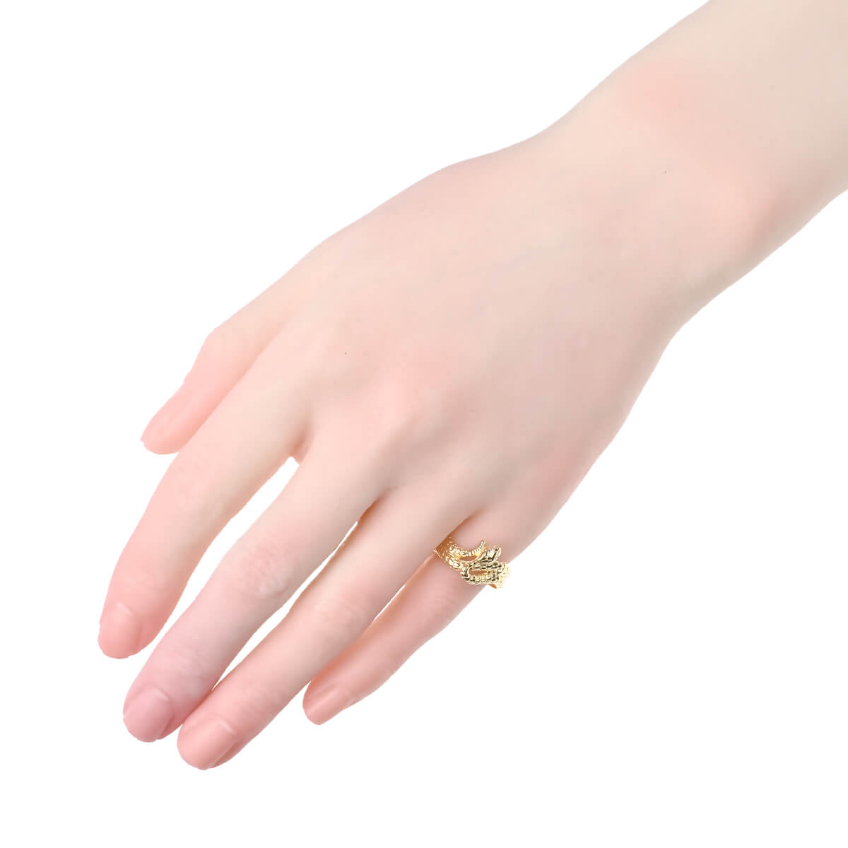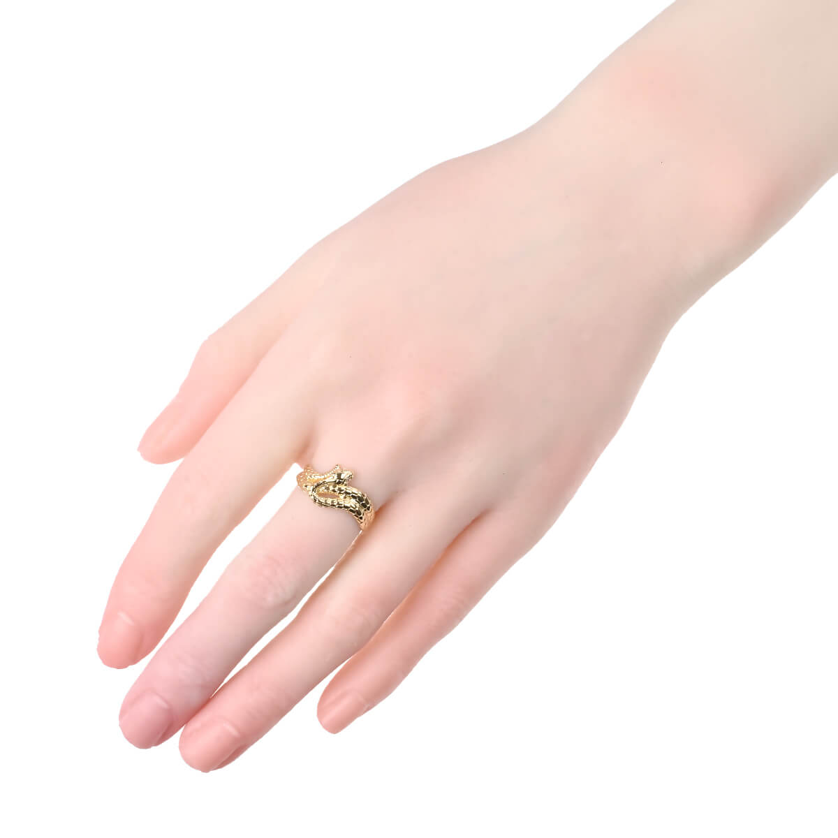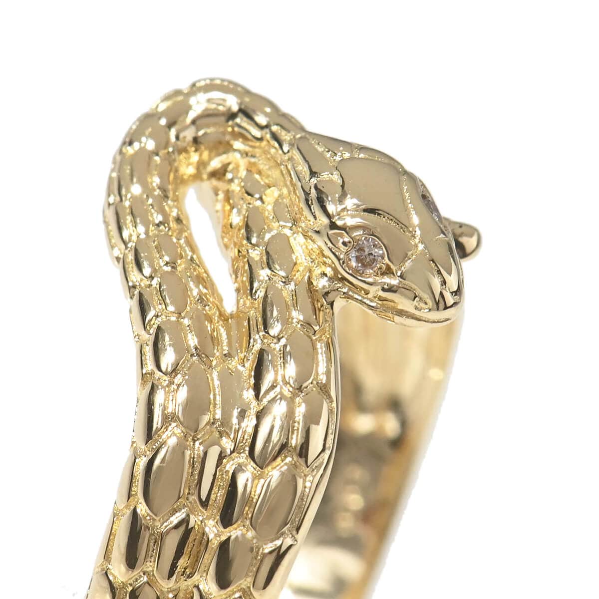 指に絡みつくような、包み込むような曲線で魅了する、守り神の象徴であり不死のシンボルでもある蛇が一層の存在感を放つイエローゴールド製リング。美しい細工が施されたセンシュアルな蛇の目には、きらめくダイヤモンドがあしらわれています。指に巻きつく繊細なスネークのモダンで個性的なフォルムが印象的な、お洒落なゴールドジュエリーです。