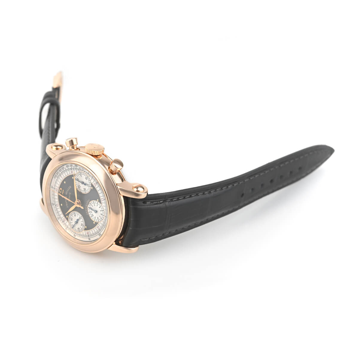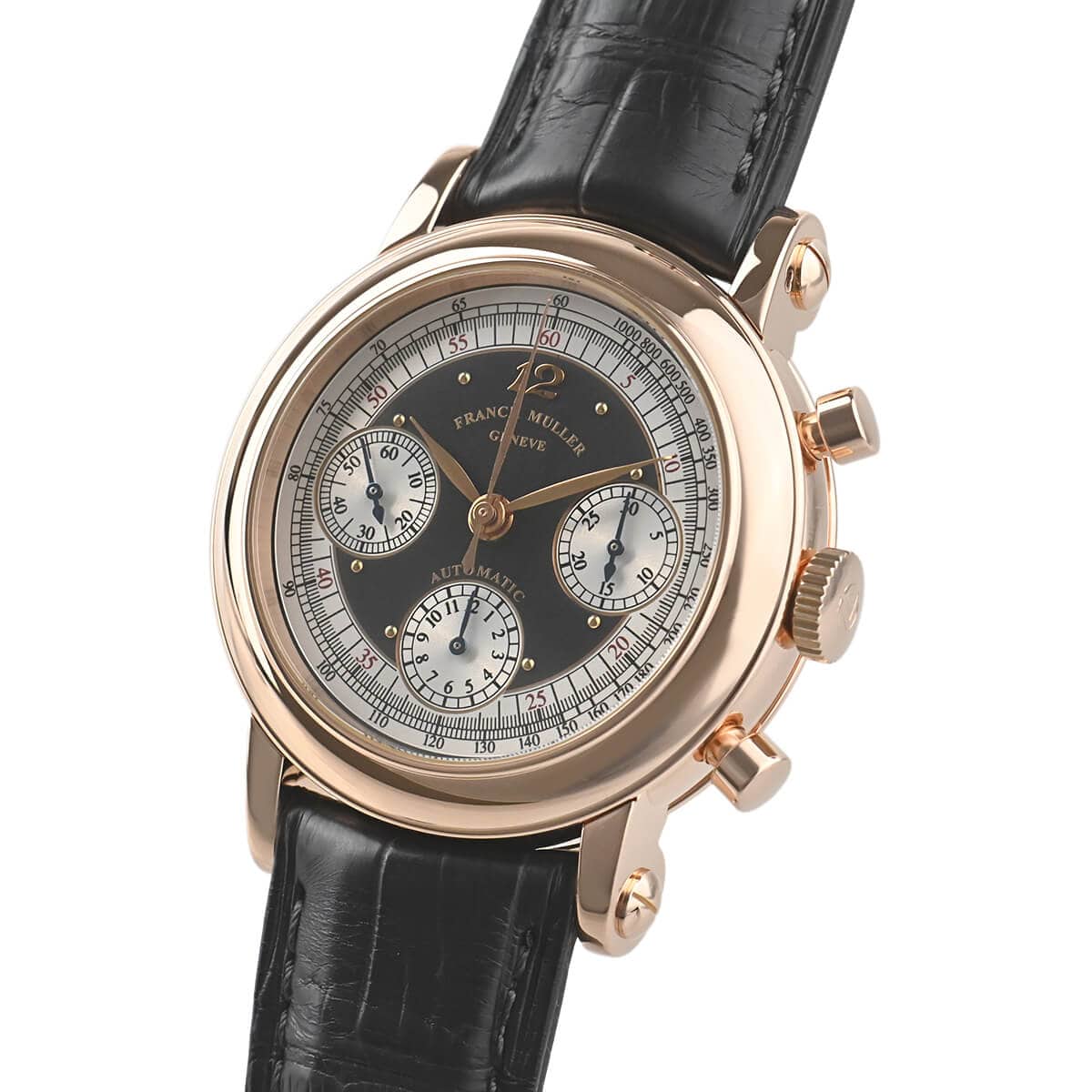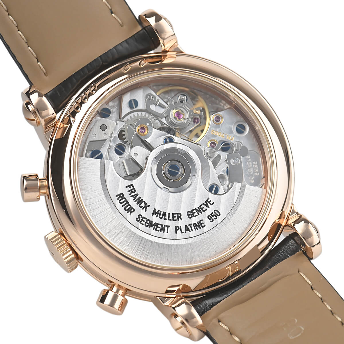 ブランド初期から作られている「ラウンドクロノ」。ダブルフェイスや普通の裏蓋、シースルーバックなどのバリエーションが有りますが、こちらはシースルーバックのタイプになります。
