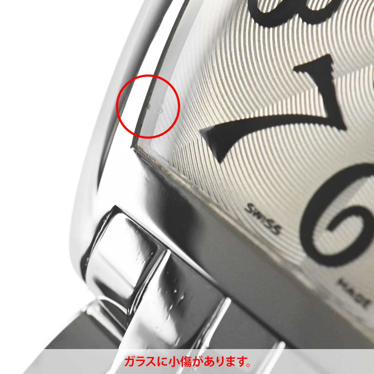 文字盤に経年変化による退色、ガラスに小傷がございます。