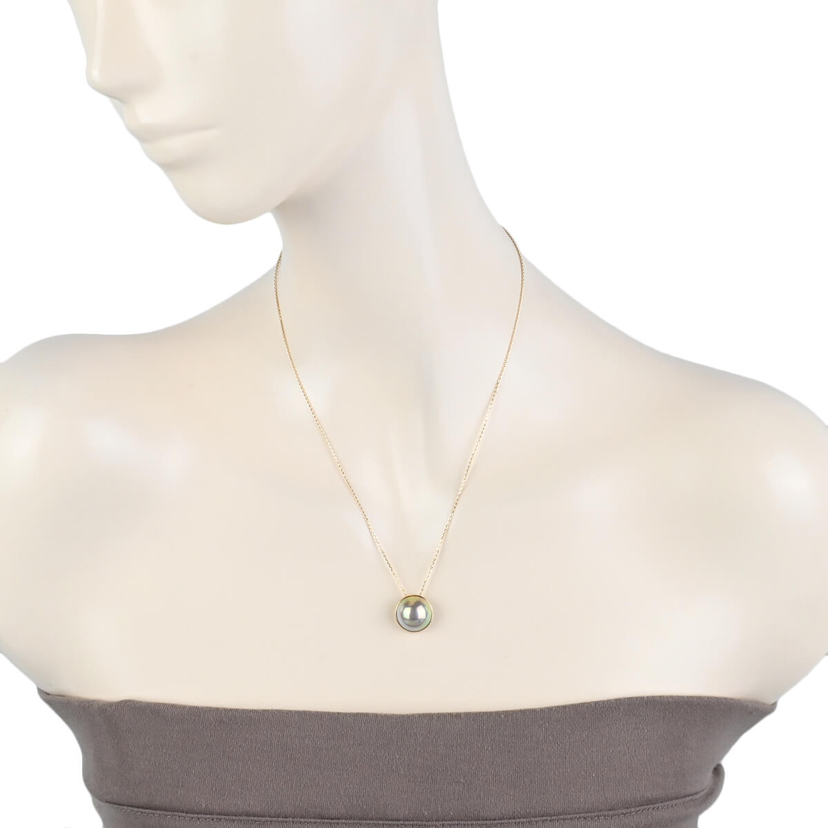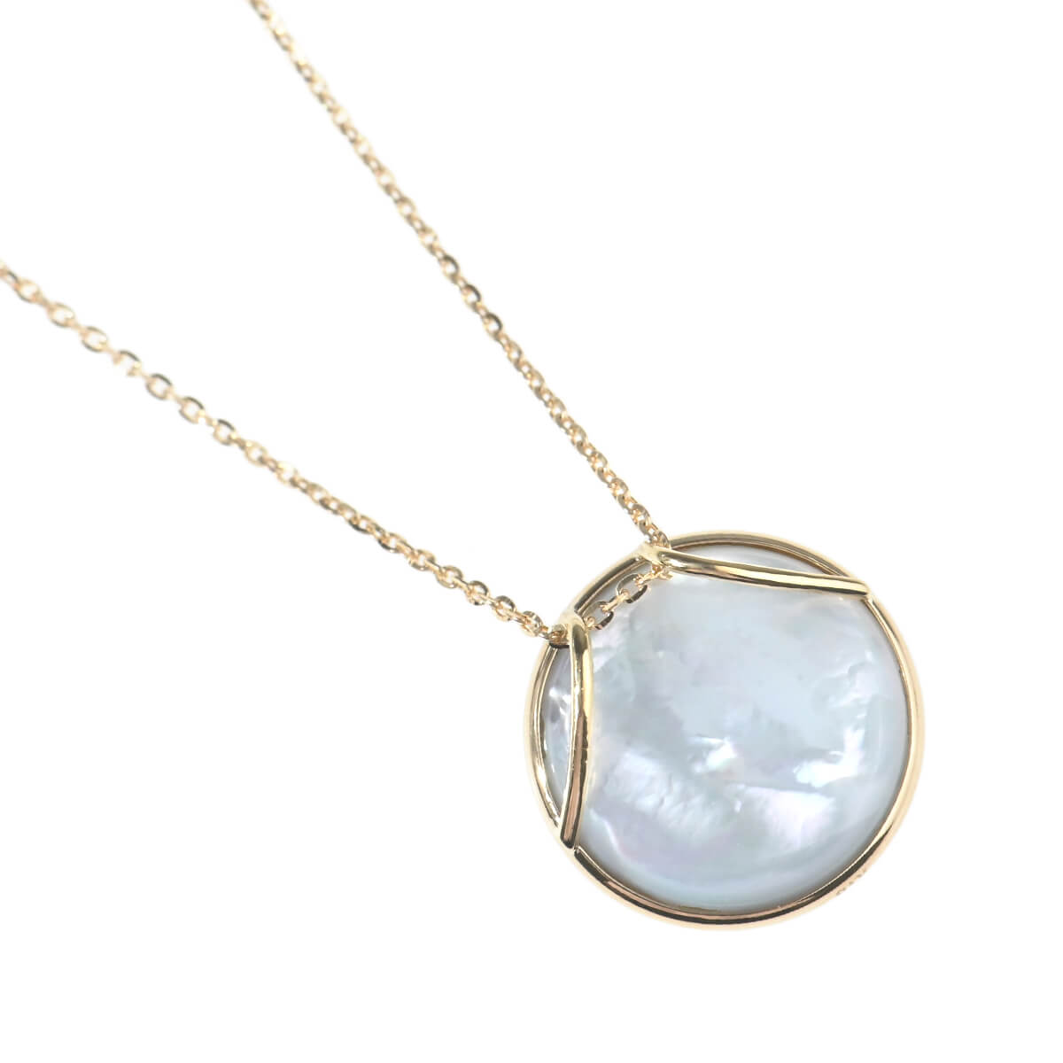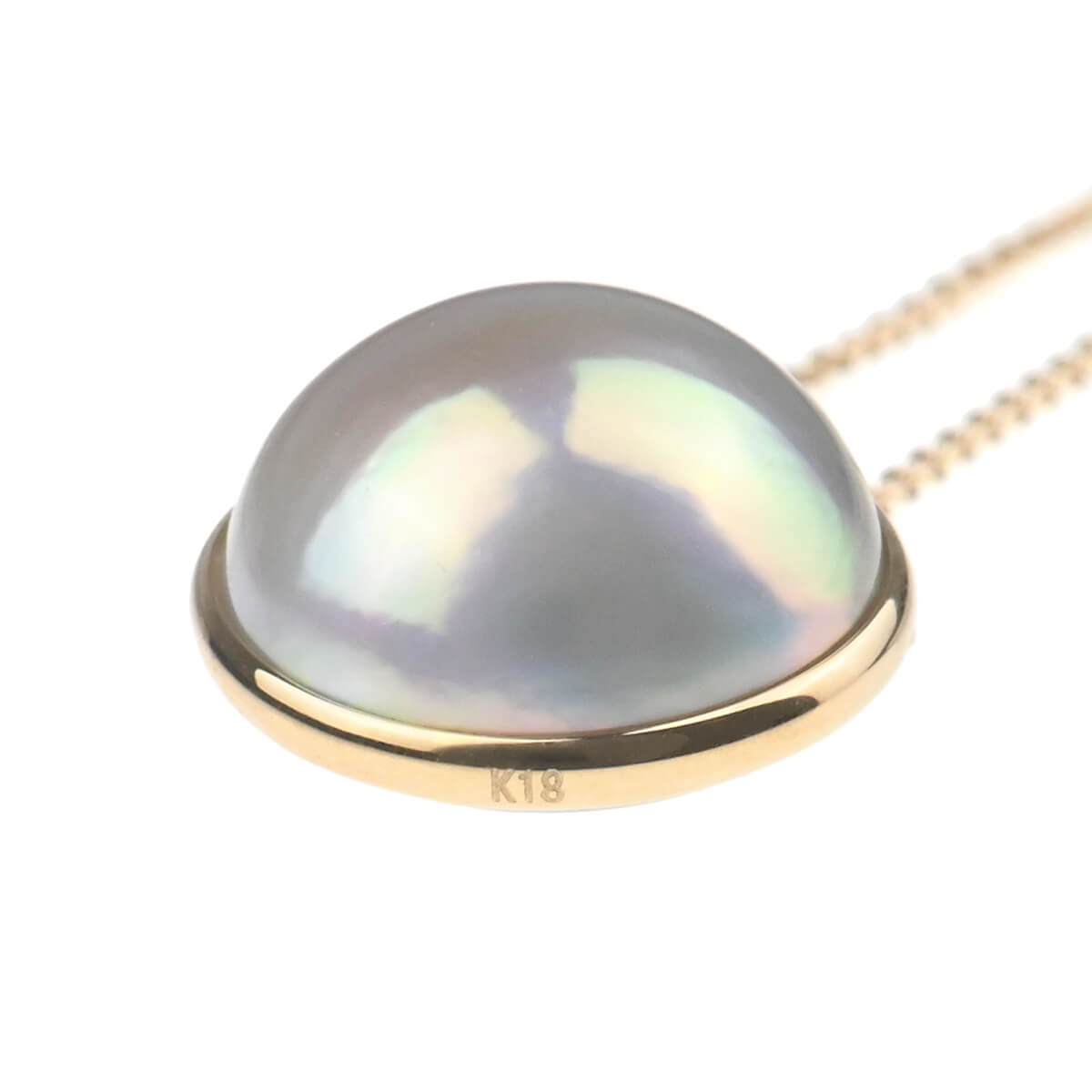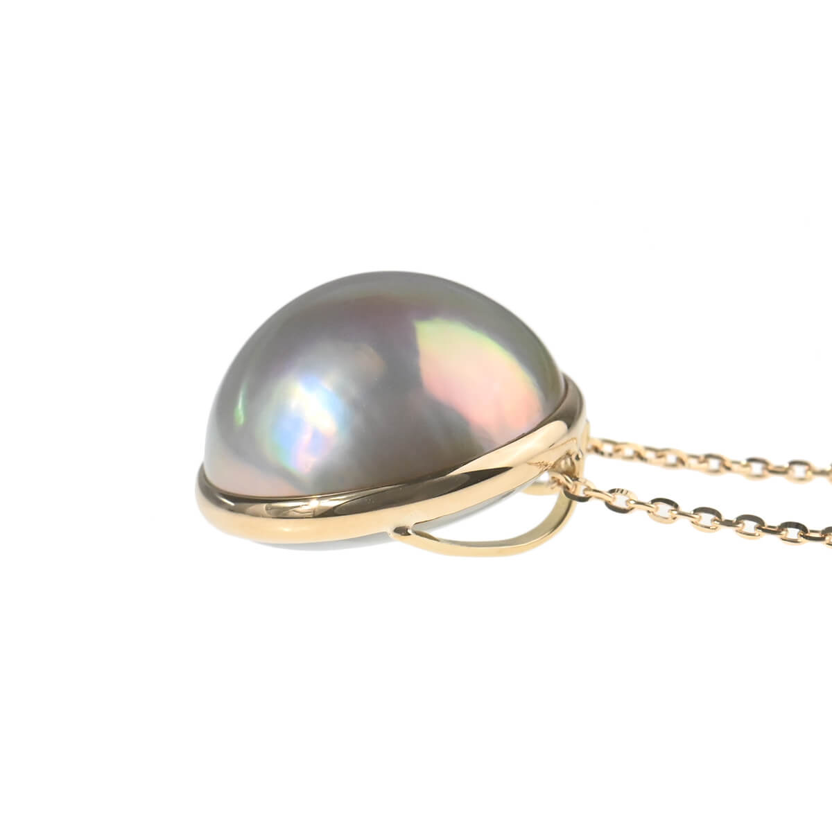 ゴールドの環に囲まれた優しく神秘的な光を放つマベパールが、繊細なゴールドチェーンにひとつあしらわれたイエローゴールド製ペンダントネックレス。あこや真珠や南洋真珠とは違った、インパクトある美しさにあふれたマベパールの存在感をどの角度からも楽しめるペンダントは、どんなスタイリングにもパールジュエリーらしい品と余裕を添えてくれそうですね。カジュアルにも使いやすい、コストパフォーマンスの高さも魅力のお洒落なパールジュエリーです。