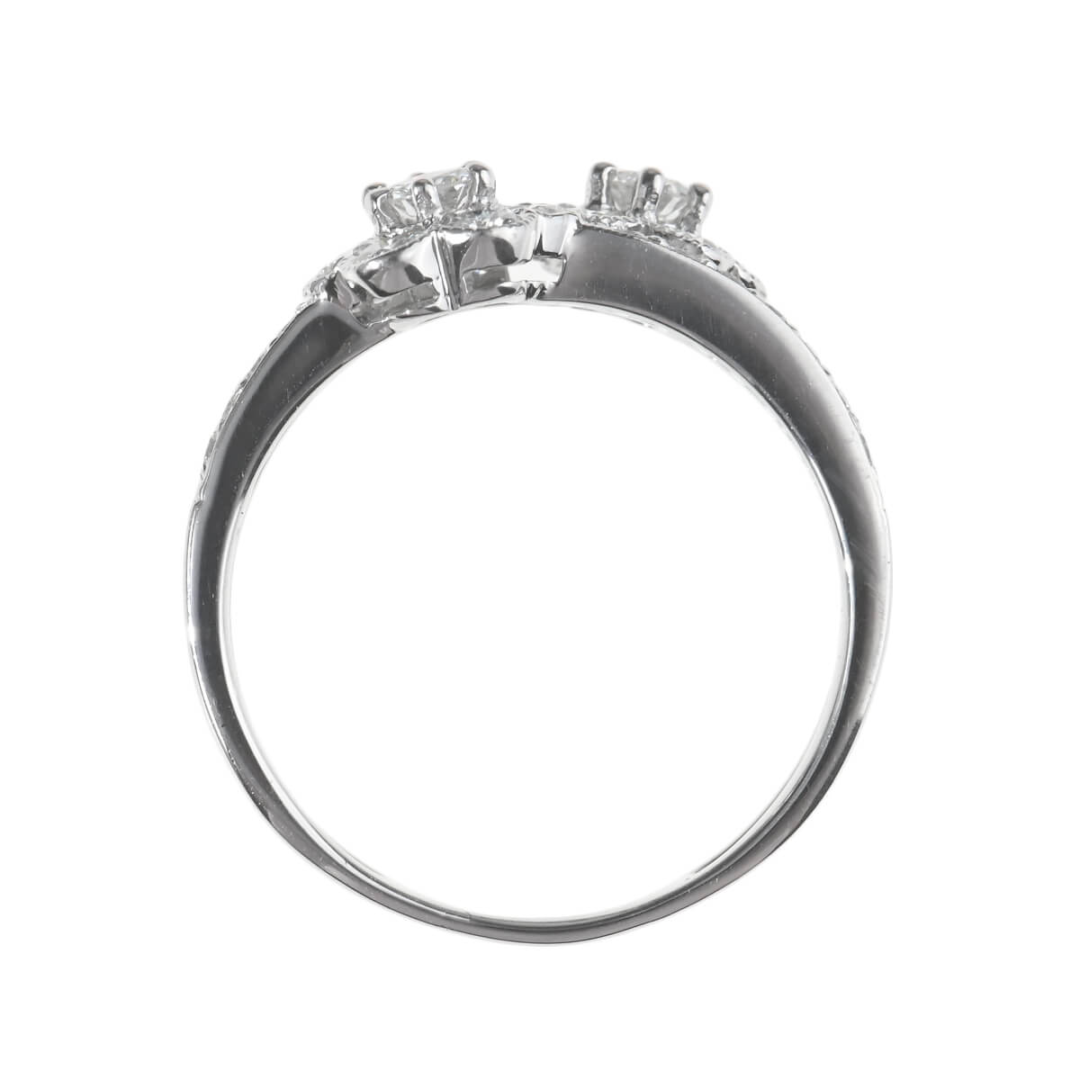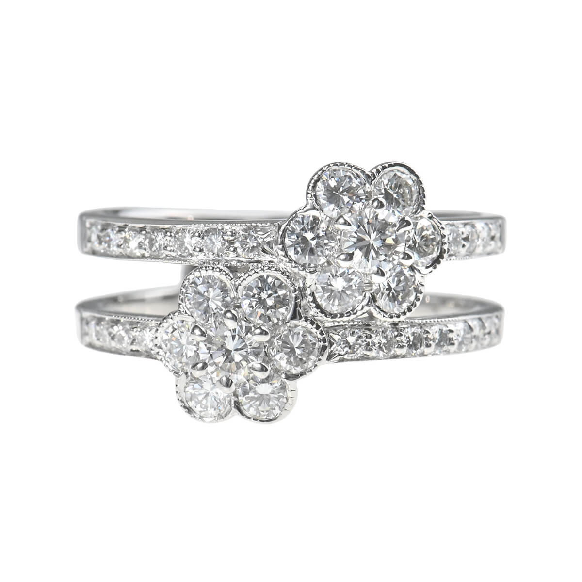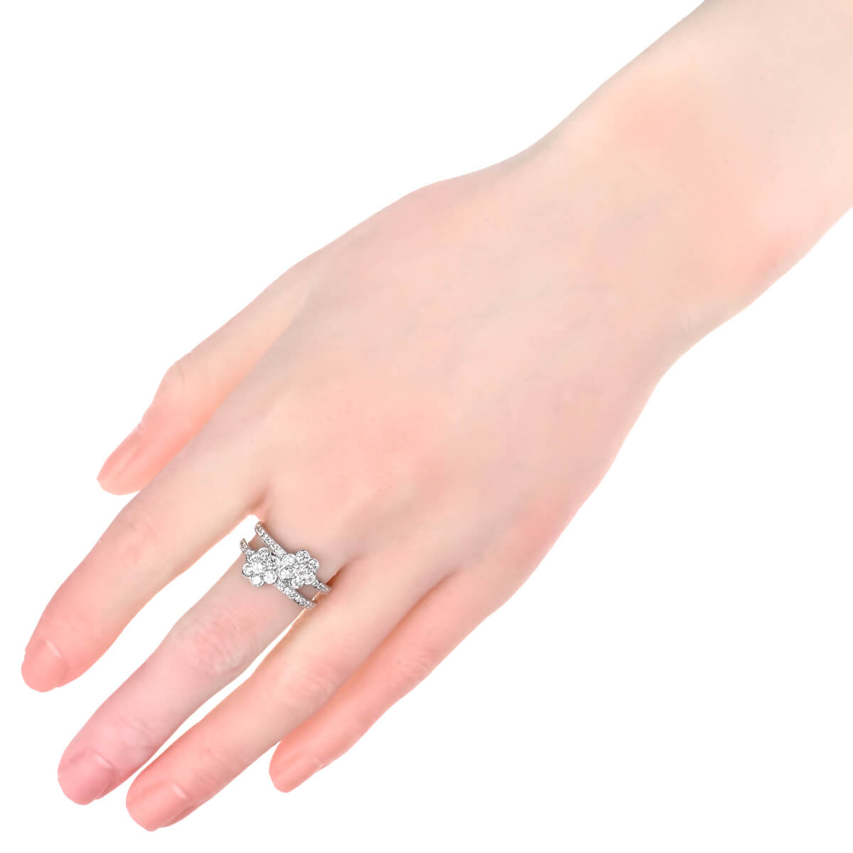イタリア、フィレンツェ最古の橋であり、建造以来橋上に金細工師の商店が並んでいた、アルノ川にかかる石造アーチの橋“ポンテヴェキオ橋”の名を冠した『PonteVecchio(ポンテヴェキオ)』は、1981年の創業以来“Romantic Luxury(ロマンティック ラグジュアリー)”をキーワードに、ジュエリーが紡ぎだすロマンティックな物語や熟練の職人技術によって表現されるラグジュアリーな価値を、遊び心あふれるファインジュエリーに昇華し続けています。2本のダイヤモンドラインに2輪の愛らしいダイヤモンドフラワーがデザインされた、ホワイトゴールド製リング。咲き誇る2輪のダイヤモンドフラワーが、指先をきらめきで彩りながら、可憐な存在感を放ちます。ポンテヴェキオらしくどんなスタイリングにも愛らしい大人の個性と遊び心を添えてくれる、上質で美しいファインジュエリーです。