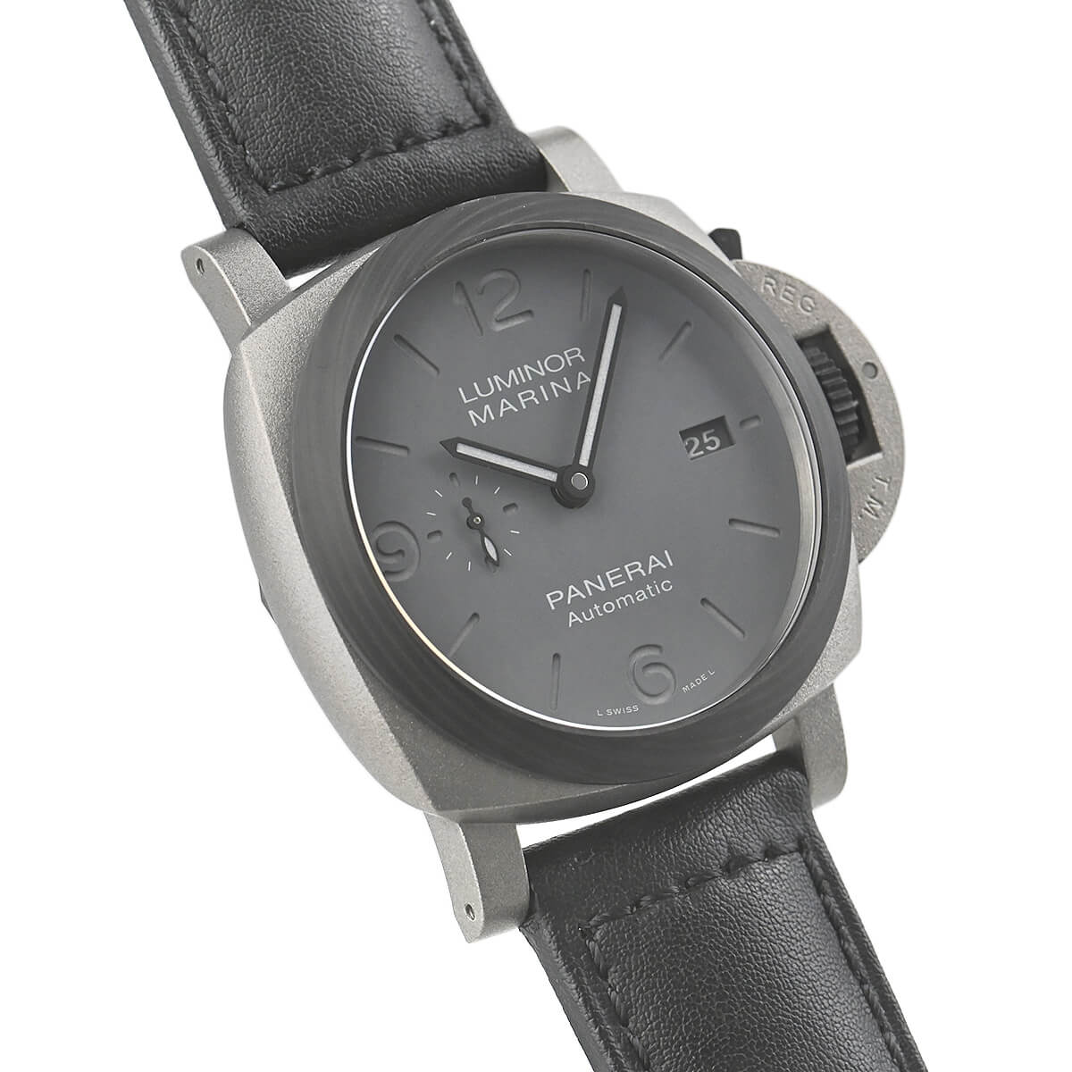 W番“2020年製”【PAM01662】ルミノール マリーナ トゥットグリージョが入荷しました。ベゼル・リューズ・レバーに用いられているカーボテックはパネライ社が開発した高度な複合素材で鈍い光を放つDMLSチタンケースにカーボテックのコントラストが目を引くデザインとなっています。