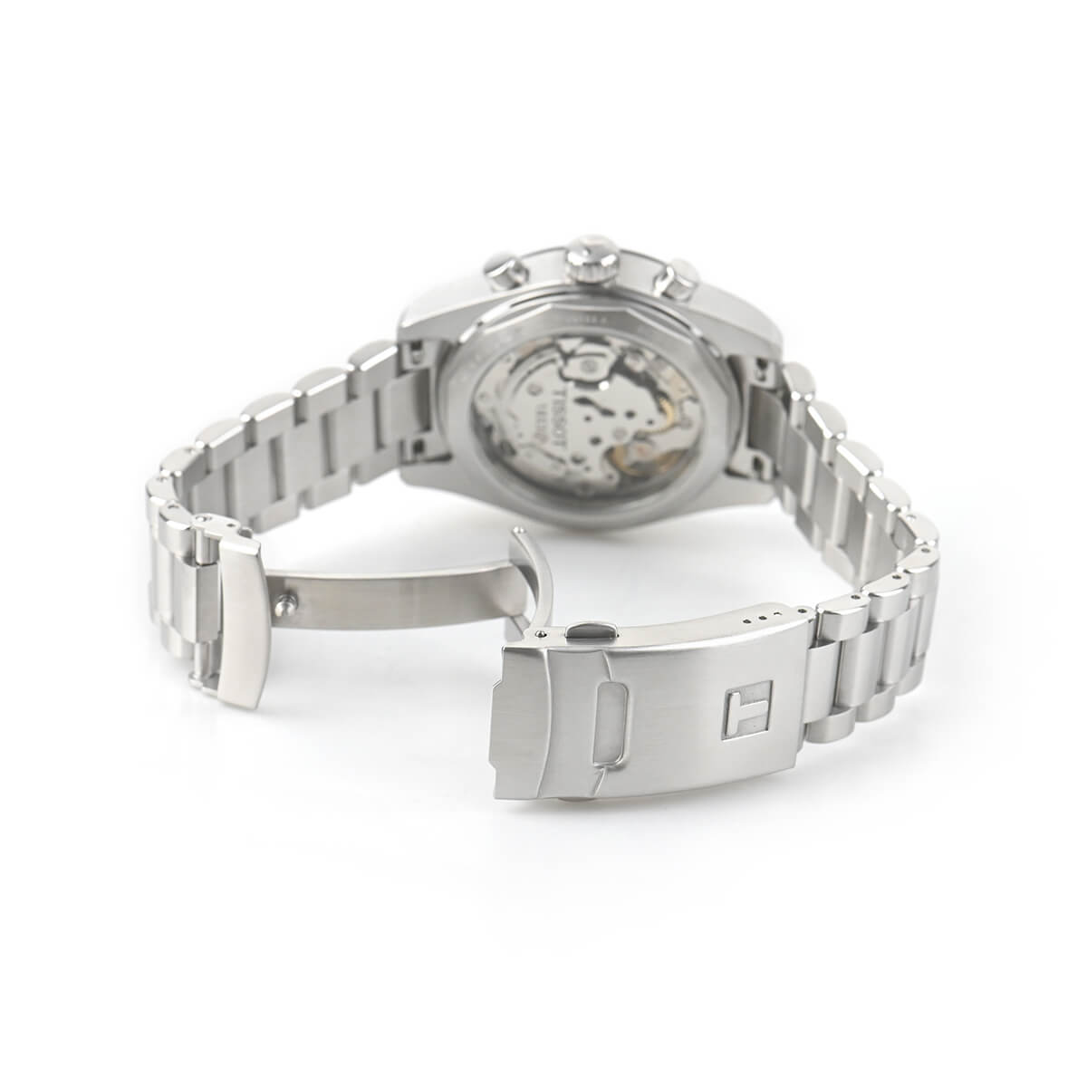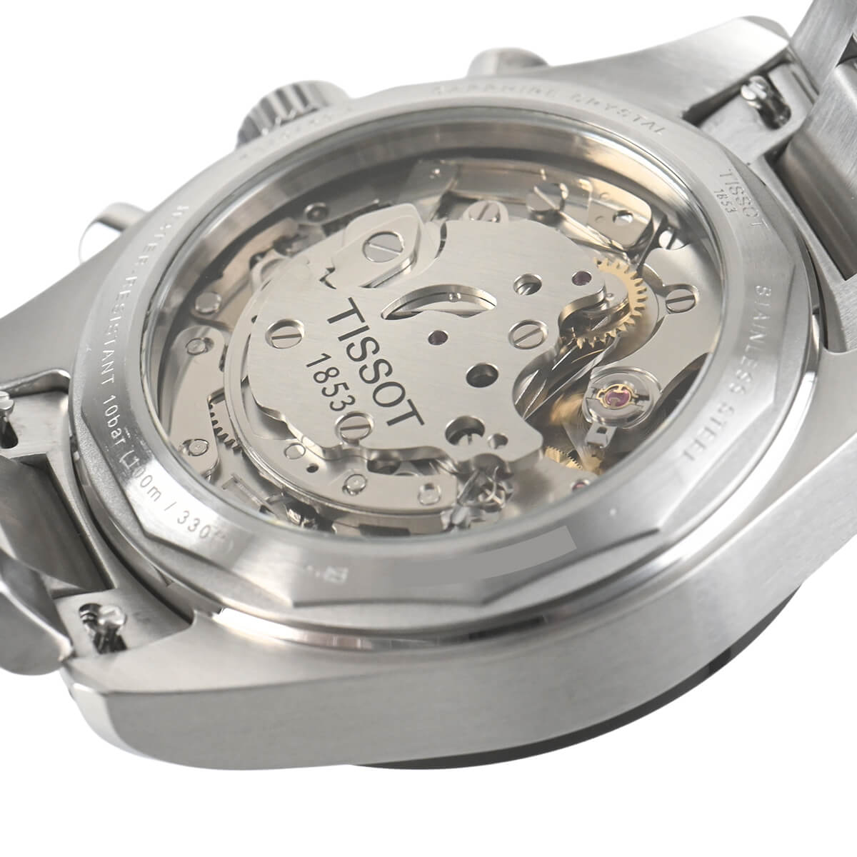 ケースはシースルーバックになっており、バルジュー7753に改良を施したムーブメントを見ることが出来ます。
