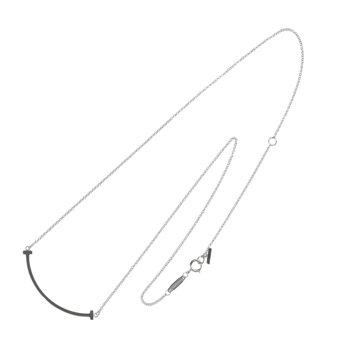 グラフィックなアングルとすっきりとクリーンなラインが溶けあって、美しい個性となっている『TIFFANY&Co.(ティファニー)』「T」。「Tスマイル」は世界で最も普遍的な幸せの象徴である笑顔と、そのジェスチャーがもたらす繋がりを表現しているコレクションです。艶やかなマテリアルで描かれた大胆でエレガントなカーブが、モダンでありながらタイムレスな美を具現化している、ホワイトゴールド製「Tスマイル」スモールネックレス。これひとつで洗練された雰囲気をまとえる、お洒落なファインジュエリーはギフトにも。ひとめ見てティファニーと分かるアイコニックさと、美しくエレガントな個性をあわせもつ、人気のコレクションジュエリーです。