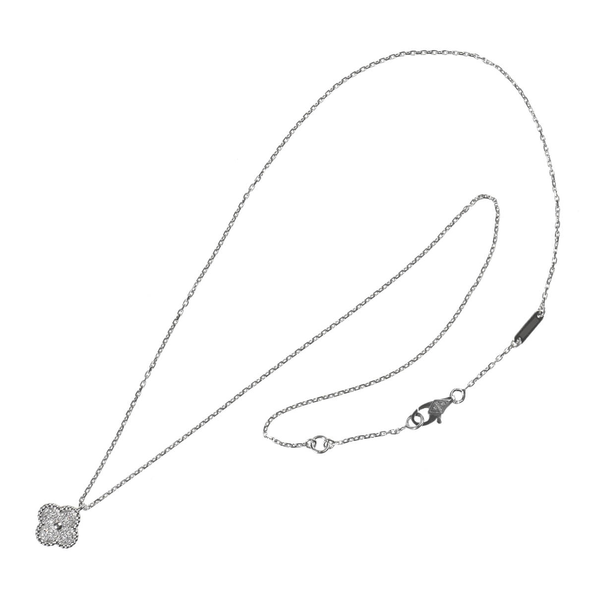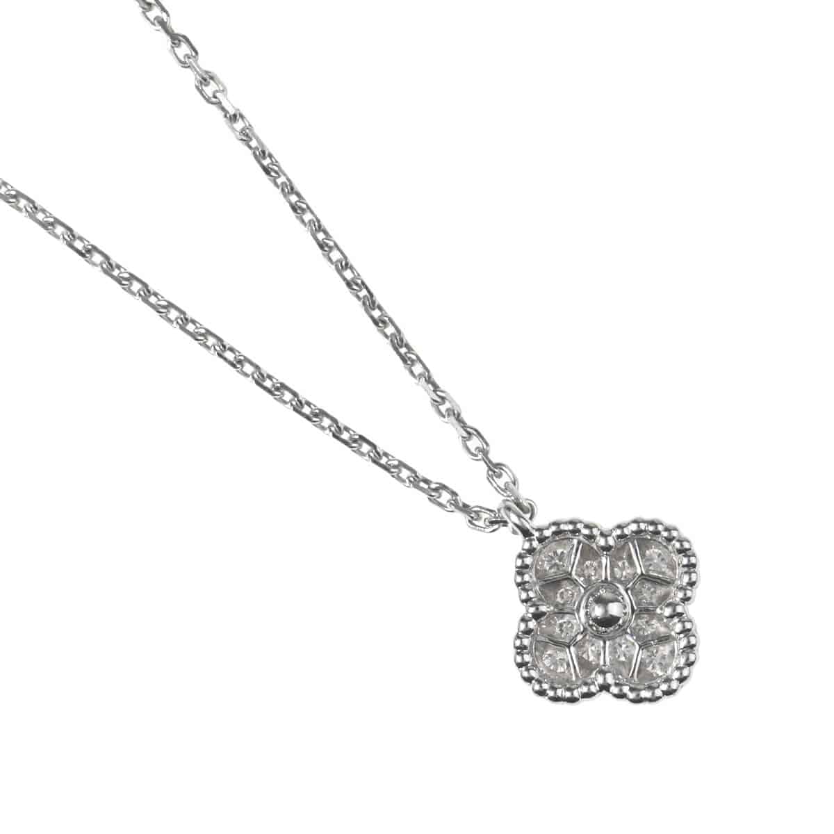 1968年に初めて誕生した幸運のシンボル「アルハンブラ」の特徴を受け継ぎ、『VanCleef&Arpels(ヴァンクリーフ&アーペル)』ならではの独創性と時を超えるエレガンスを湛える「ヴィンテージアルハンブラ」コレクション。喜びに満ちた幸運のモチーフをミニチュアサイズで表現した、「スウィート アルハンブラ」コレクションのホワイトゴールド製ペンダントネックレスです。極上のダイヤモンドがパヴェセッティングされたモチーフのどこから見ても瞬時に目を惹く輝きは、身に着けるだけで特別な気分に。可憐なホワイトゴールドビーズに縁どられた四つ葉のクローバーに着想を得た幸運のシンボルは、ミニチュアサイズながら圧倒的な存在感を放ちます。