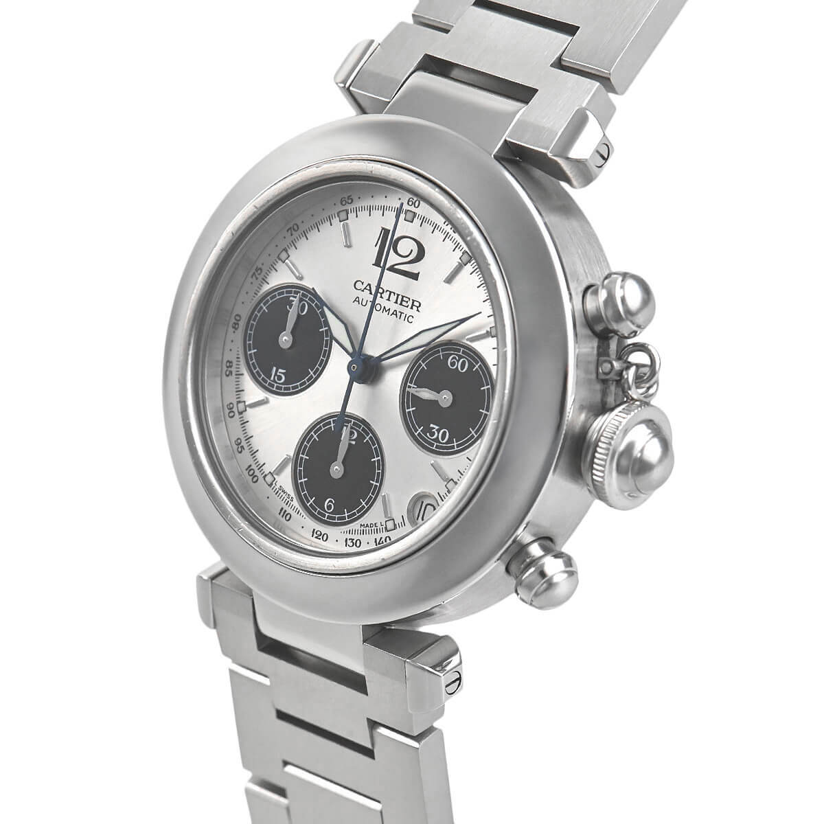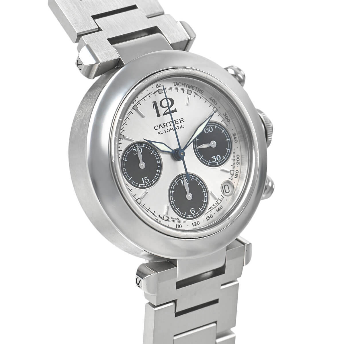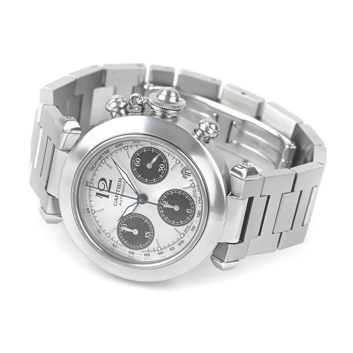 ユニセックスモデルとして特に女性からの支持が厚い「パシャC」にクロノグラフ機能を追加した「パシャCクロノ」。数あるパシャシリーズの中でも特にスポーティーな雰囲気を持つモデルです。