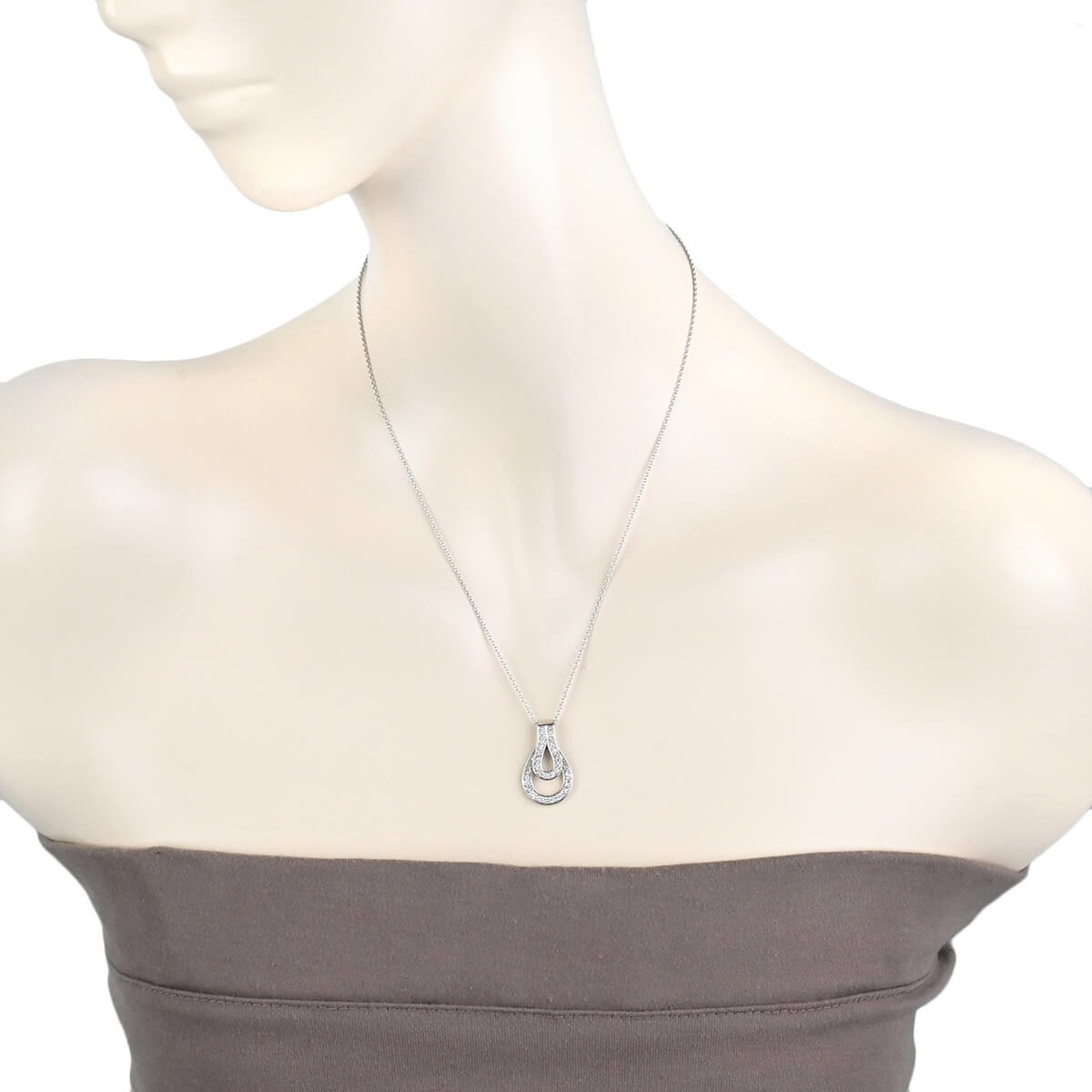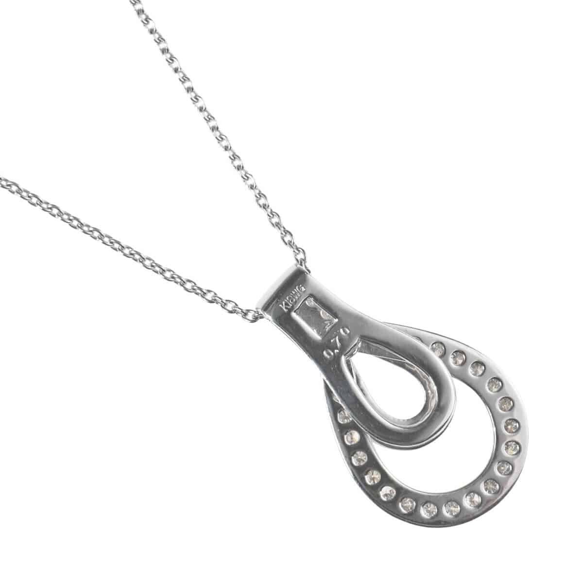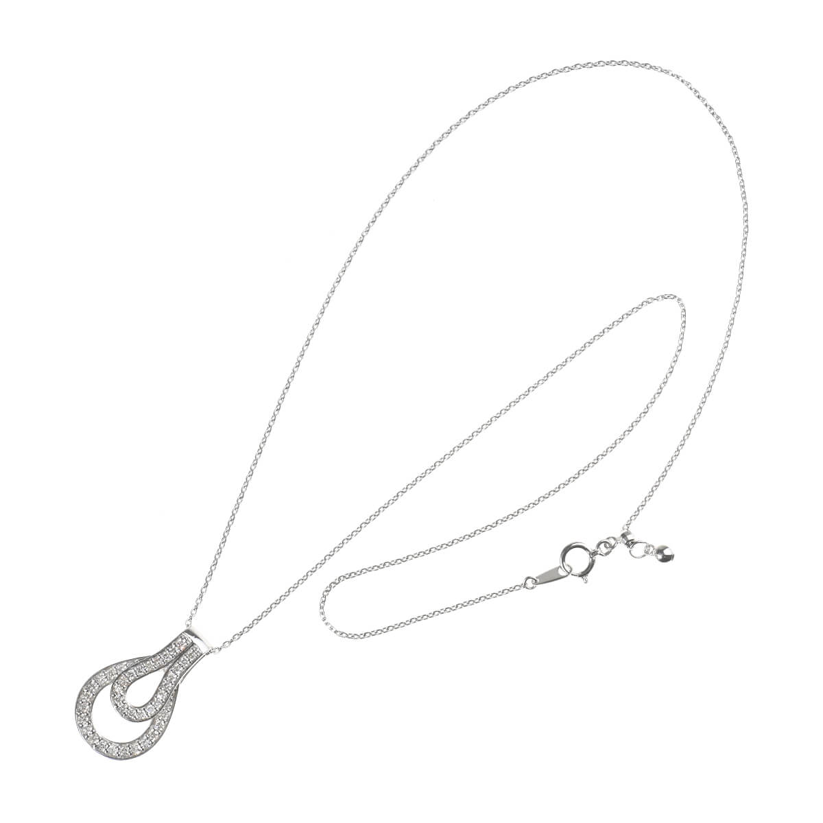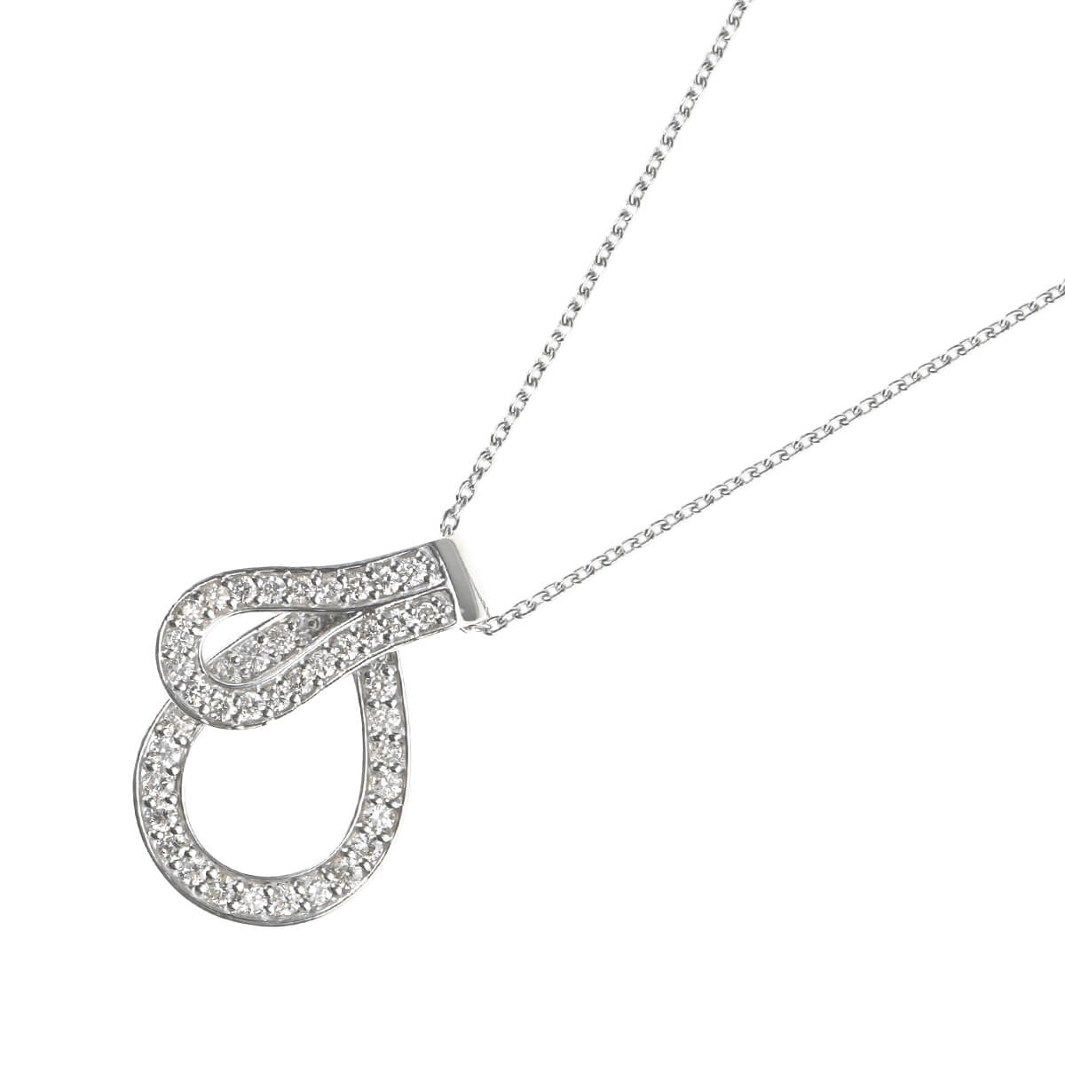 トータル0.70ctものダイヤモンドで描かれたオープンワークのモチーフが重なり合って揺れるホワイトゴールド製ペンダント。しっかりと存在を感じられながらも、繊細でエレガントにスタイリングを飾ります。ギミックの効いた大人の遊び心を感じさせる、洗練されたセンスの光るダイヤモンドジュエリーです。