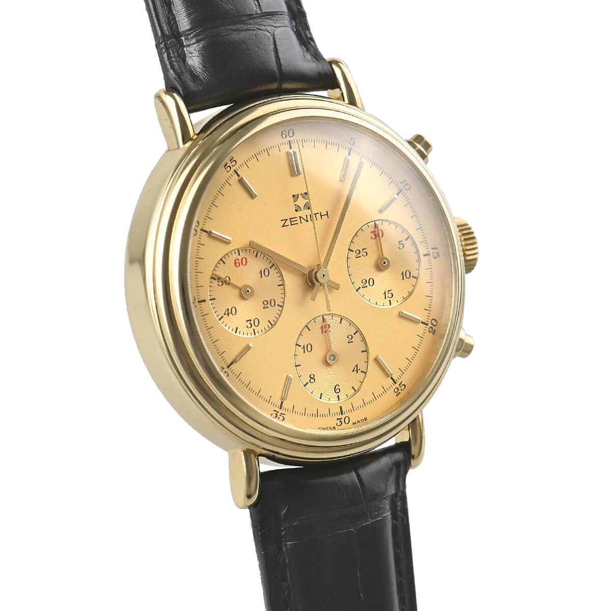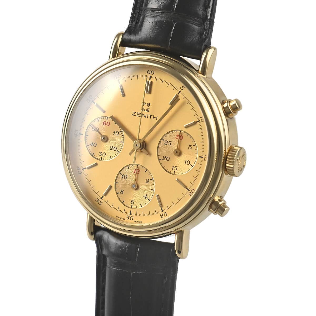 ゼニスの手巻き式クロノグラフ「Ref.30.0140.203」。ムーブメントは、ユニバーサルジュネーブ社のCal.285をベースとしたCal.146HPを搭載しています。