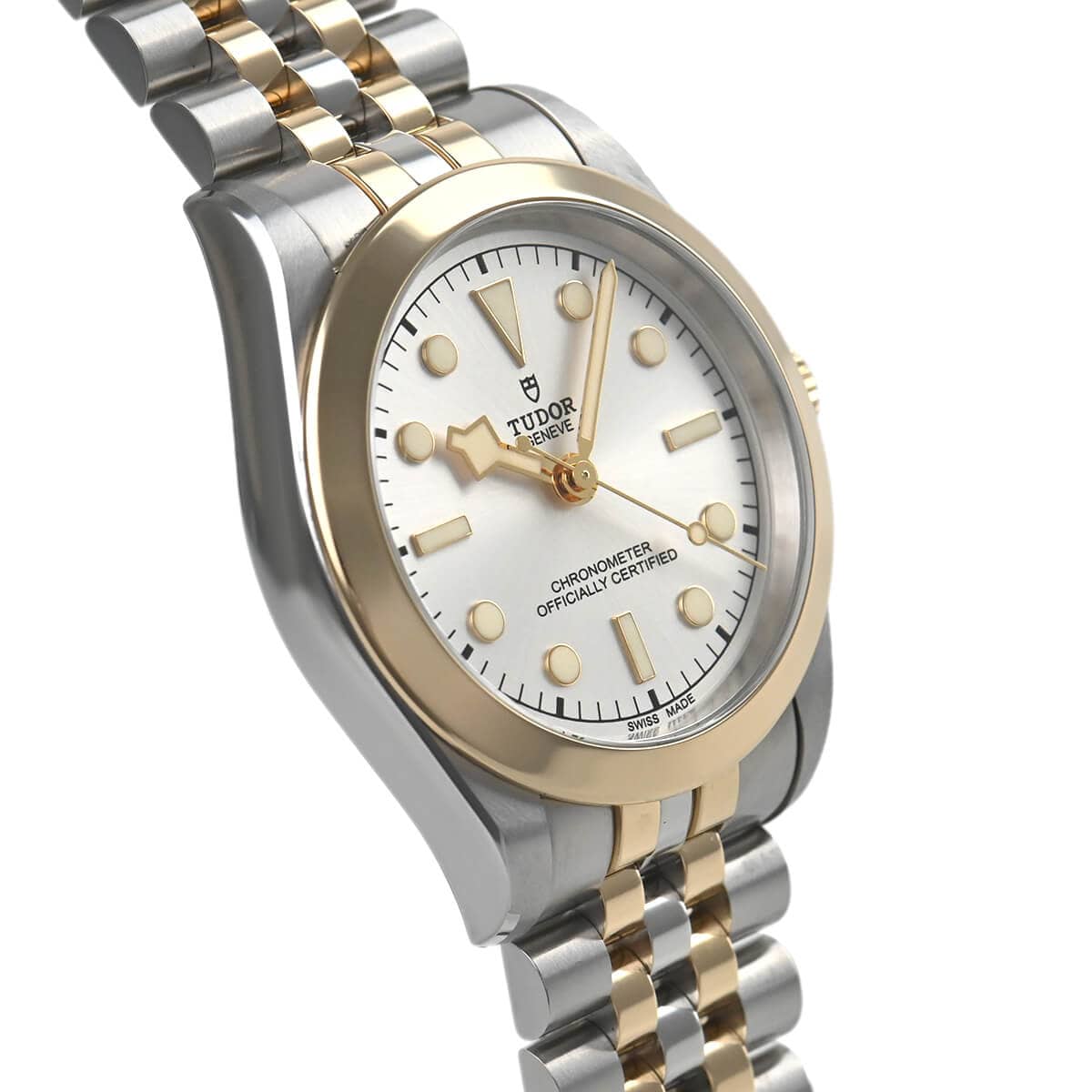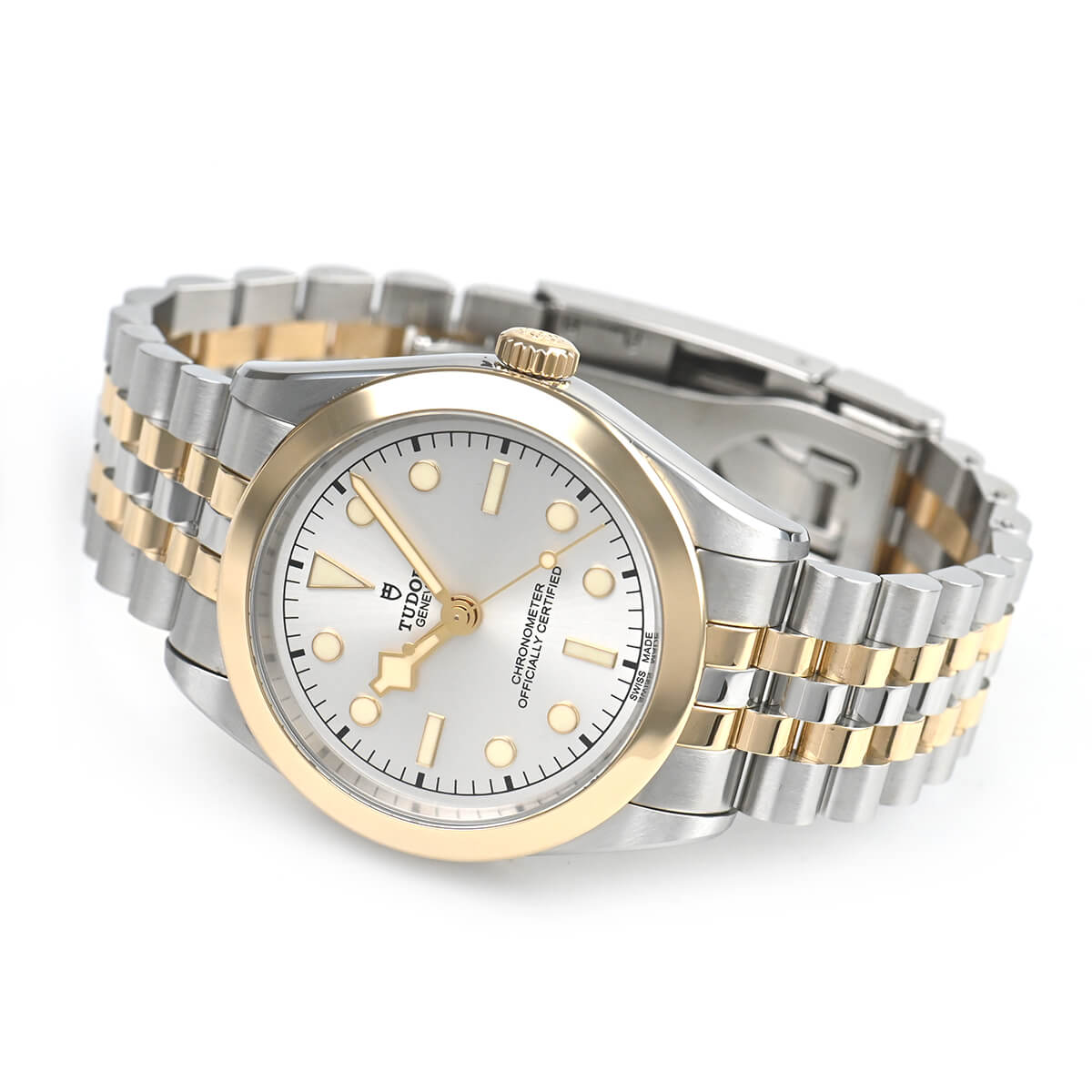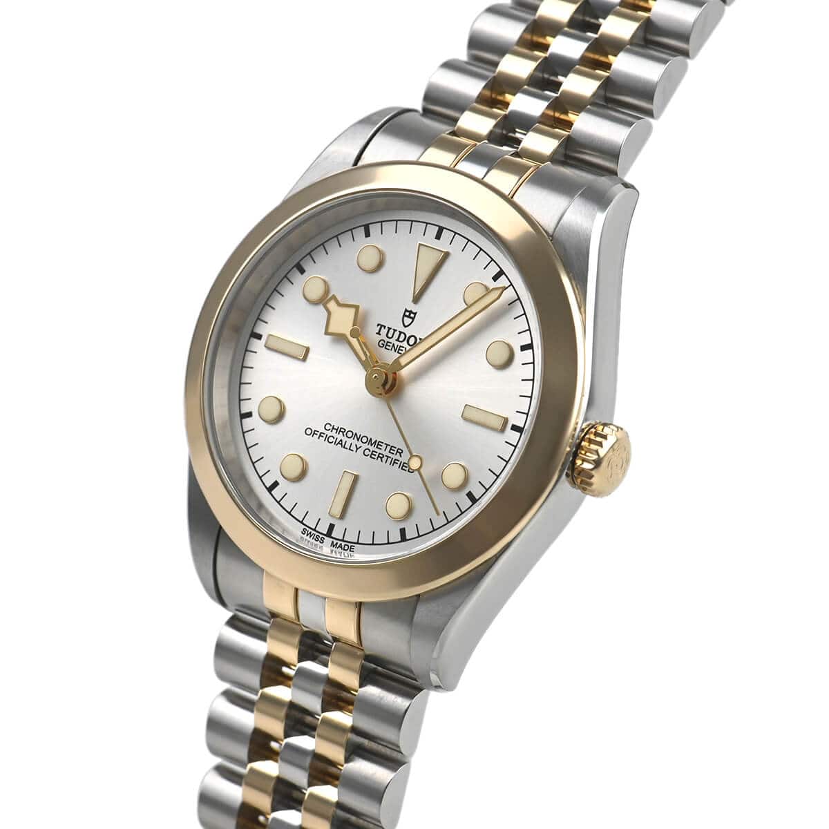回転ベゼルがなくなったことで強調されるリューズには、現行モデルの盾マークではなくチューダーローズがエングレービングされており、防水性能は100m確保されていますので日常使いしやすいモデルです。