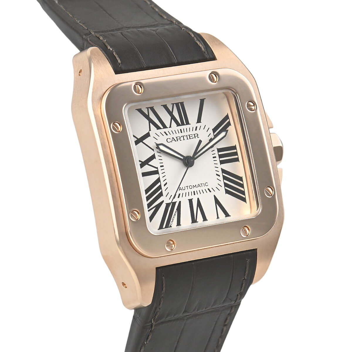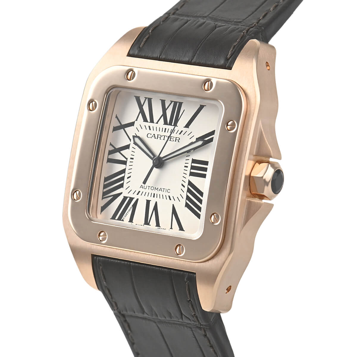 100年という永きに渡り歴史を刻んできたサントスシリーズ。航空機の機体のようにビスをベゼルに使い、タフなデザインと美しさを兼ね備えております。