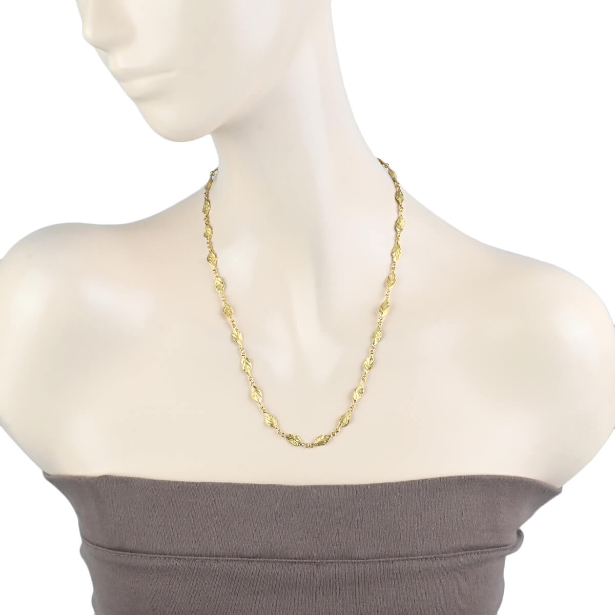 日本伝統の技を駆使し、超絶技巧を極めた色鮮やかなジュエリーをつくり出す、『岩倉 康二(イワクラ コウジ)』。美術館にも認められるアート作品としてのジュエリーデザインをつくり上げてきた、日本が世界に誇るジュエリーデザイナーのひとりです。繊細に、大胆につくりこまれたリーフがぐるりと連なる、イエローゴールド製ネックレス。デザイナーズジュエリーらしい彫金の技術を生かしたマテリアルの質感や芸術的フォルムが美しいネックレスが、スタイリングを彩ります。独創性あふれるデザインと暖かみのあるフォルムが印象的な、洗練された個性を楽しめるゴールドジュエリーです。