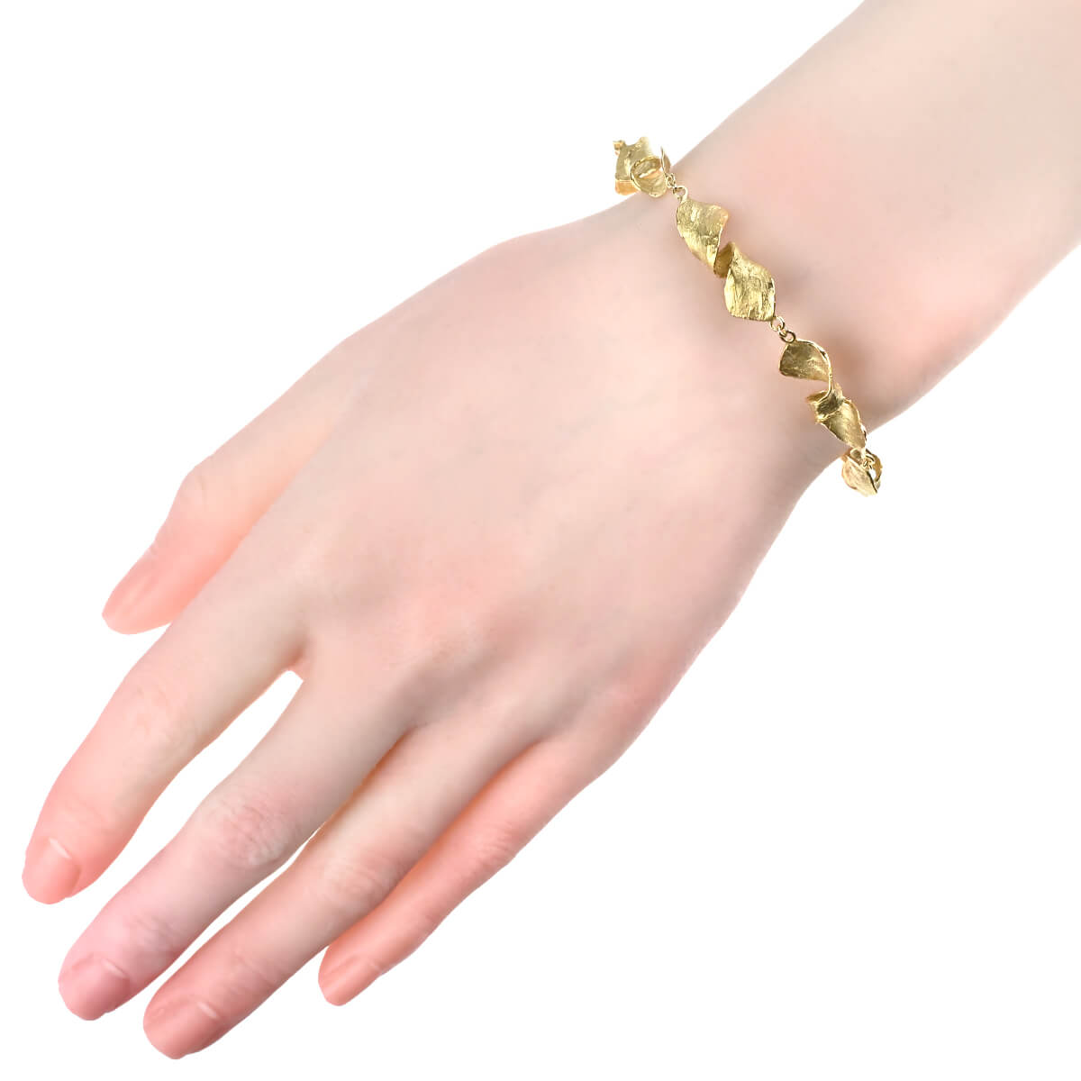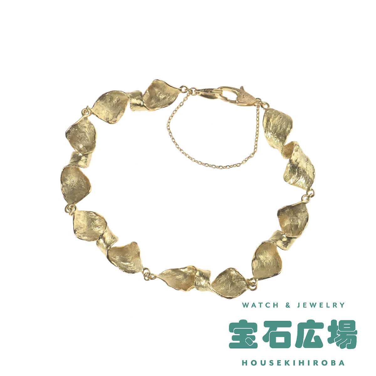 日本伝統の技を駆使し、超絶技巧を極めた色鮮やかなジュエリーをつくり出す、『岩倉 康二(イワクラ コウジ)』。美術館にも認められるアート作品としてのジュエリーデザインをつくり上げてきた、日本が世界に誇るジュエリーデザイナーのひとりです。繊細に、大胆につくりこまれたリーフがぐるりと連なる、イエローゴールド製ブレスレット。デザイナーズジュエリーらしい彫金の技術を生かしたマテリアルの質感や芸術的フォルムが美しいブレスレットが、スタイリングを彩ります。独創性あふれるデザインと暖かみのあるフォルムが印象的な、洗練された個性を楽しめるゴールドジュエリーです。