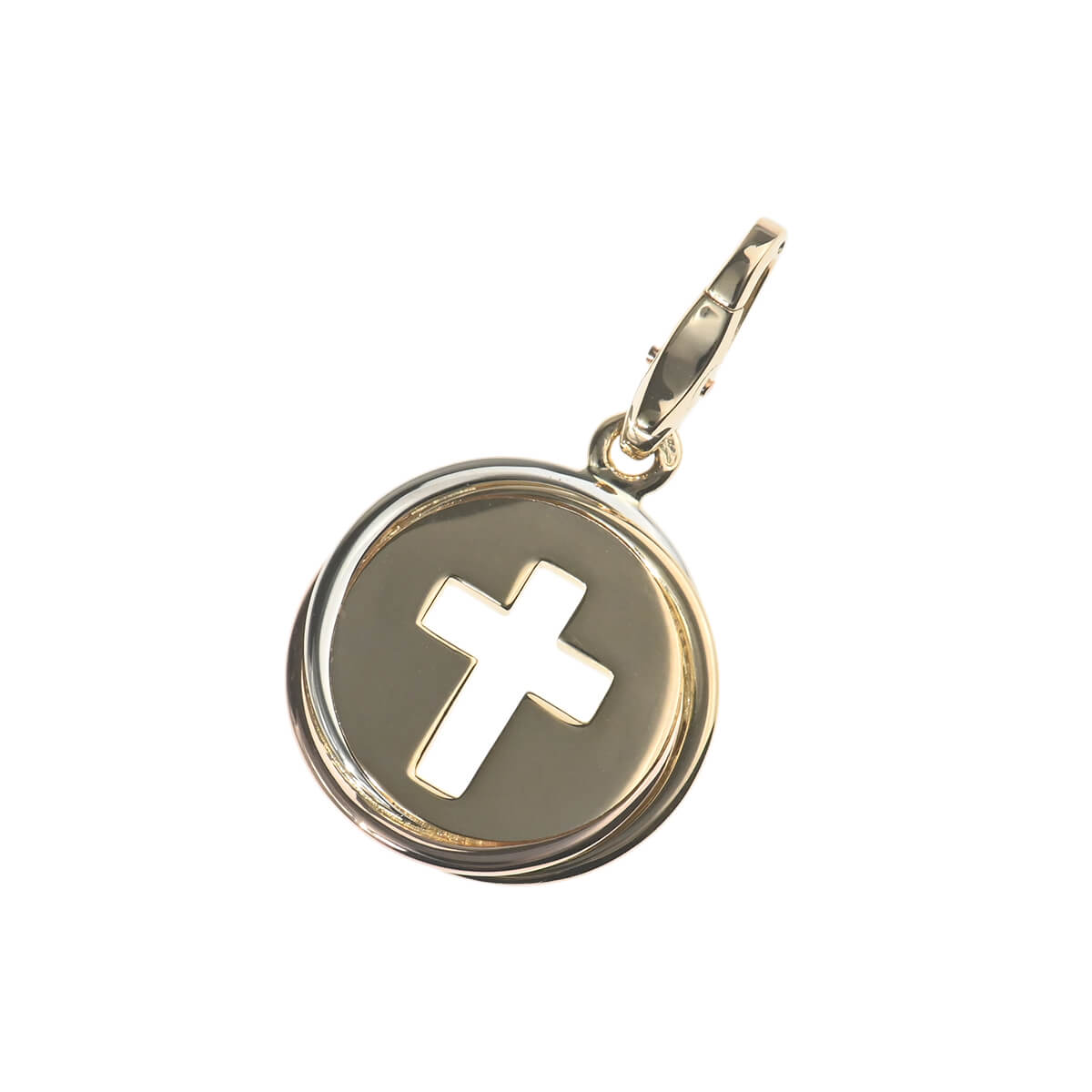 ジュエリーと彫刻、マスキュリンとフェミニン、装飾品とシンボルの境界を曖昧にしたいという、ルイ・カルティエの遊び心あふれる想像力によって1924年に生まれ、愛され続けている「TRINITY(トリニティ)」。ピンク、 イエロー、ホワイトのスリーカラーゴールドのリングが互いに絡み合うカルティエのアイコンジュエリーです。トリニティで囲んだゴールドのラウンドメダルにシャープなクロスモチーフをくり抜いた、イエローゴールド製ペンダントヘッド。長めのチェーンでデイリーに、首に沿うチョーカーでエレガントに、レザーやコットンのコードでカジュアルダウンしたり、さらにはブレスレットにつけたりもできるコーディネートの幅の広いチャームで自分らしいルックを楽しんで。クラシックなモデルでありながらモダンなデザインのメダルペンダントは、いつまでも飽きのこない、由緒ある伝統を感じさせるデザインです。