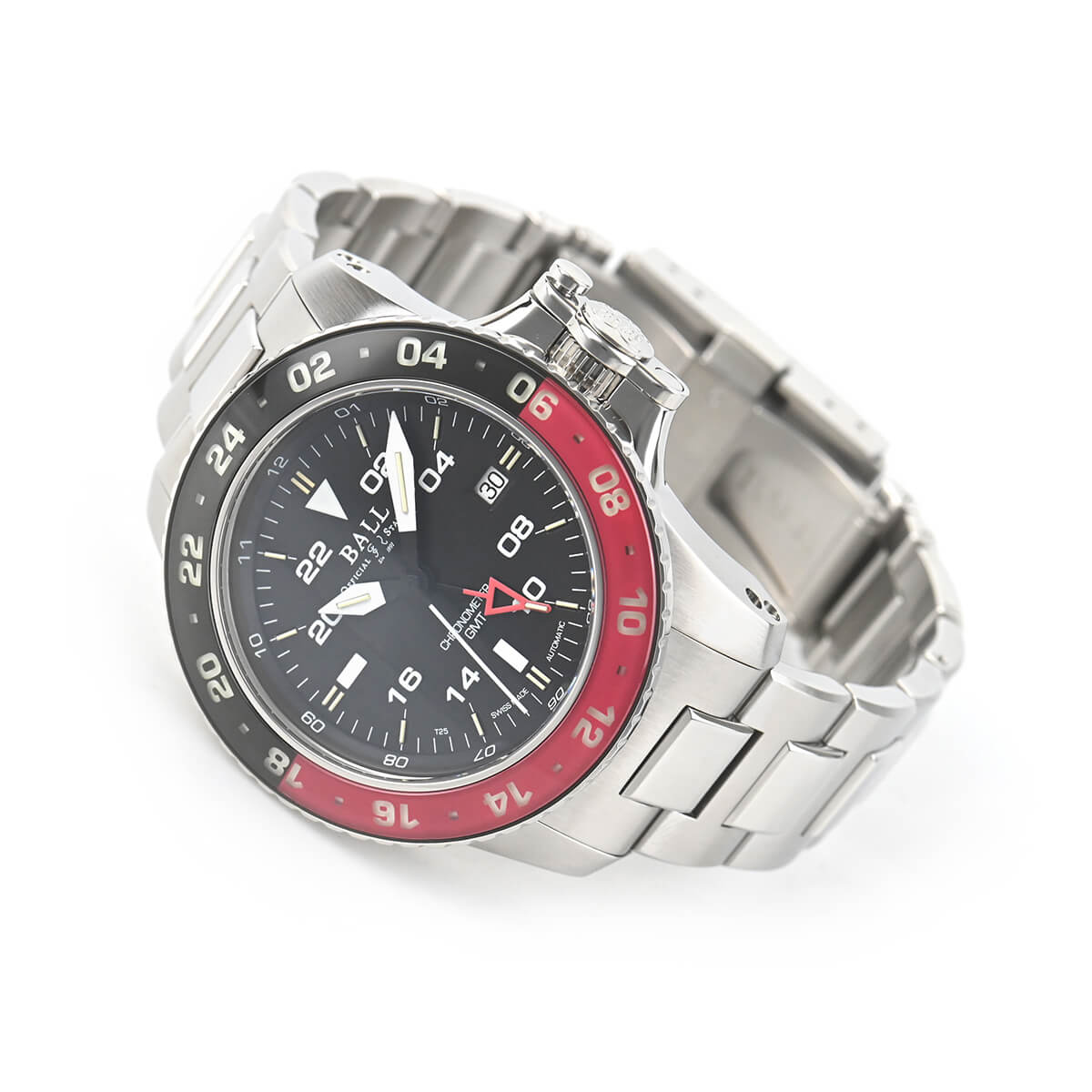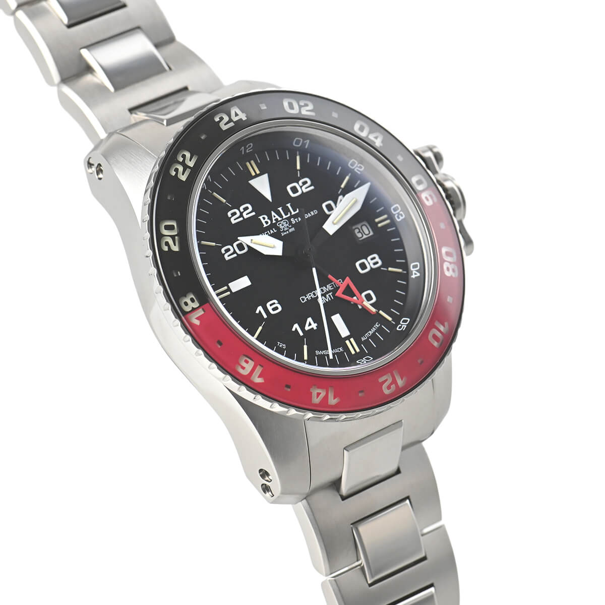 「エンジニア・ハイドロカーボン」は、ボールウォッチが持つ独自のテクノロジーを搭載したハイエンドクラスのコレクションで、耐衝撃性、耐磁性、防水性、視認性に優れ、企業理念でもある「タフ&ディペンダブル」を具現化したシリーズです。こちらの【エアロGMT II】は、文字盤中央から伸びるGMT針で第2時間帯、さらに24時間GMTベゼルを動かすことで第3時間帯も常時表示可能なGMTウォッチです。