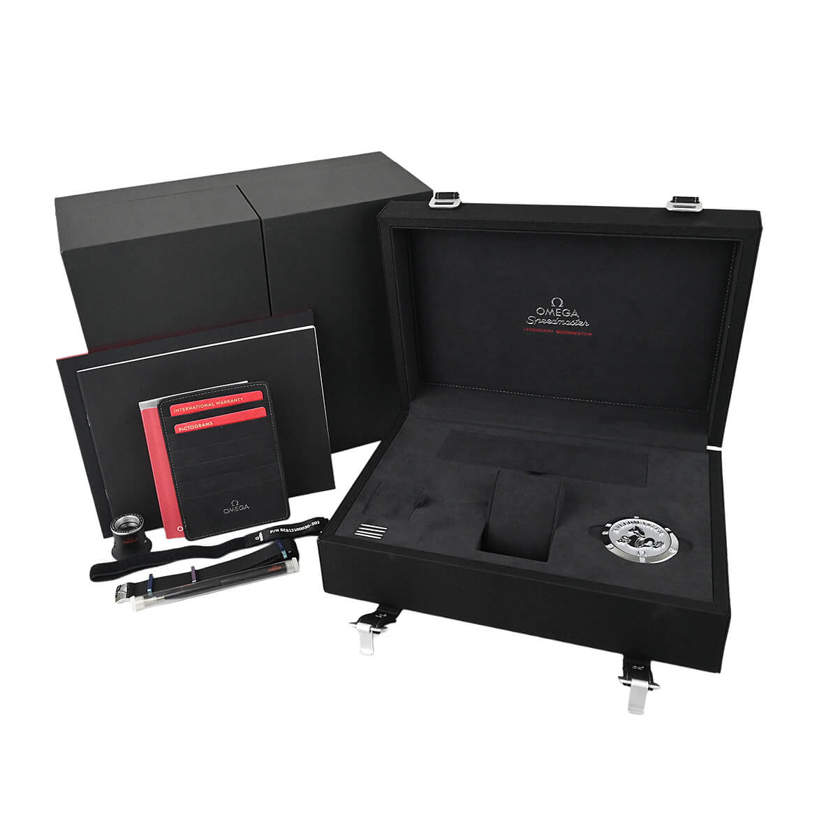 ボックスの中には・NATOストラップ・ベルクロストラップ・ブレスレット交換ツール・スピードマスターブックレットが付属しており、雰囲気を変えて楽しめます。