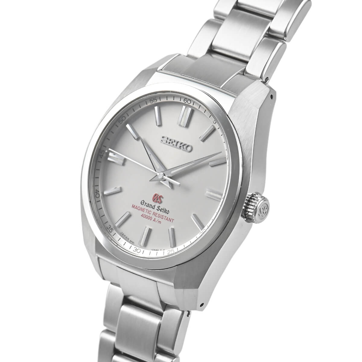 グランドセイコーの耐磁モデル「SBGX091」。純鉄製の耐磁板を採用し、従来品に比べて約8倍となる4万A/mもの耐磁性能を実現。