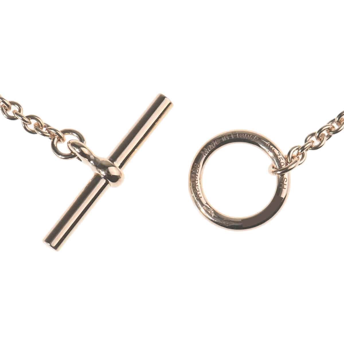 高い技術を必要とするクラフツマンシップとエレガントでモダンなデザイン、自由なムードや軽やかさの象徴として他と一線を画す存在感をもち、既存のアプローチにとらわれることなくクリエイティブなエッセンスが施された『HERMES(エルメス)』のジュエリー。ジュエリーメティエ(部門)のクリエイティブ・ディレクター、ピエール・アルディがメゾンの伝統的なモチーフに再解釈を加え、豊かなクリエイティビティを宿した「シェーヌ・ダンクル・ミニパンク」のピンクゴールド製ブレスレットです。シンプルなフォルムであり、物と物をつなぎ合わせたり、閉じると実用的である“安全ピン”を、メゾンで一番意味やセンスを持つオブジェである“シェーヌ・ダンクル”と融合させたモチーフが際立つデザインはユニセックスに。既存のジュエリーの枠にとらわれない大胆なフォルムと洗練された存在感で身につける人の内面を照らすブレスレットは、エルメスらしくまさに“騎士精神のジュエリー”です。