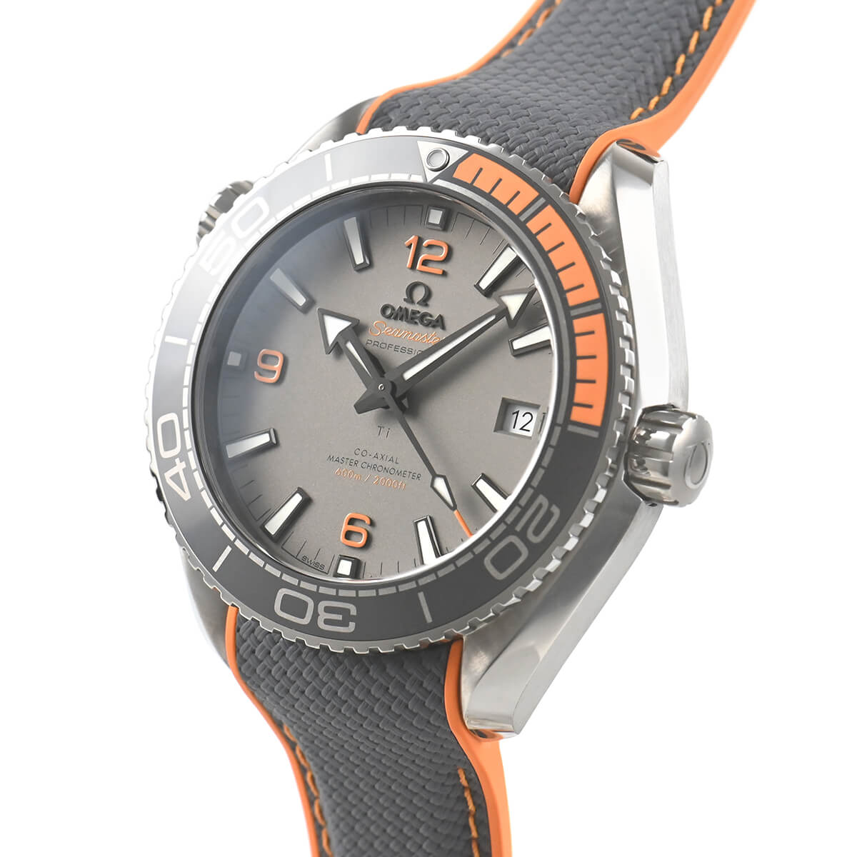 「シーマスター プラネットオーシャン マスタークロノメーター」。プロフェッショナルダイバーウォッチとして600Mの防水性能はそのままに、新たに文字盤にはサンドブラスト仕上げのグレード5のチタンを採用。