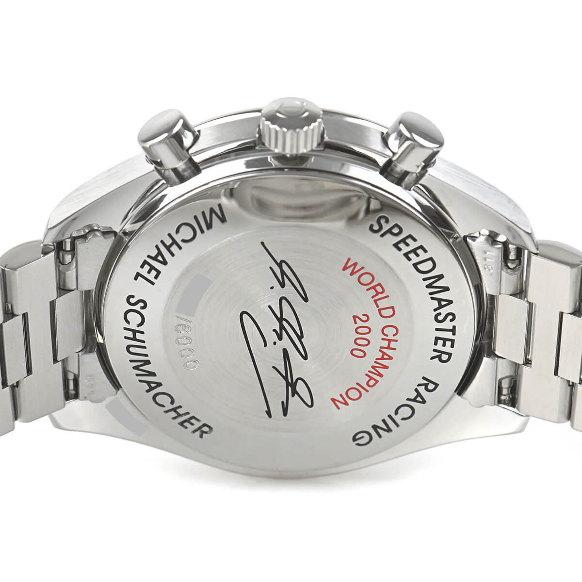 裏蓋にはシューマッハのサインが刻印され、スペシャルモデルであることをアピール。