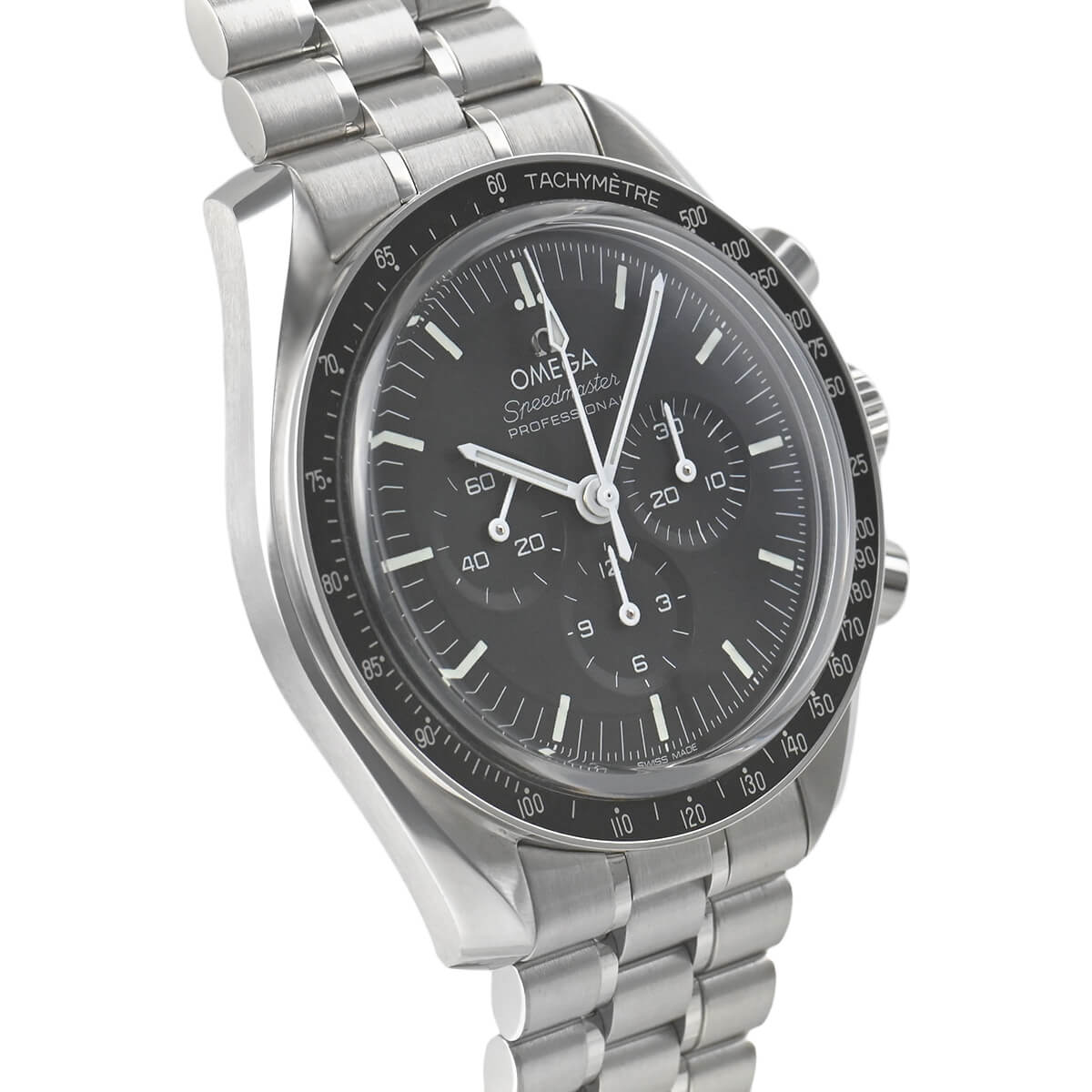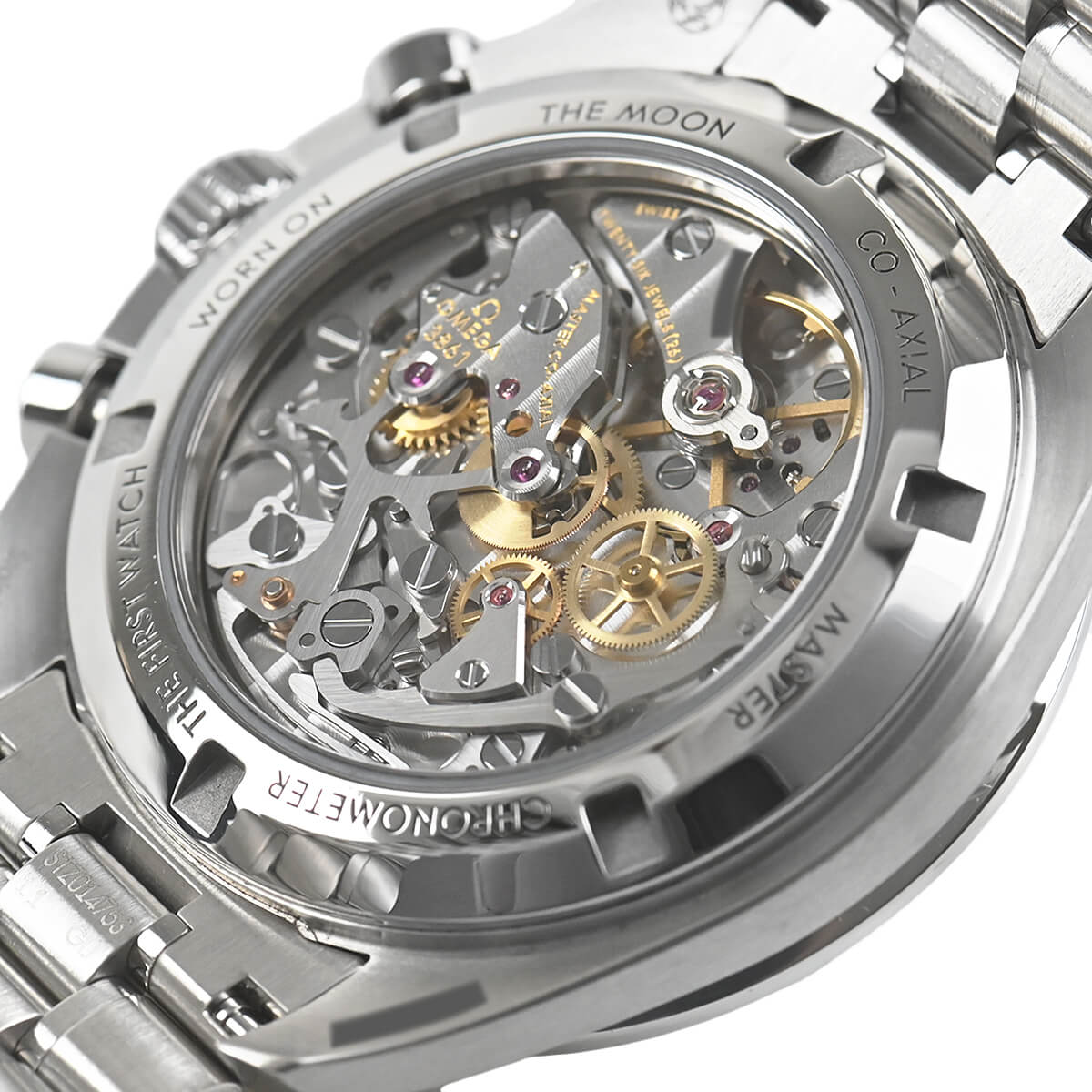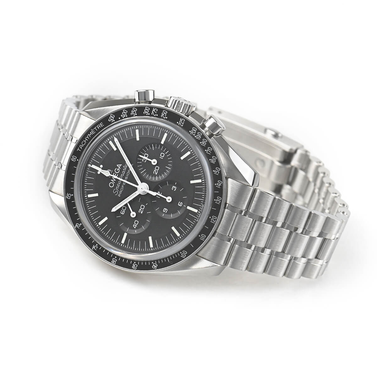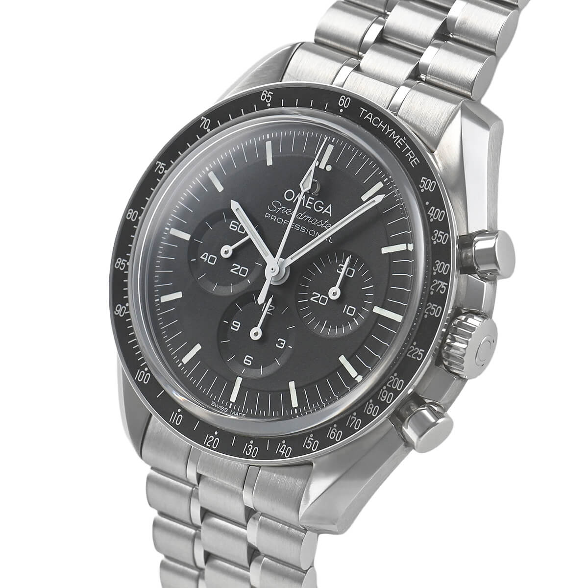 6度に渡る月面着陸プロジェクトの全てに提携された、伝説のクロノグラフ「スピードマスター プロフェッショナル」。陽極酸化処理が施されたアルミニウム製ベゼルリングには、実際に月面で着用された4thモデルのリングデザインに倣い「ドットオーバー90」のデザインが採用されています。