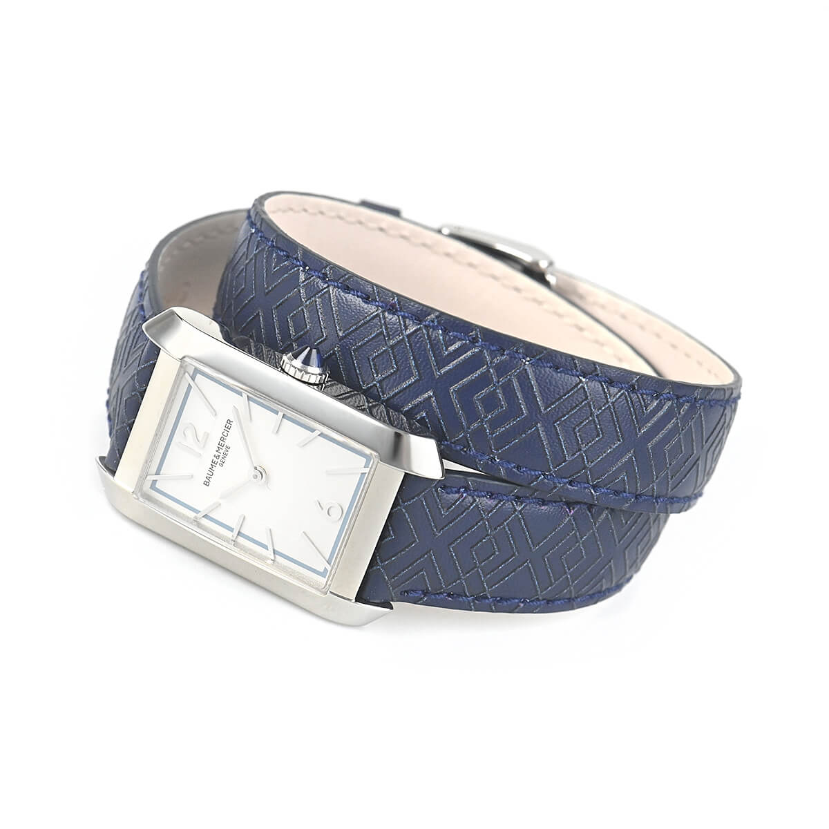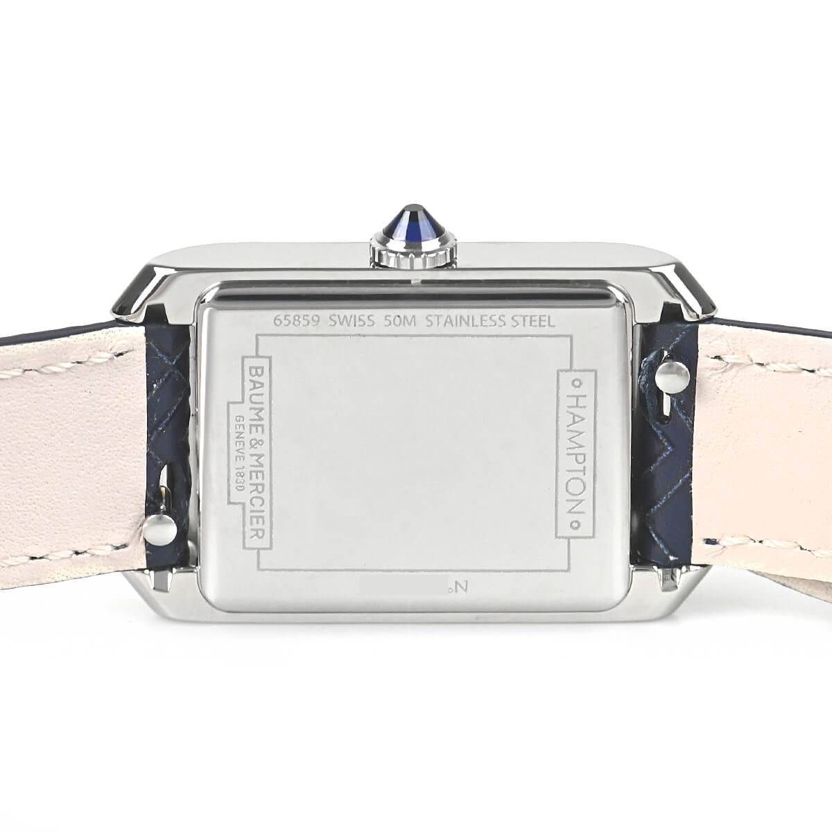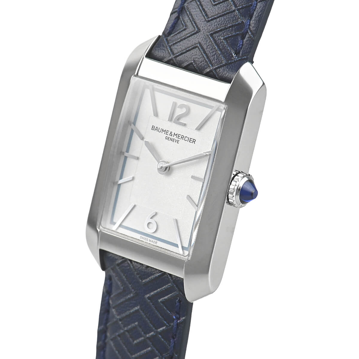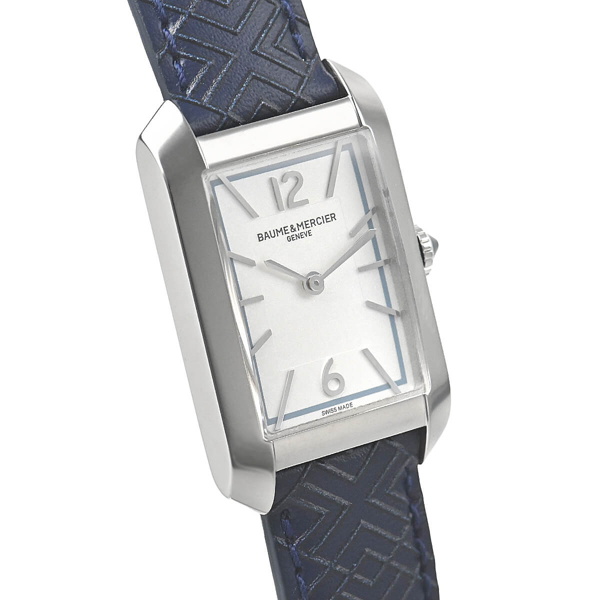 名門ボーム&メルシエのレクタンギュラーライン「ハンプトン」は、アールデコ時代からインスピレーションを得たモデルです。こちらはアップライトのダイヤルが目を惹くレディースモデル。