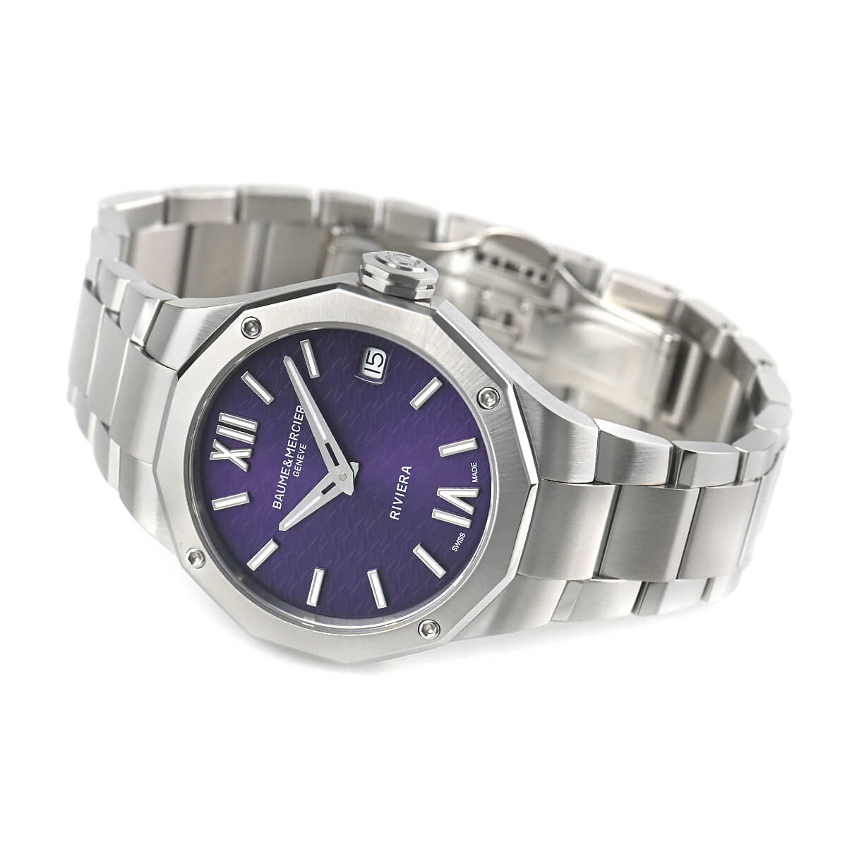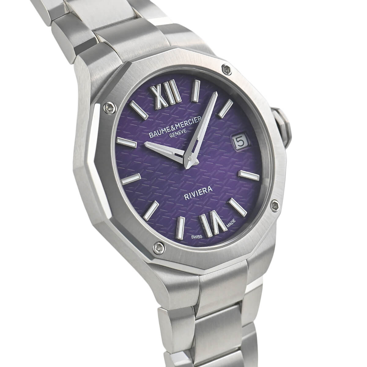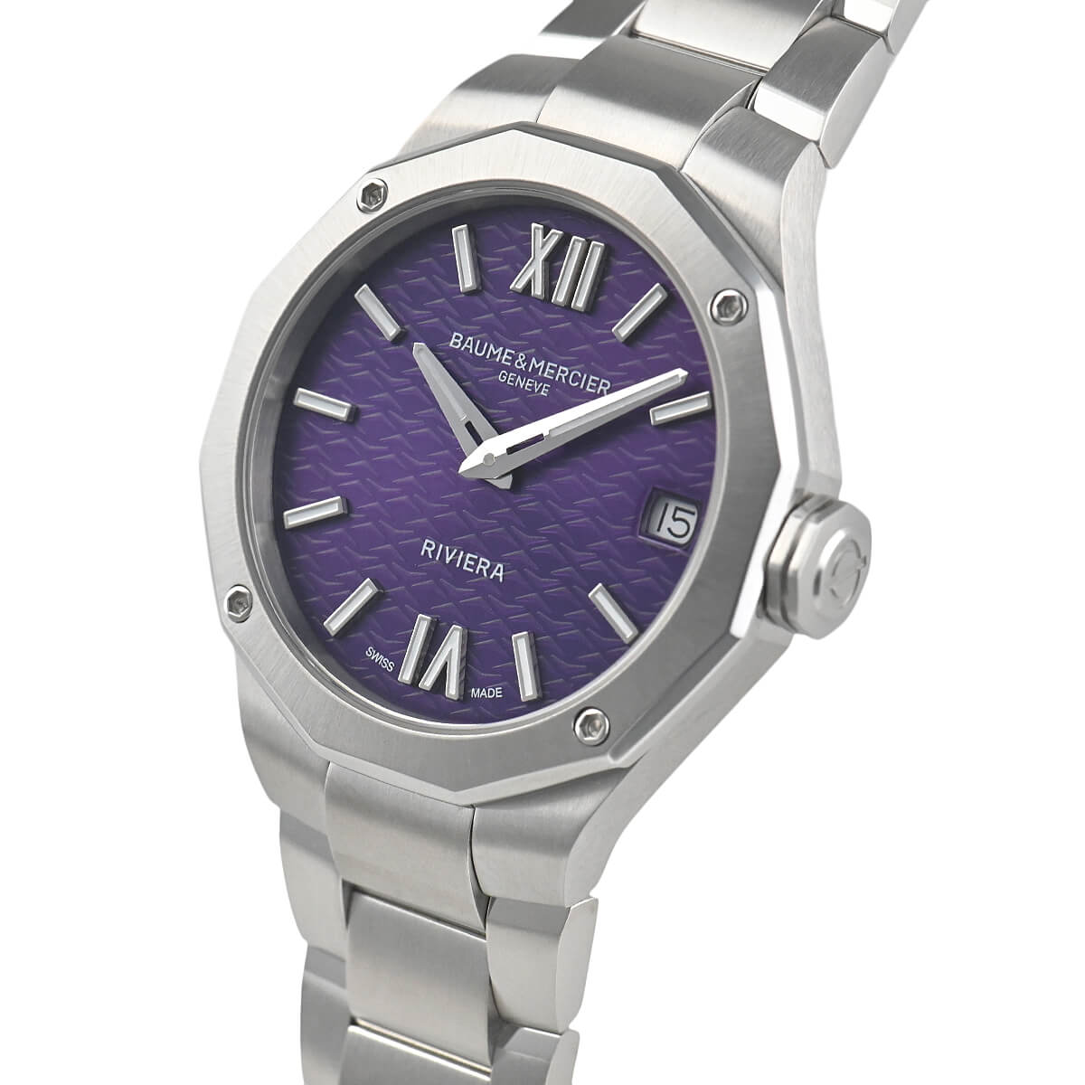 1970年代に誕生した「リビエラ」。こちらは、33mm径のレディースモデルで、美しいパープルの文字盤が特徴です。