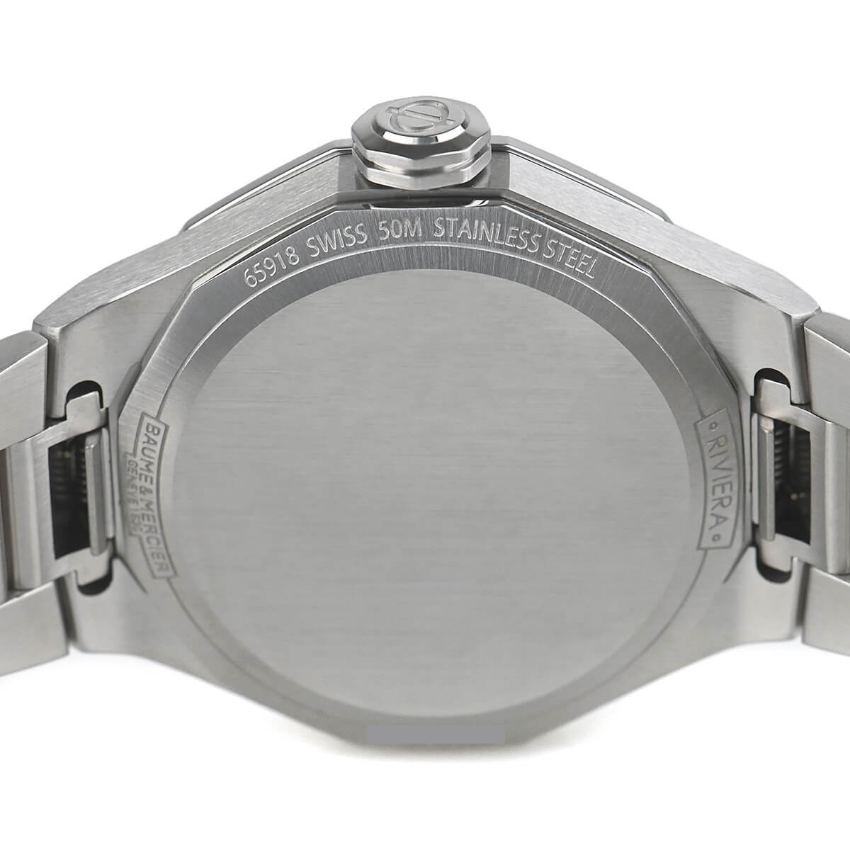 12角形のビス付きベゼルや、ケース一体型のラグといったリビエラならではのデザインが印象的です。