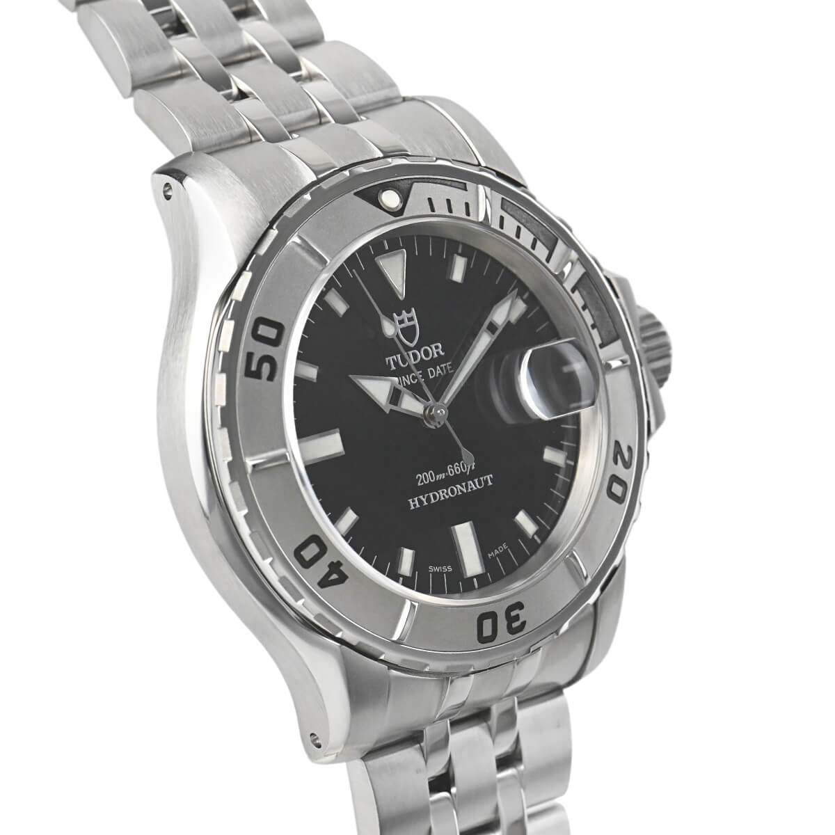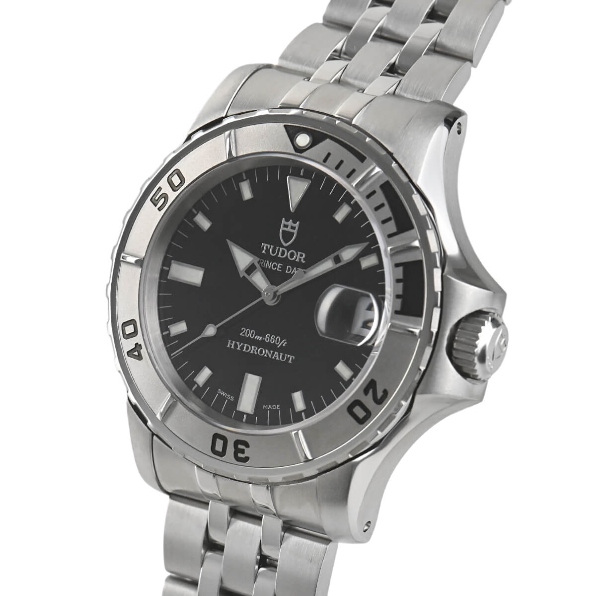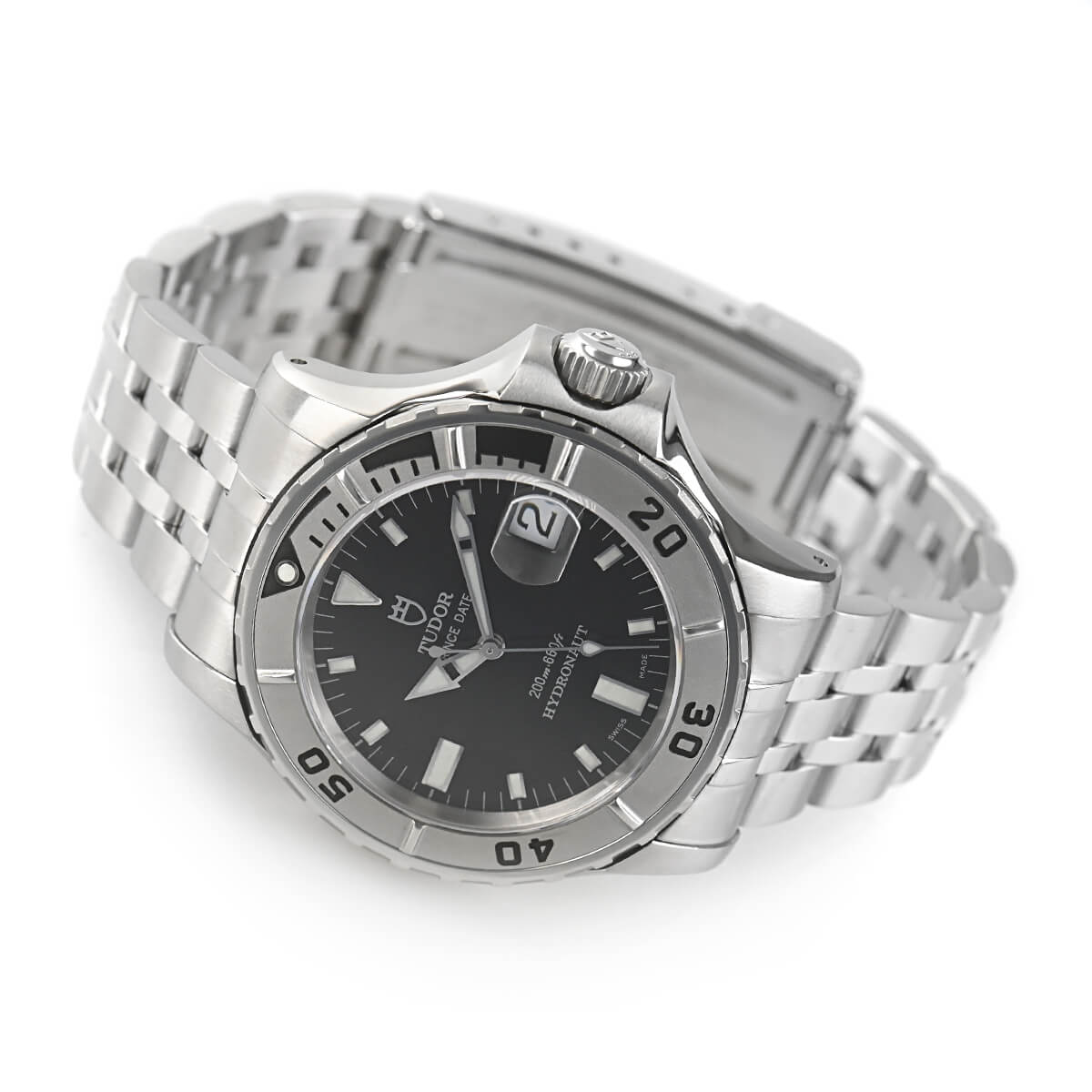 2000年前後のチューダーのデザインの特徴が色濃く出ている「ハイドロノート」。サブマリーナーと比較すると防水性能は100mほど劣りますが、日常生活ではほとんどその差を感じられないでしょう。