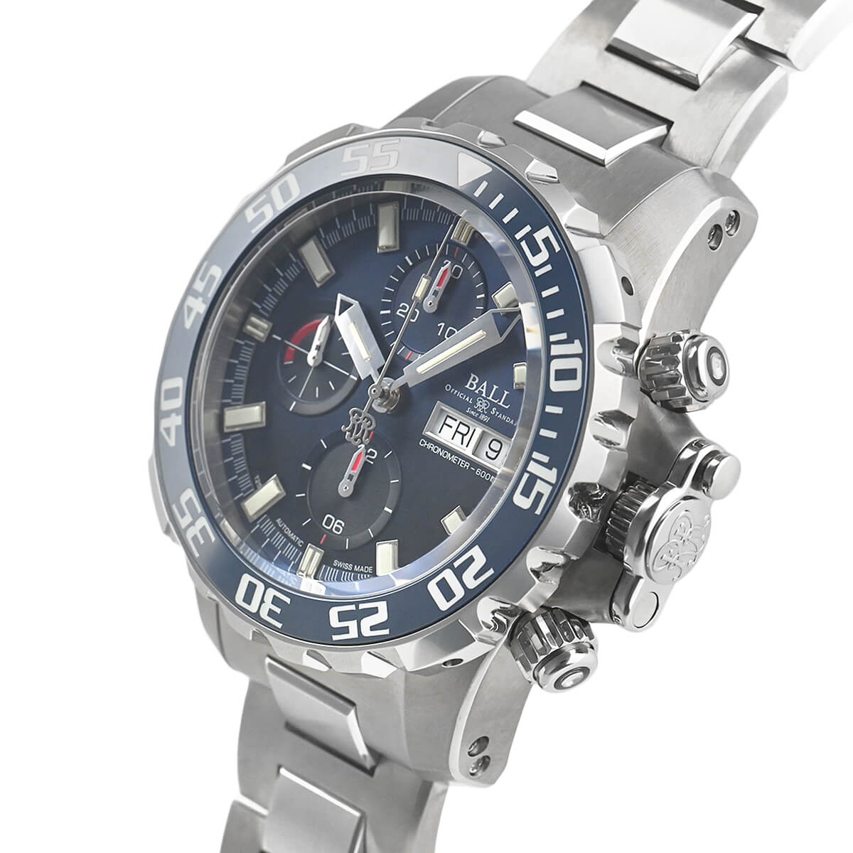 機関士や車掌といったあらゆる鉄道の事業に携わる人たちが、劣悪な仕事環境であった“振動”“ホコリ”“温度差”などにも影響を受けず、安全に使用できる時計の開発に力を注ぎ、アメリカ鉄道公式標準時計を長年に渡り製作した「ボールウォッチ」。こちらは、『The US Navy Experimental Diving Unit(アメリカ海軍潜水実験隊)』を讃えるために開発された「エンジニア ハイドロカーボン ネドゥ G5」。