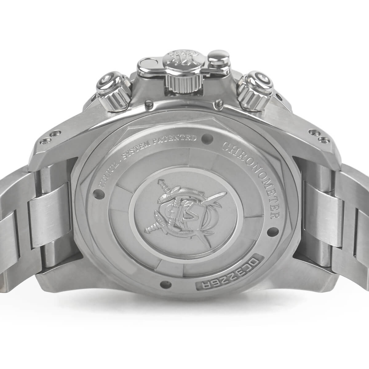世界初のリューズに自動減圧バルブを組み込むという特許を用いたダイバーズ・クロノグラフです。
