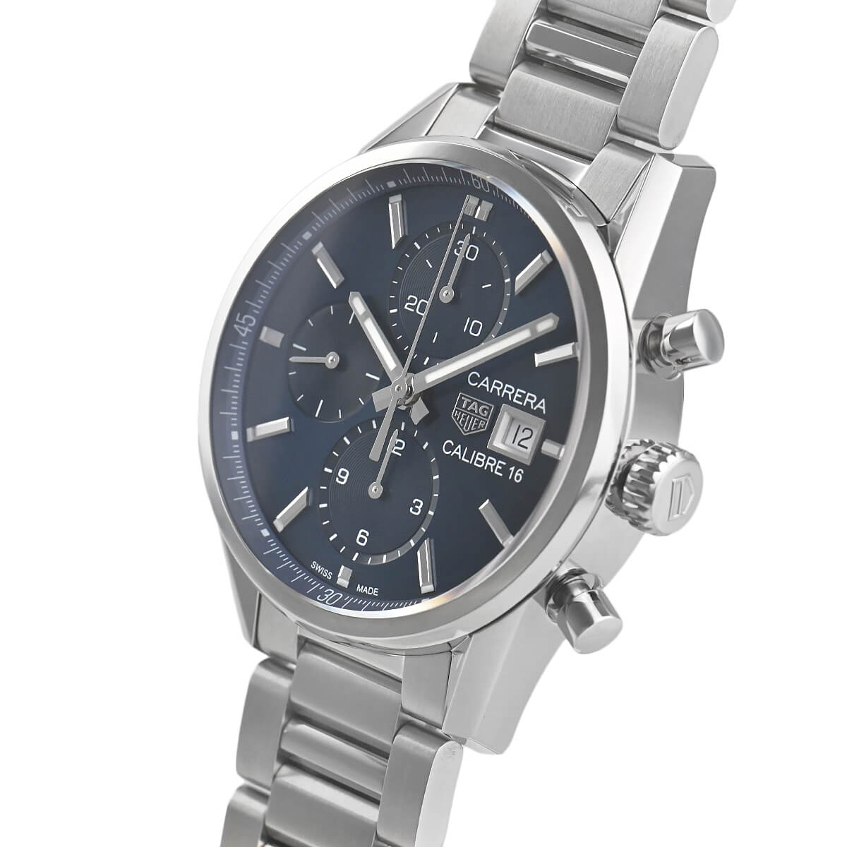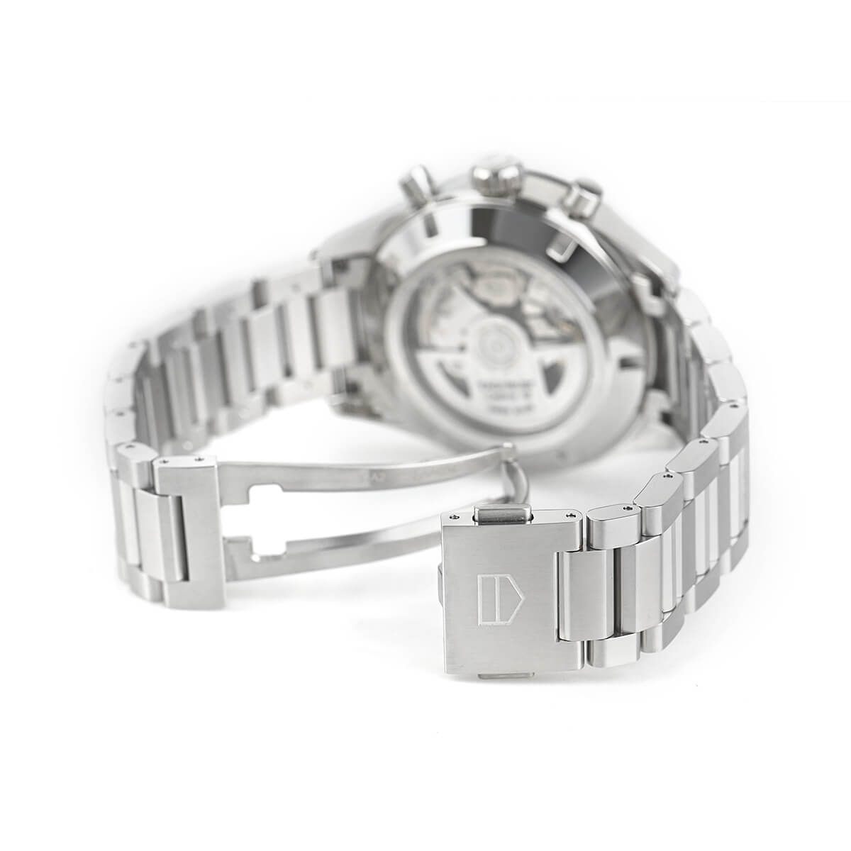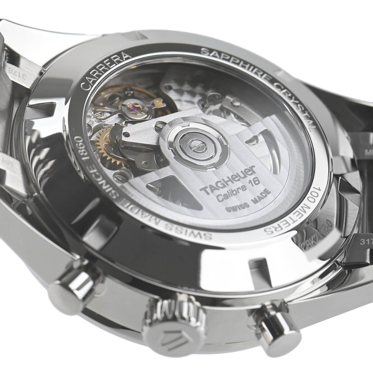 1963年に誕生した「カレラ」はこれまでも世界中の多くのドライバーが身に着けてきました。2018年に発表されたこちらの【カレラ キャリバー16 クロノグラフ】は、あえてタキメーターベゼルを無くしてポリッシュベゼルとすることで、スポーティでカジュアルになりがちだったカレラをスーツスタイルにも合わせやすいようにスタイリッシュなデザインへと変更が加えられたモデルです。