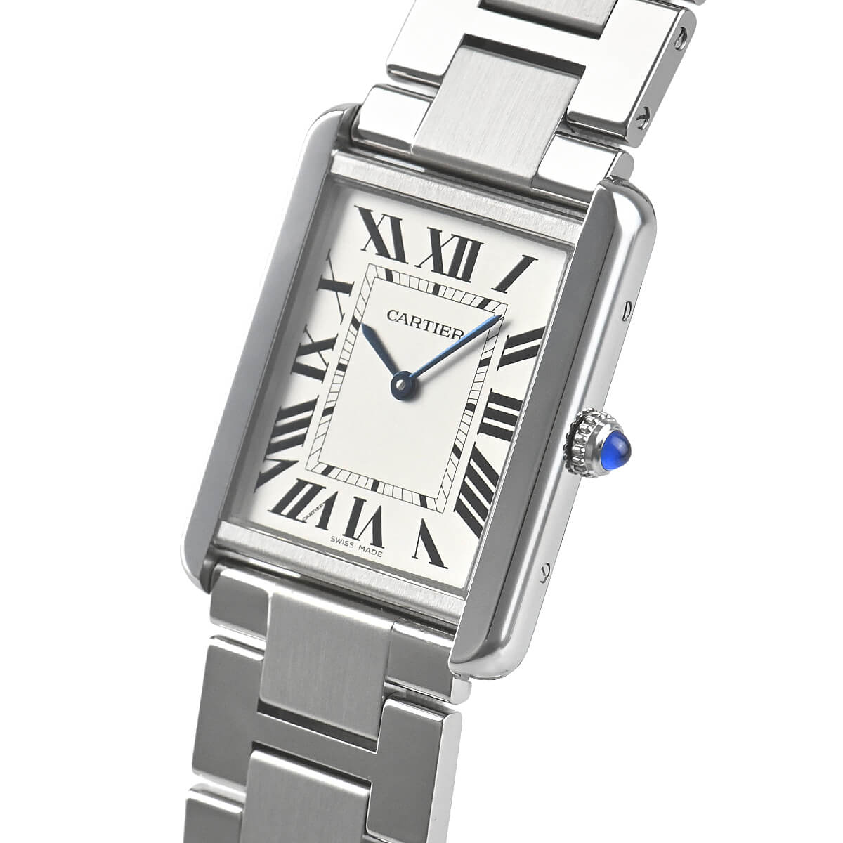かつての人気モデル「マストタンク」の流れを組む「タンクソロ」。タンクシリーズ特有のスタイルはそのままに、伝統と現代が融合したカルティエの入門モデルです。