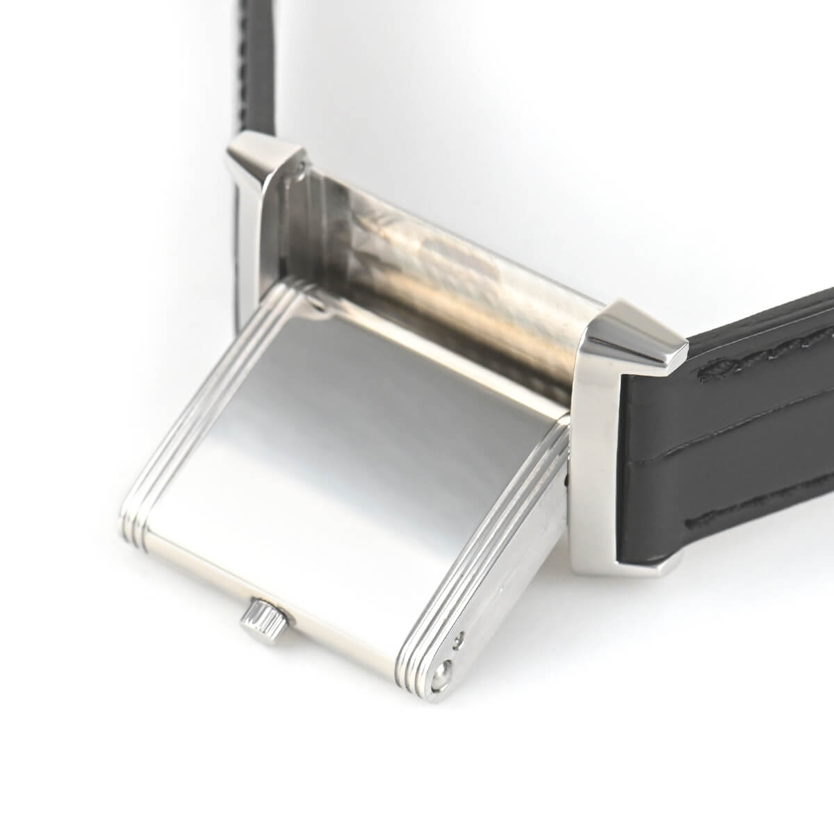 近年のレベルソはサイズアップされて大型化しておりますが、こちらのモデルは今となっては少し小振りに見え、品良くまとまっているオリジナルサイズです。レベルソのケースを反転させると、裏側には何も無いレベルソ本来の姿になっています。